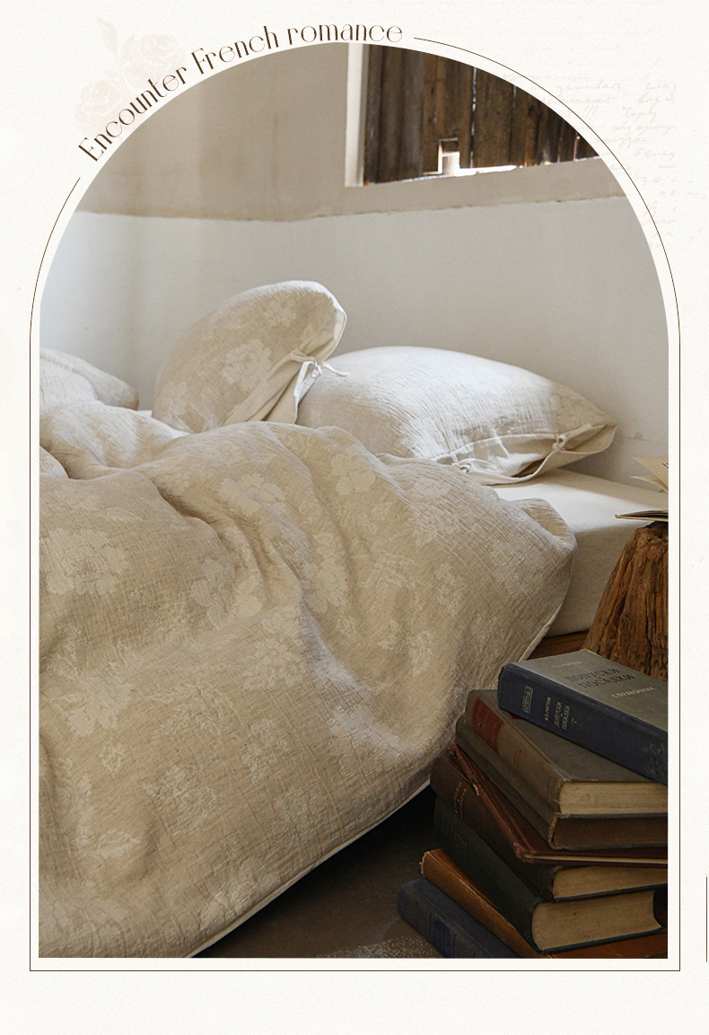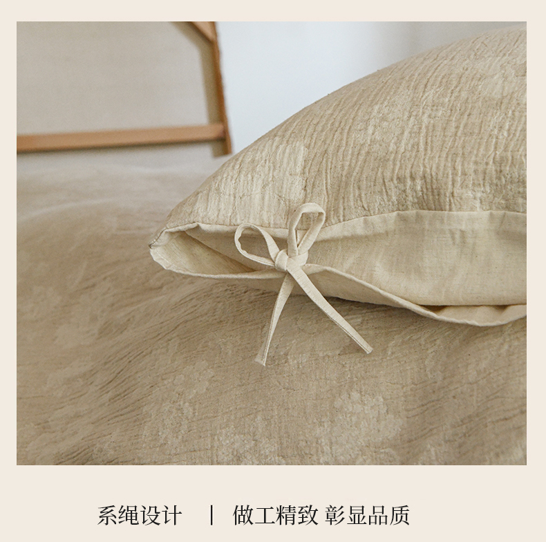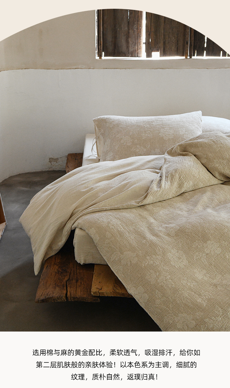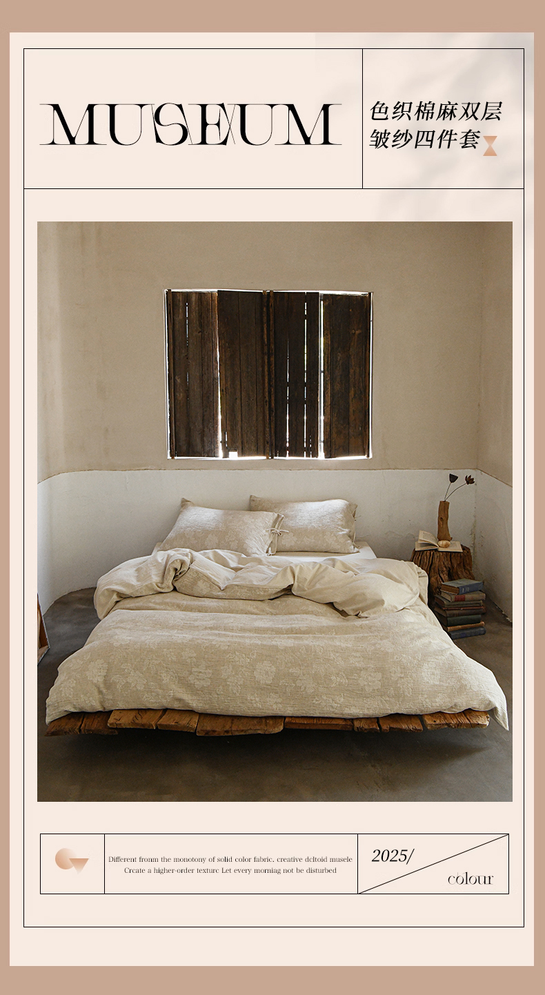 商品名称:玛奇朵 2025新款色织棉麻双层皱纱四件套 花香馥郁