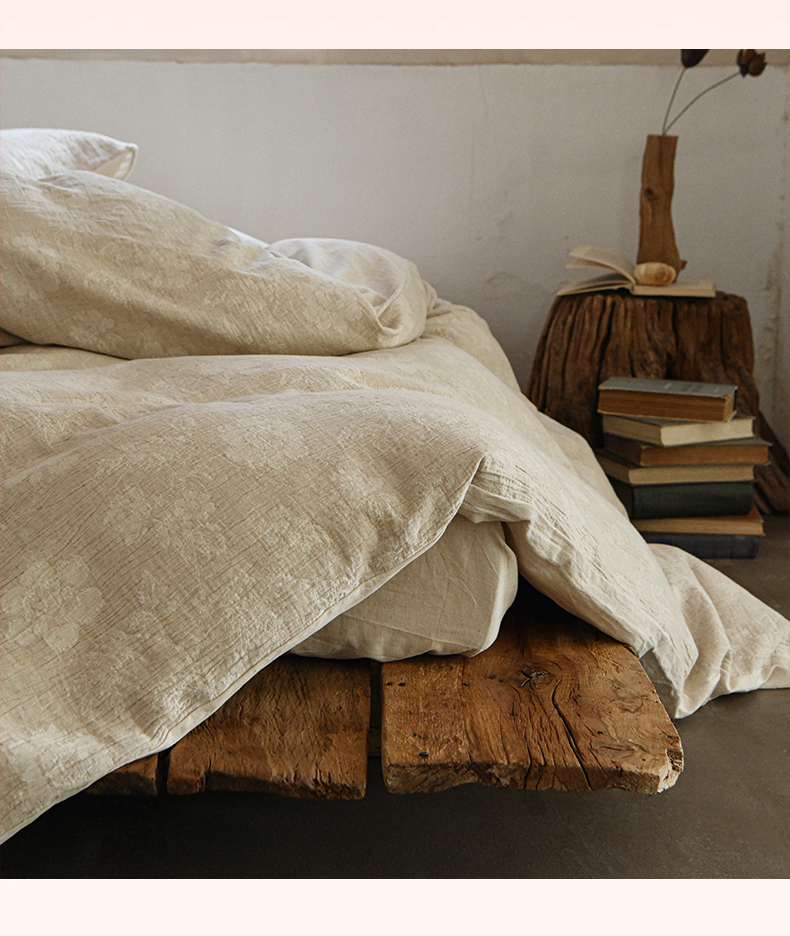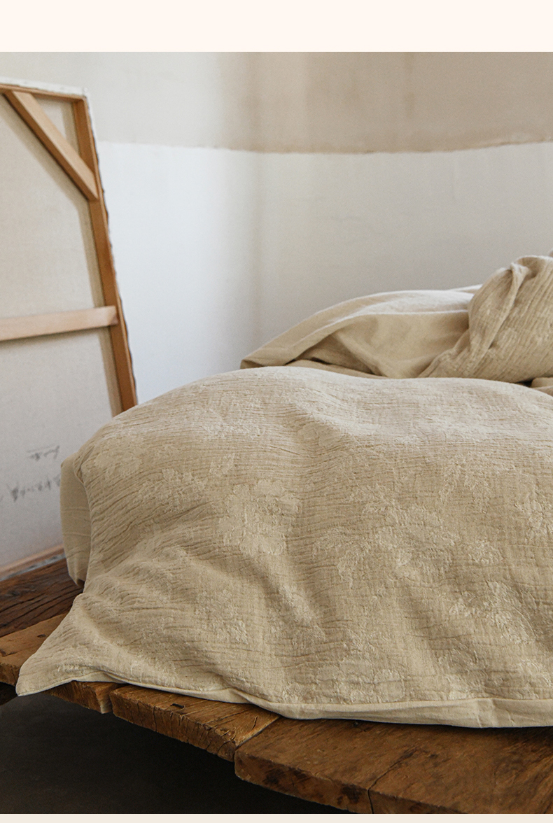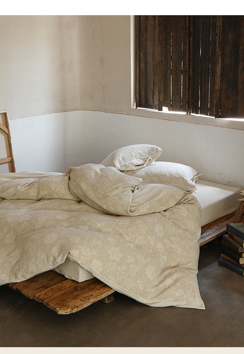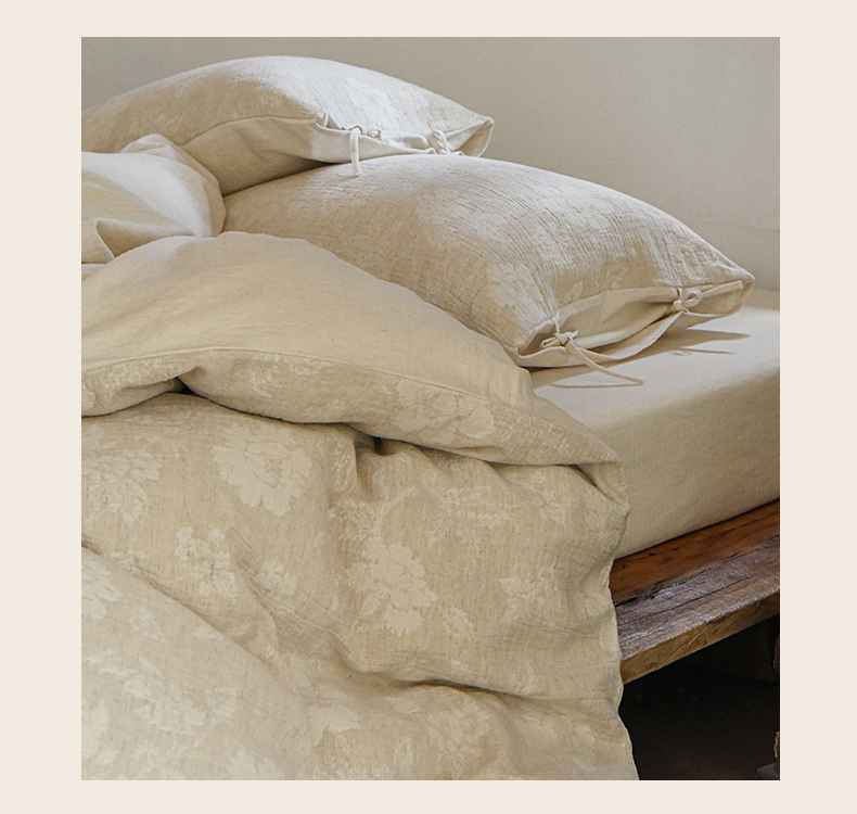 商品名称:玛奇朵 2025新款色织棉麻双层皱纱四件套 花香馥郁