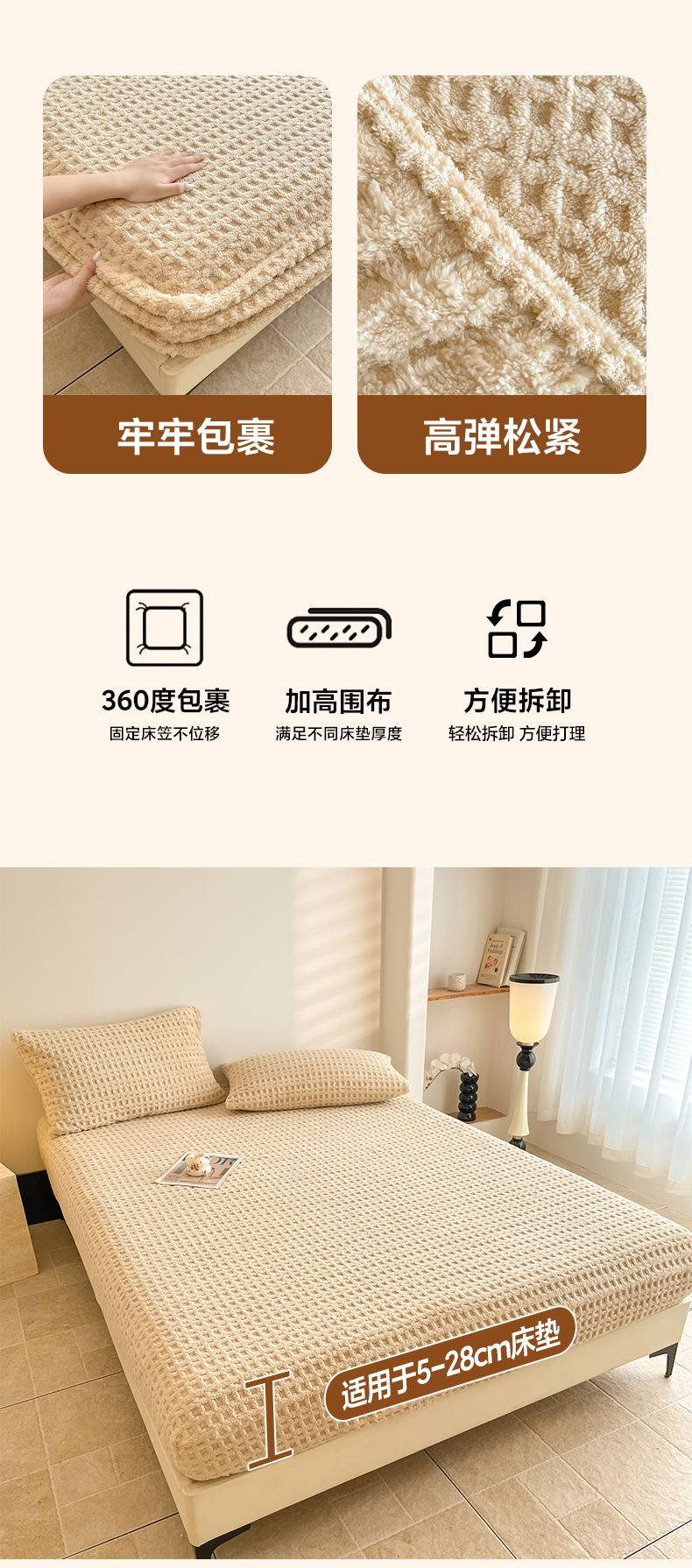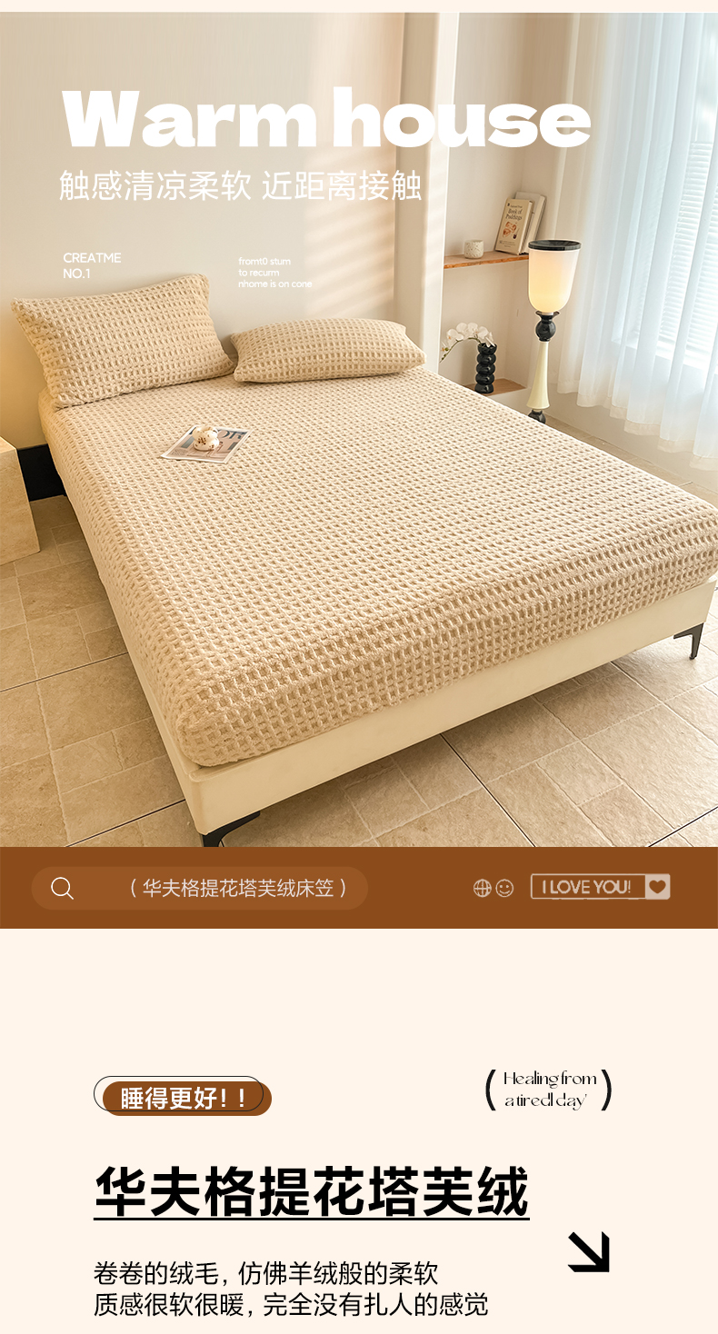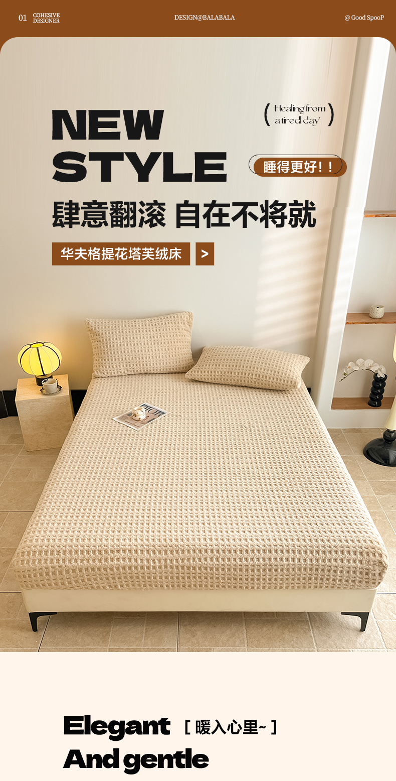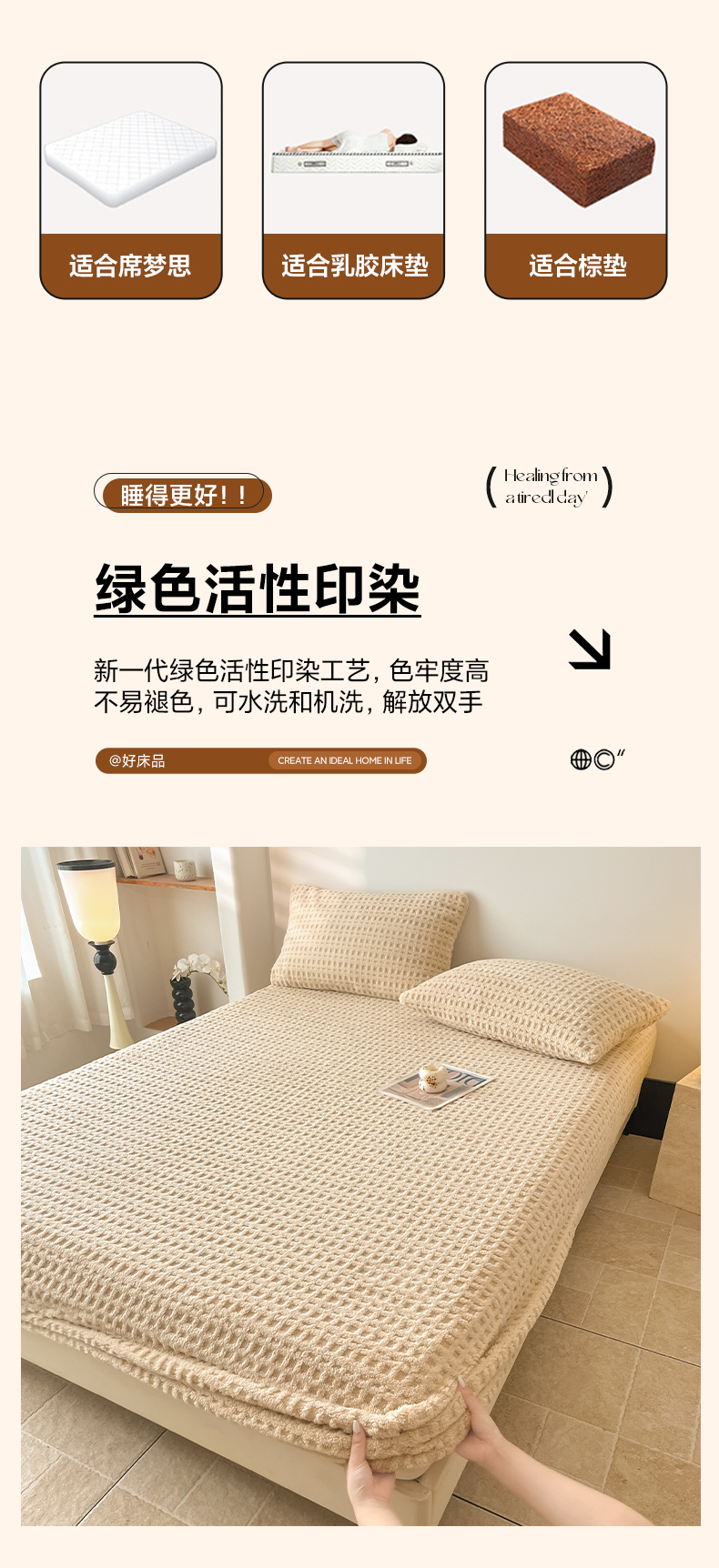 • 91家纺网 家纺一手货源 找家纺 欧邦 2025新款华夫格塔芙绒单床笠 床笠单件 华夫床笠-果绿