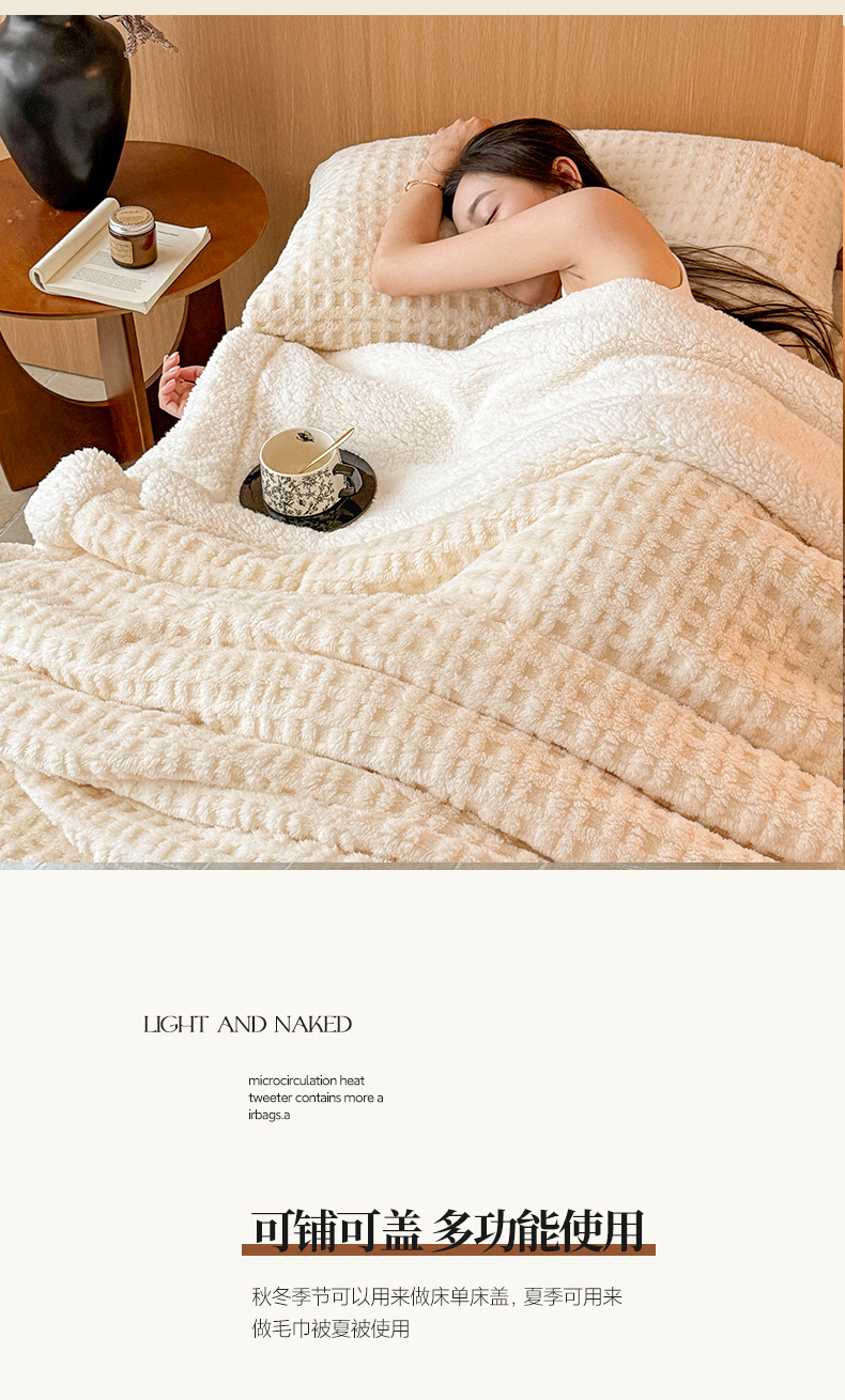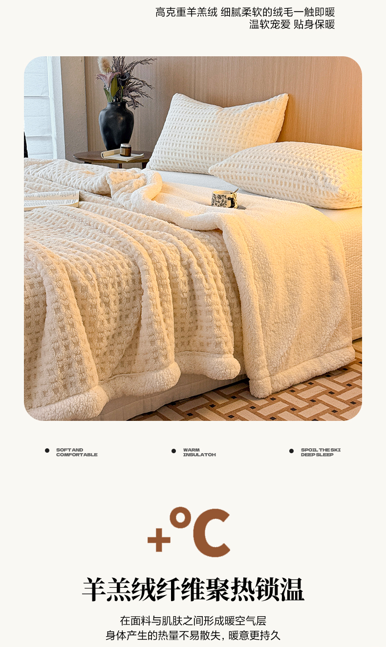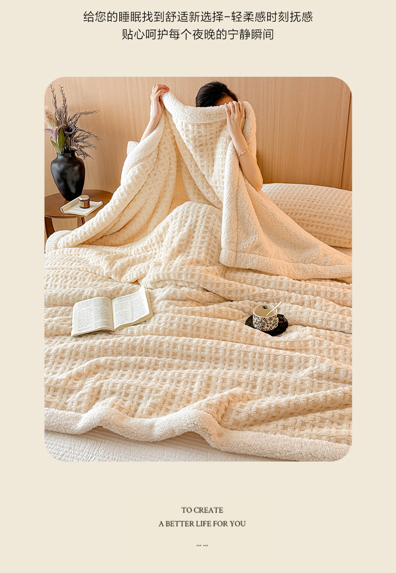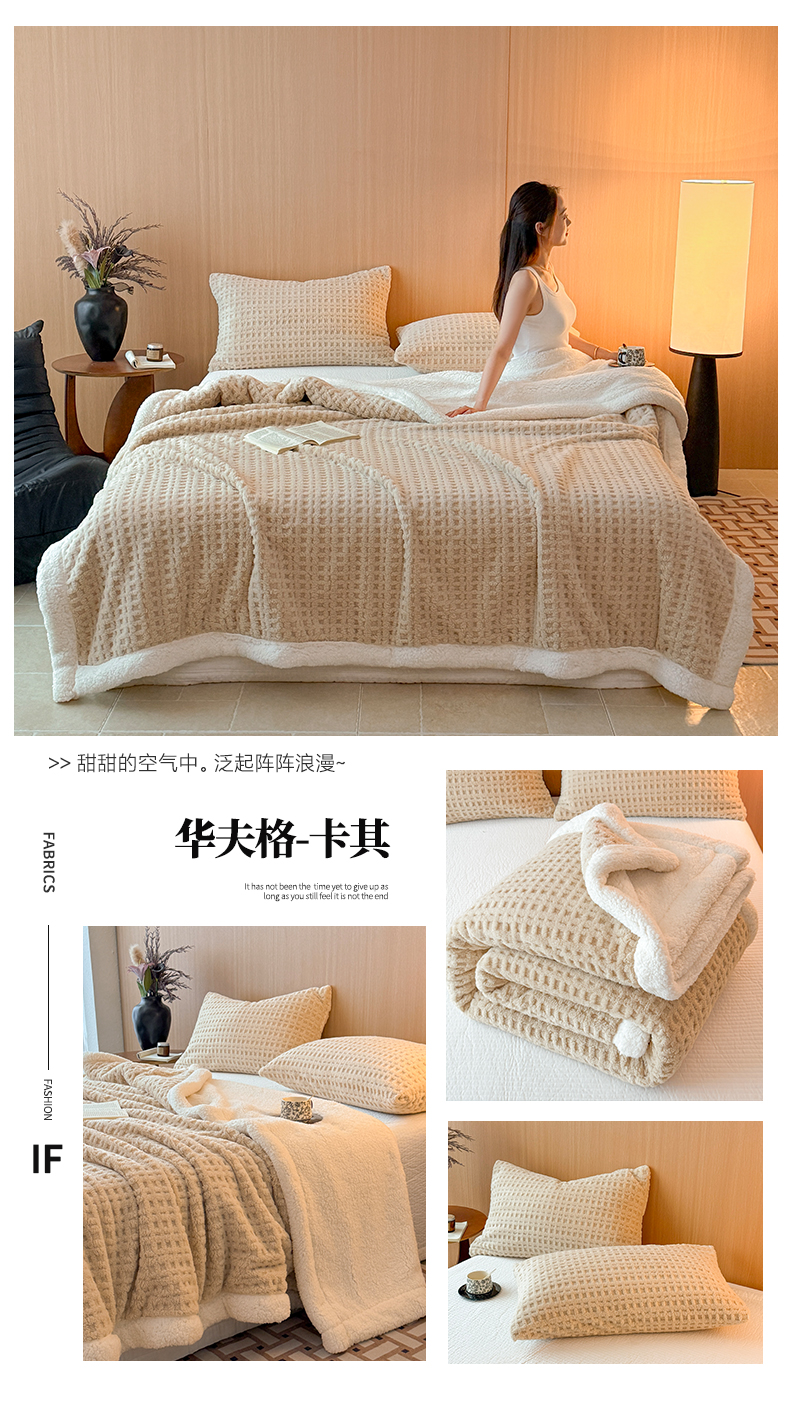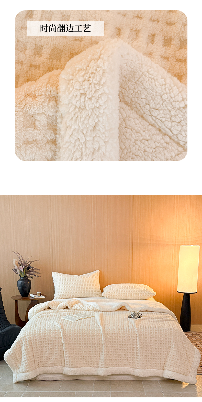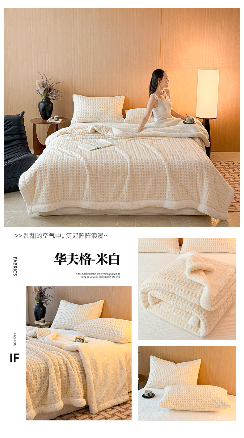 欧邦 2025新款华夫格羊羔绒双层毯盖毯毯子-场景2 华夫格-米白