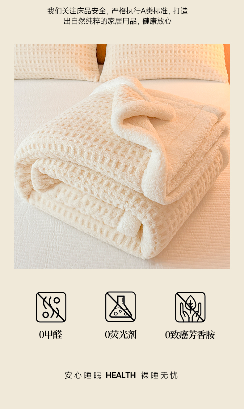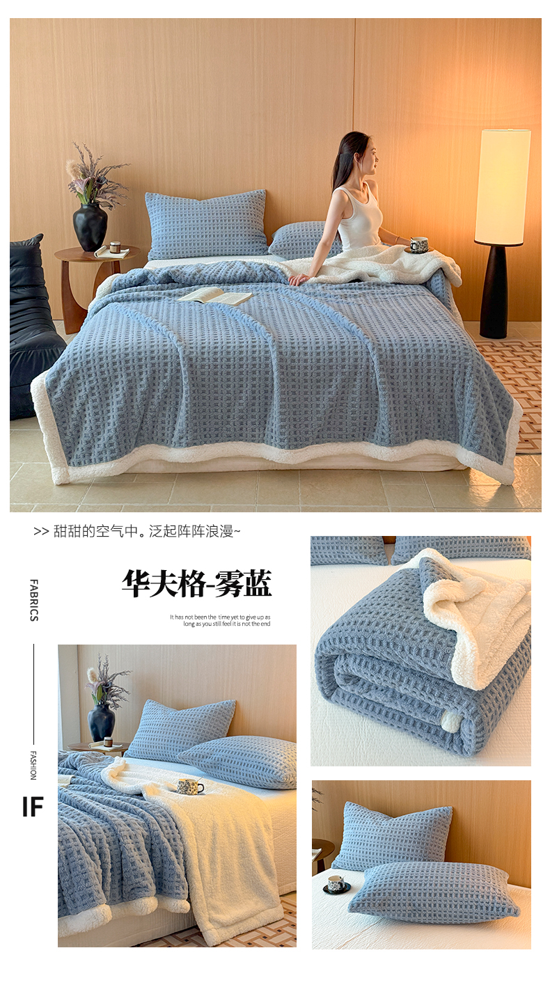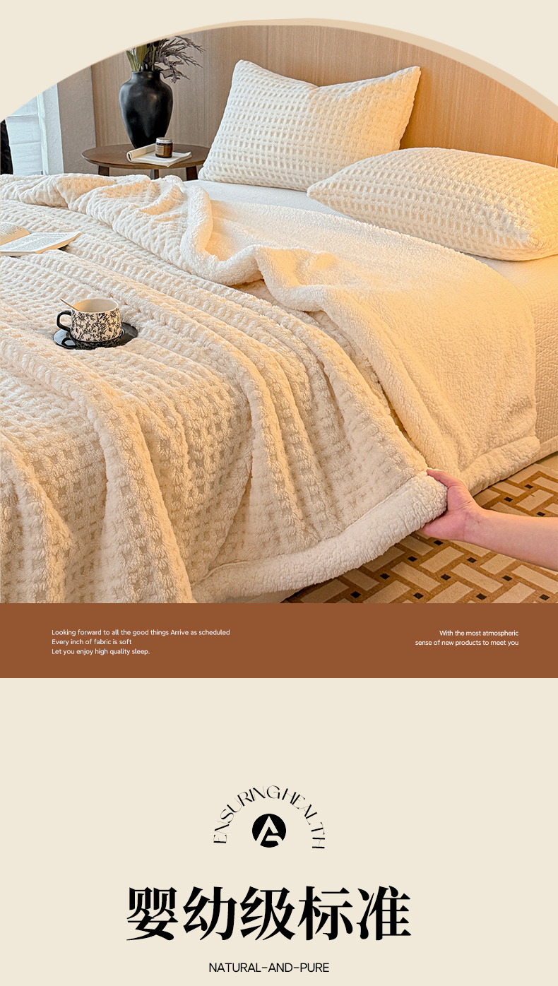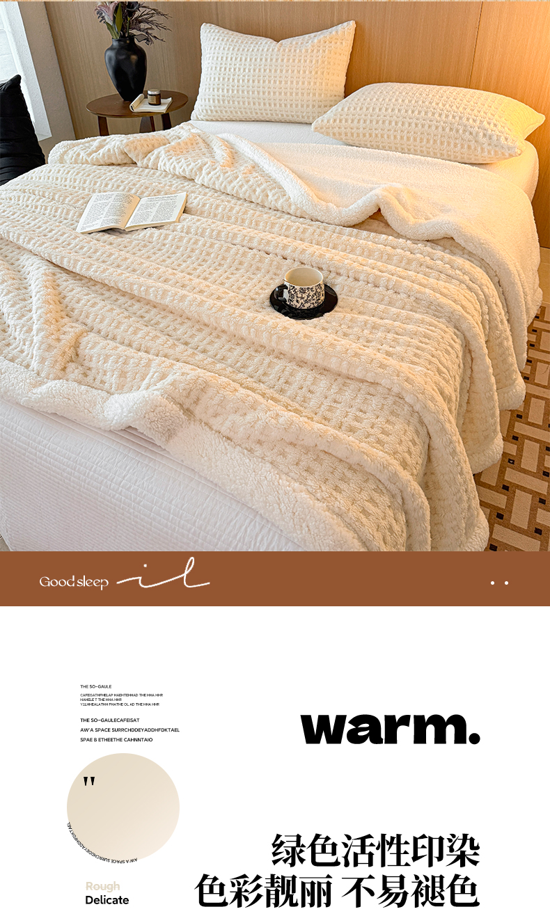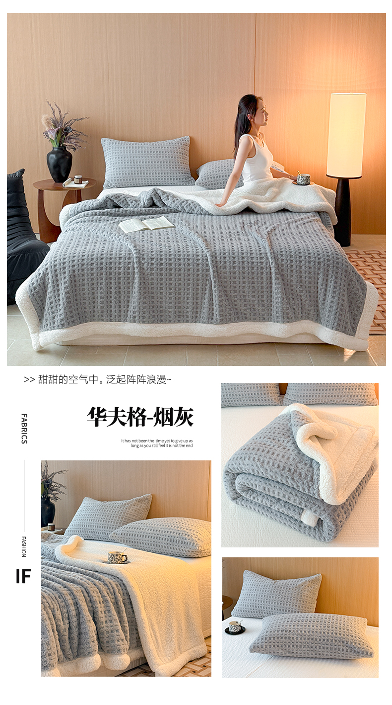 欧邦 2025新款华夫格羊羔绒双层毯盖毯毯子-场景2 华夫格-米白