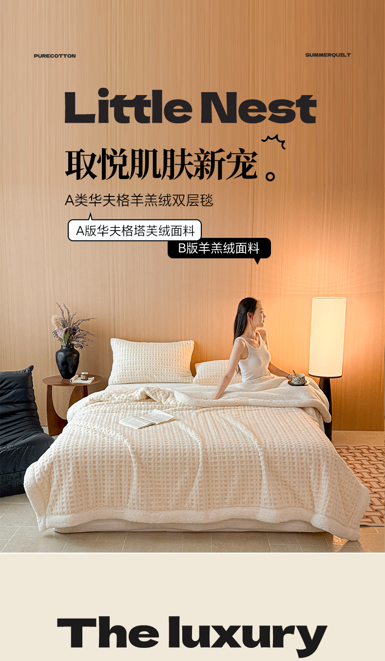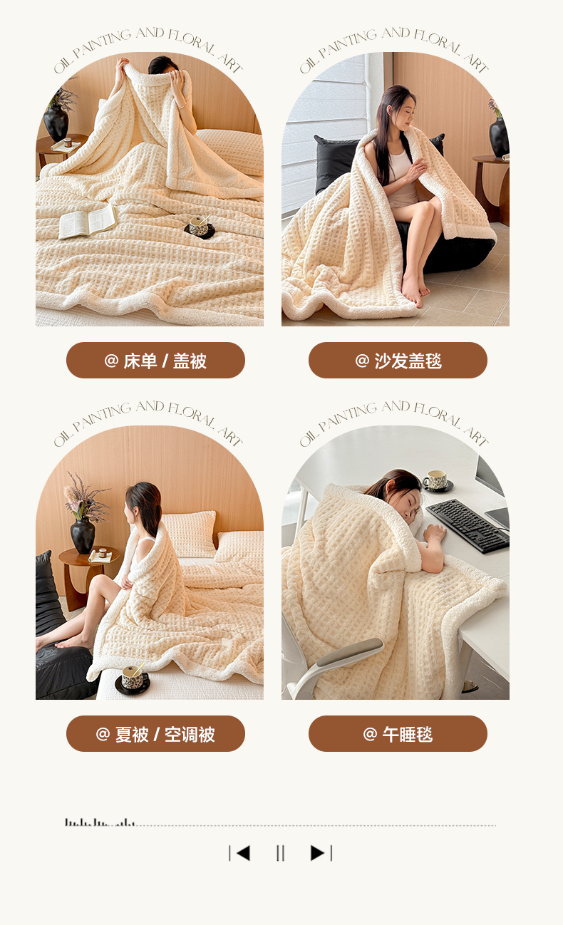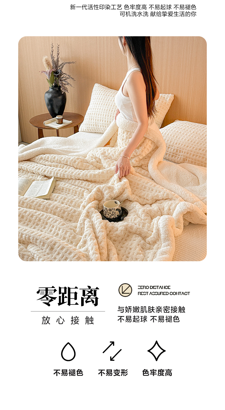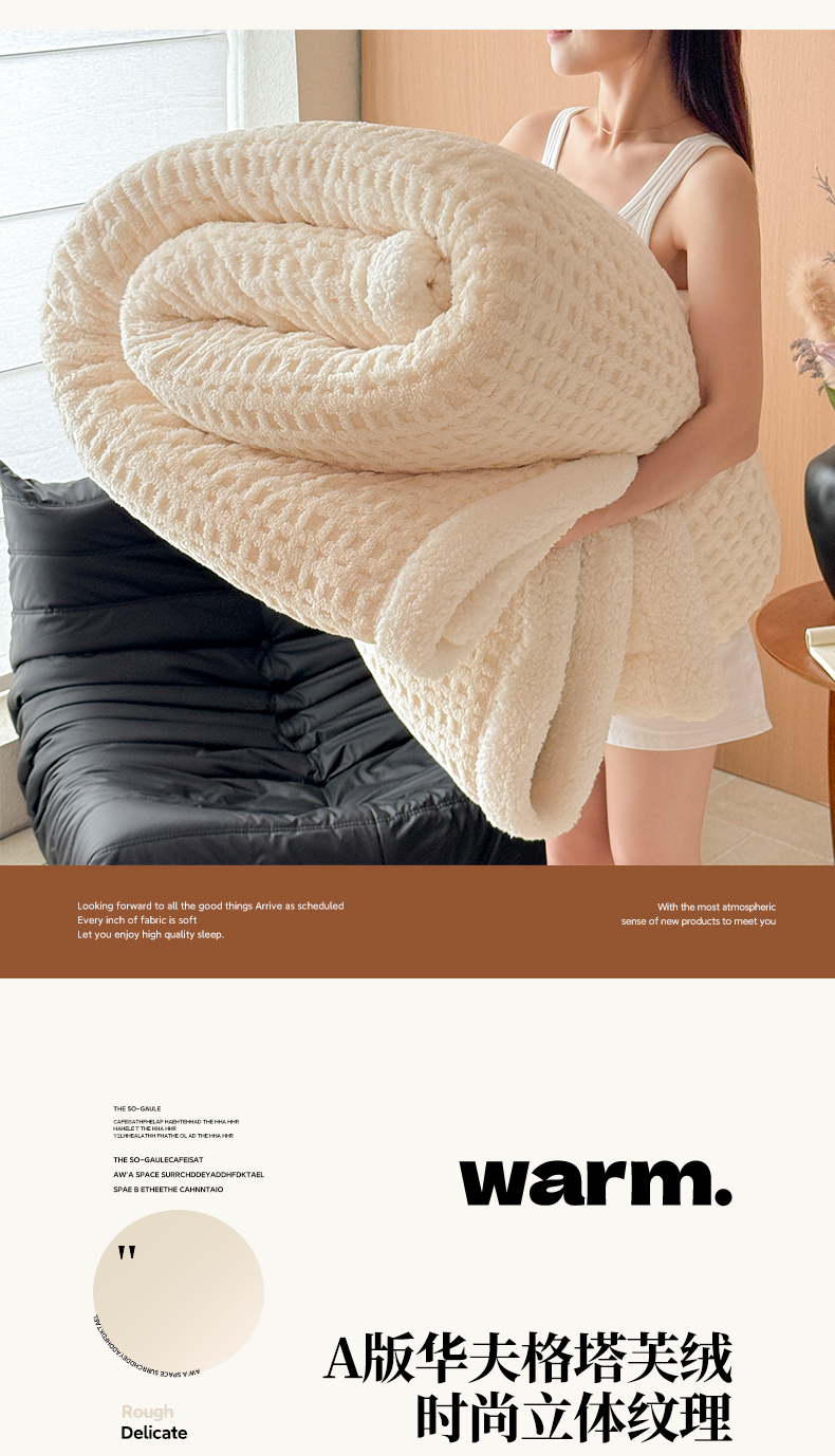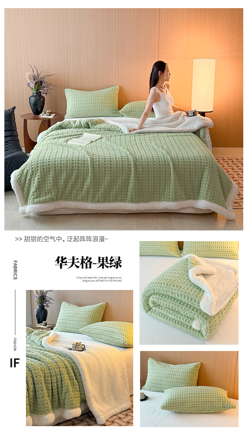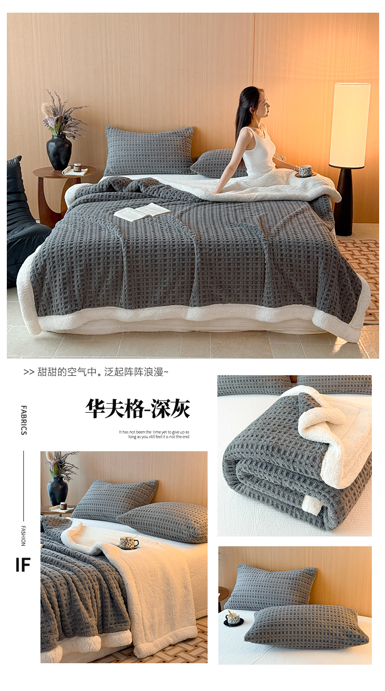 欧邦 2025新款华夫格羊羔绒双层毯盖毯毯子-场景2 华夫格-米白