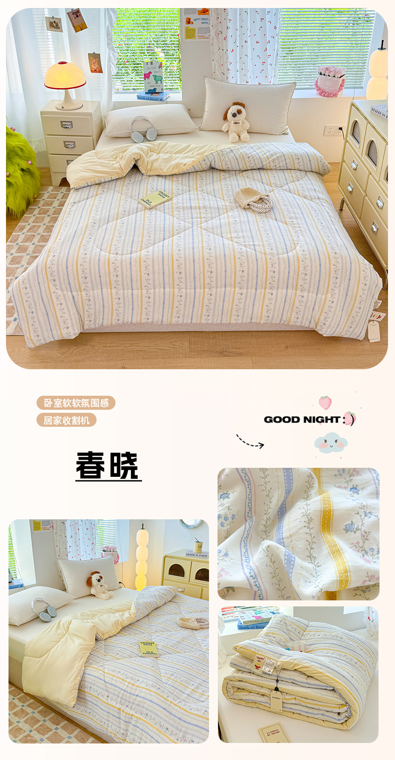• 91家纺网 家纺一手货源 找家纺 (总)弗苓家纺 2025新款糯叽叽ins风双层纱水洗棉冬被被子被芯,绚颜,汪汪队,蜡笔小新,春晓,垂耳免,樱桃,粉黛,安妮兔,西高地,初恋,海盐-蓝,海盐-米,米奇妙妙,梦蝶,郁金香,组合图仅供参考不可下单