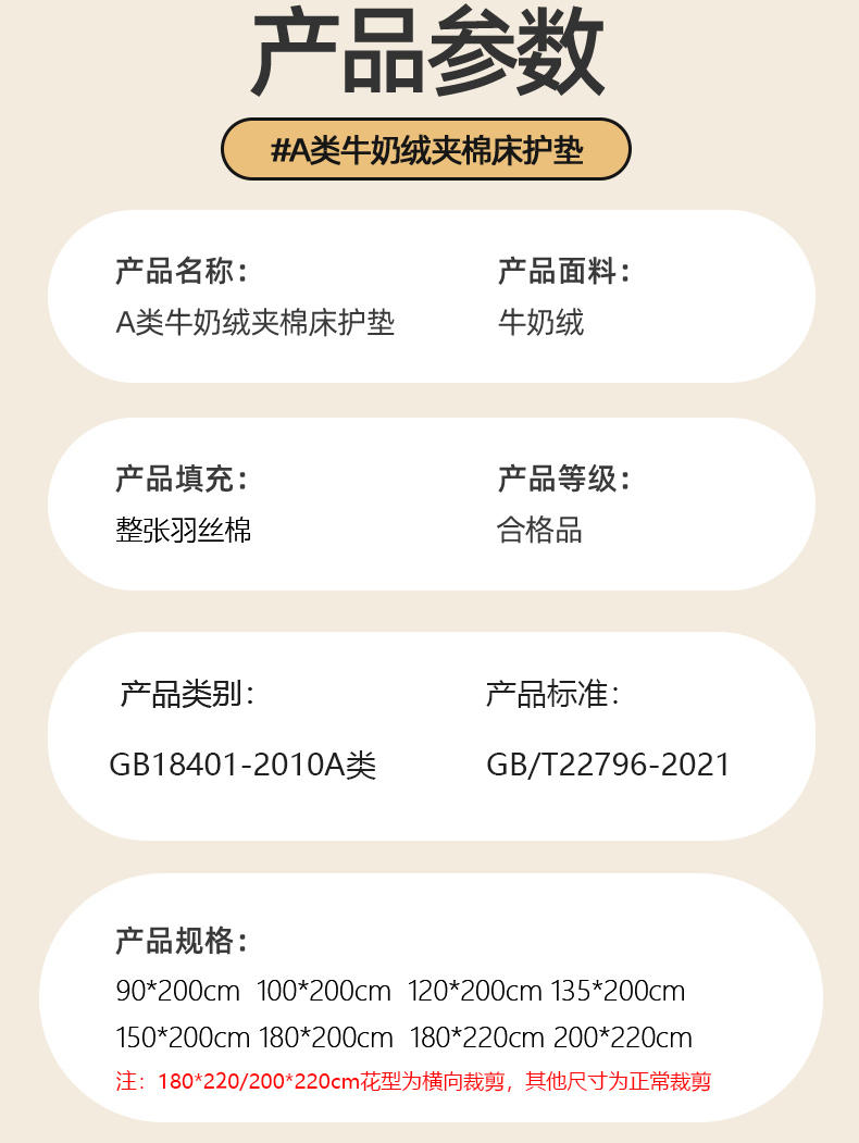 180*220cm单件床垫 花型需横着裁剪 | ¥40.00 |