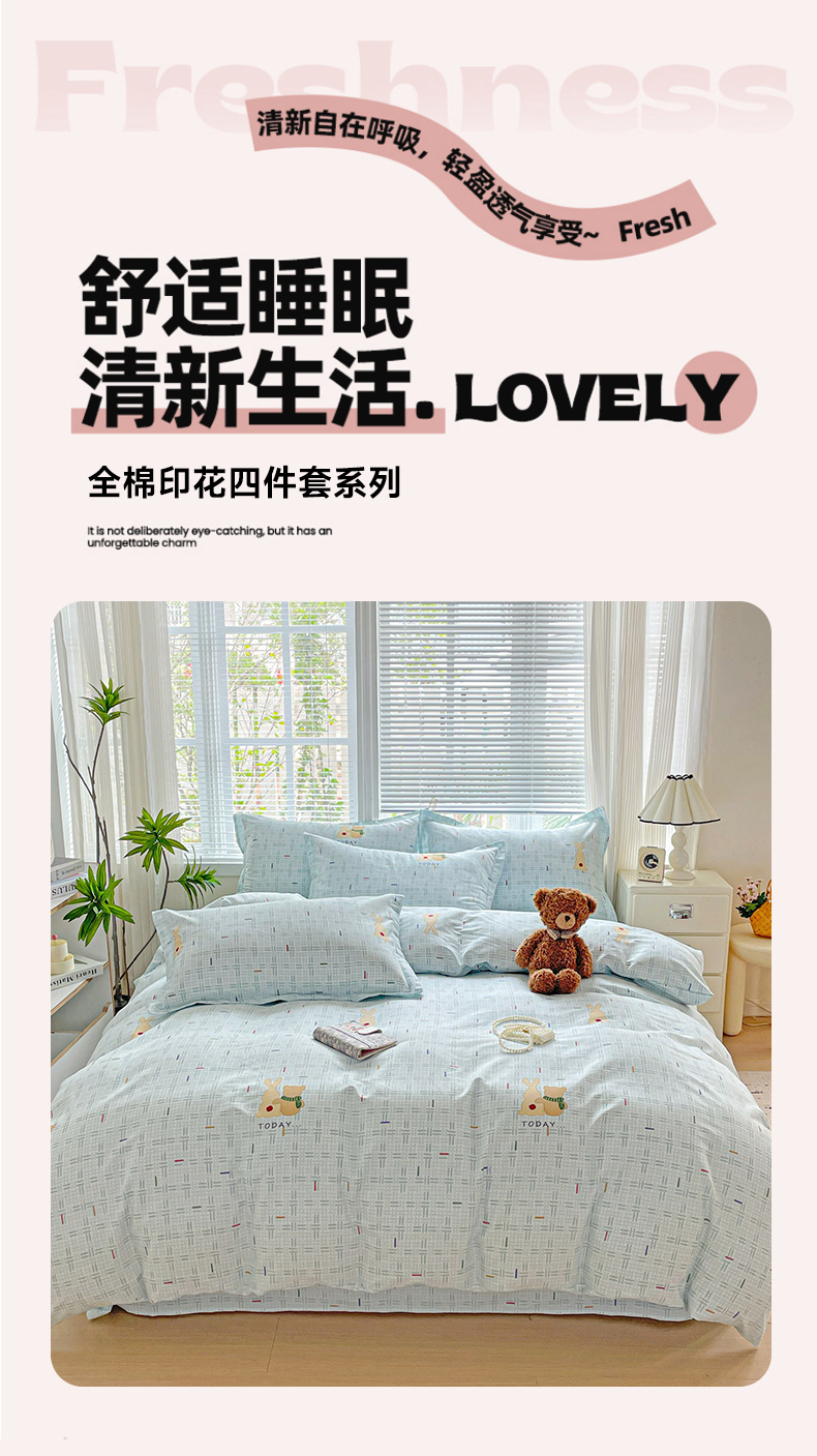 当前位置: 91家纺网 > 商品网购 > 床品套件 > 四件套 > 全棉普通四件套 > 文黛家居 2025新款全棉喷气印花全棉纯棉印花系列四件套 小幸运