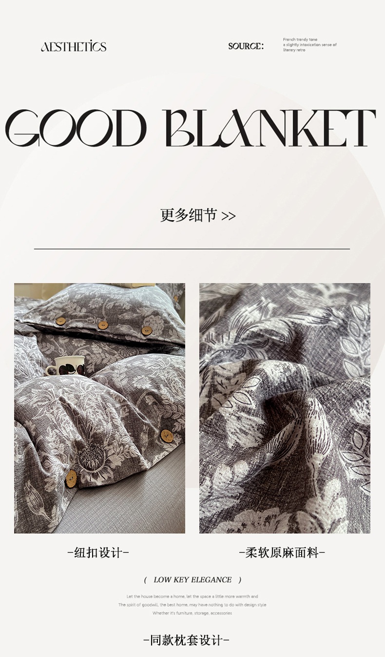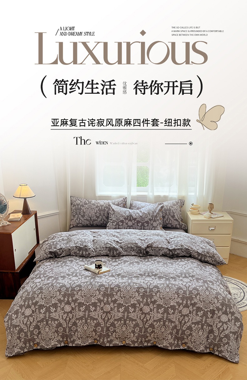 当前位置: 91家纺网 > 商品网购 > 床品套件 > 四件套 > 其它四件套 > 优佳优品 2025秋冬新款A类高克重亚麻复古侘季风复麻系列四件套 霜华梦影