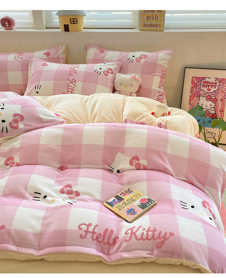 当前位置: 91家纺网 > 商品网购 > 床品套件 > 四件套 > 牛奶绒四件套 > 桃子家居 2025新款A类正版三丽鸥授权卡通加厚高克重牛奶绒系列四件套 绒三丽鸥-粉梦kitty