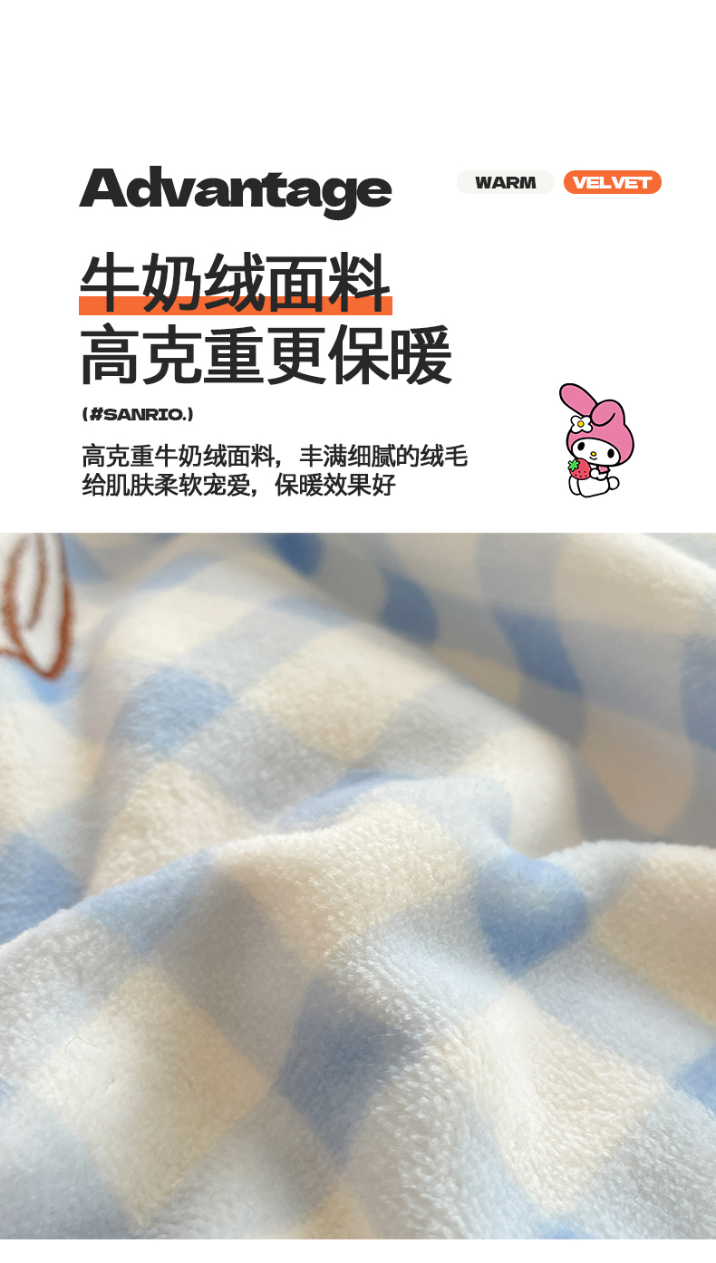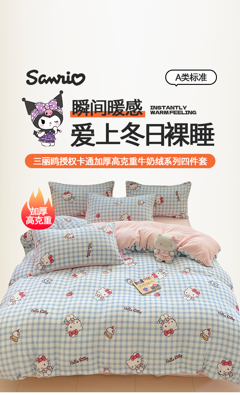 当前位置: 91家纺网 > 商品网购 > 床品套件 > 四件套 > 牛奶绒四件套 > 桃子家居 2025新款A类正版三丽鸥授权卡通加厚高克重牛奶绒系列四件套 绒三丽鸥-甜心kitty蓝