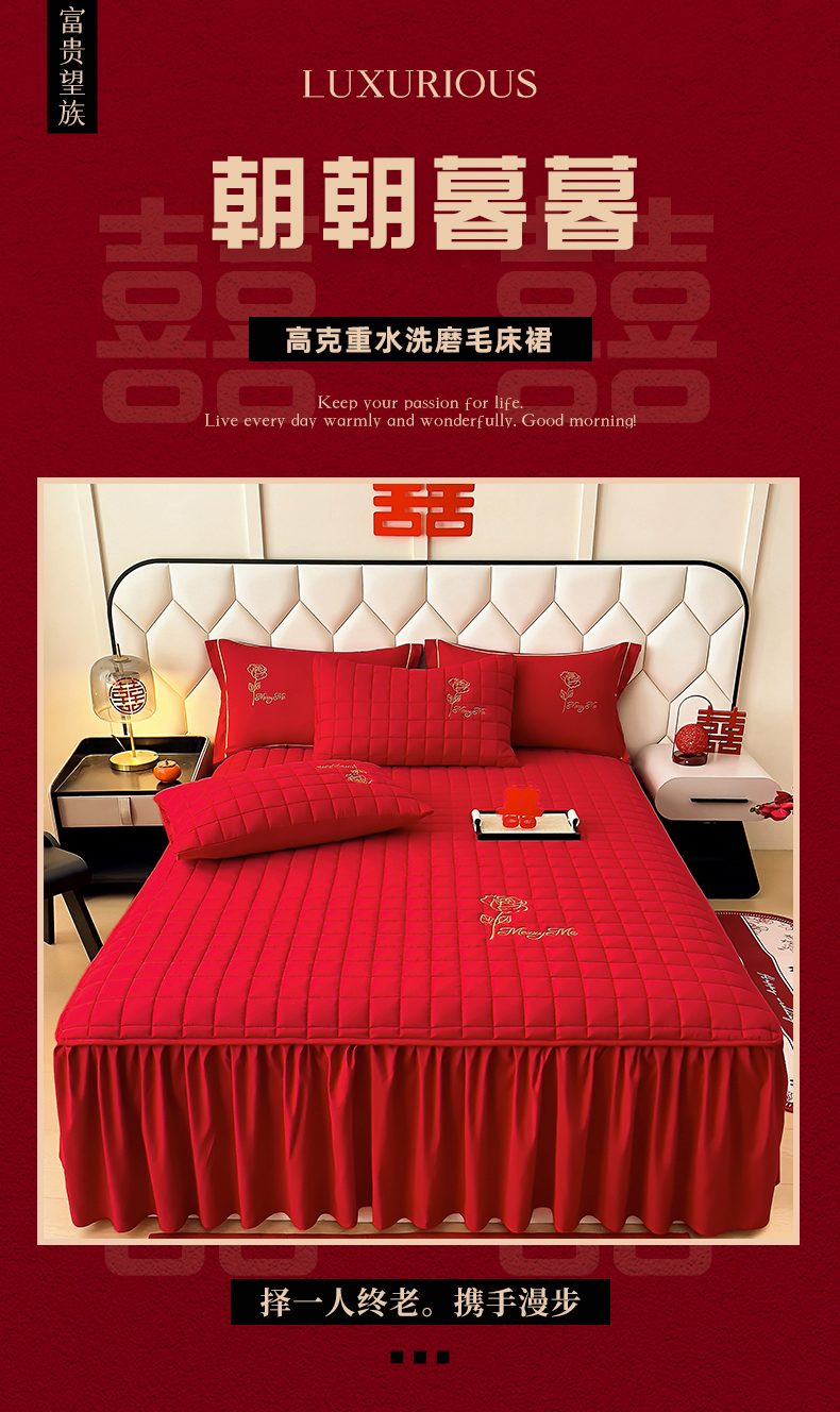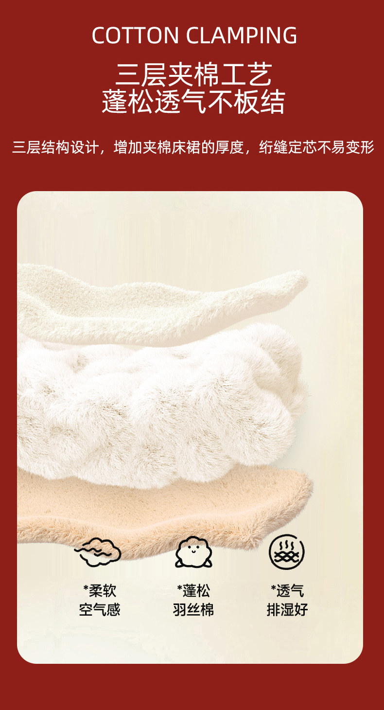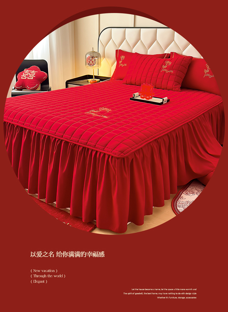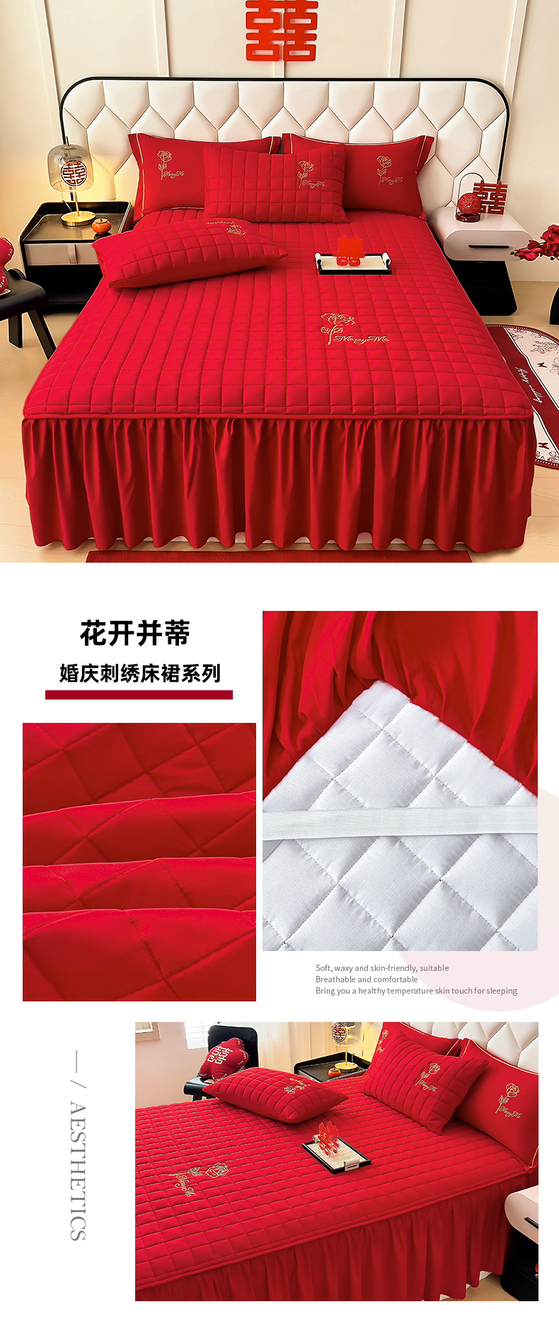 • 91家纺网 家纺一手货源 找家纺 七仙女家纺 2025新款轻奢婚庆高克重水洗磨毛夹棉床裙单床裙床裙单件床裙三件套 花开并蒂