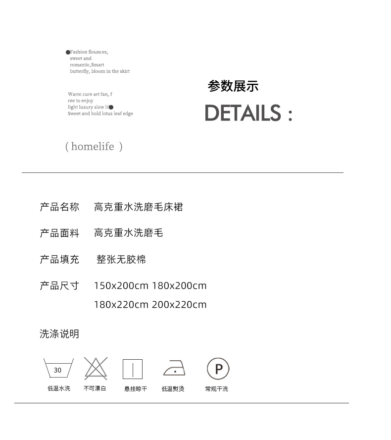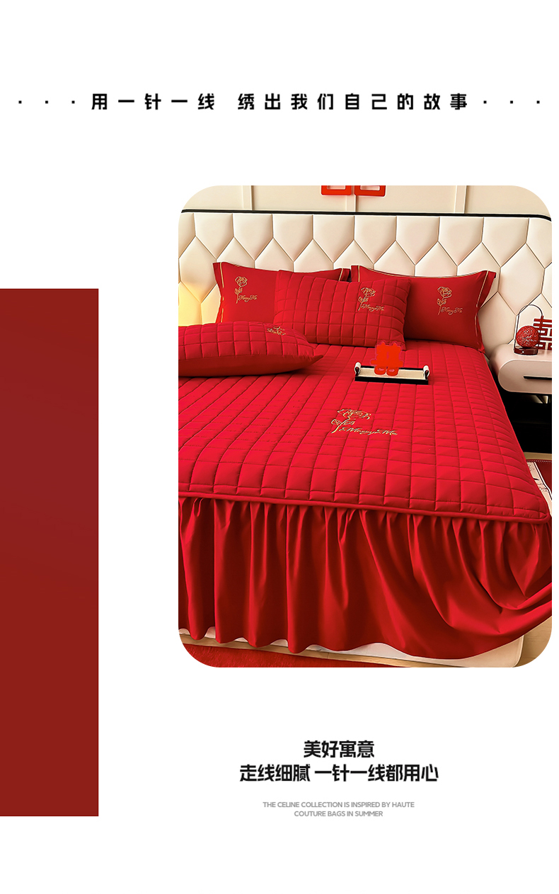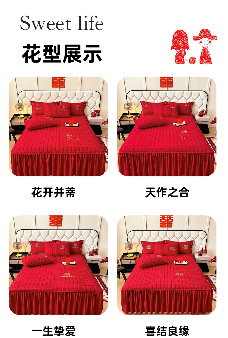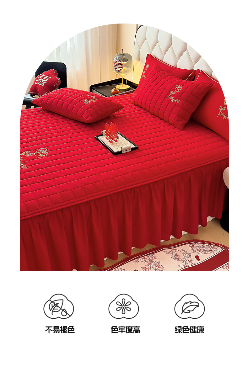 • 91家纺网 家纺一手货源 找家纺 七仙女家纺 2025新款轻奢婚庆高克重水洗磨毛夹棉床裙单床裙床裙单件床裙三件套 花开并蒂