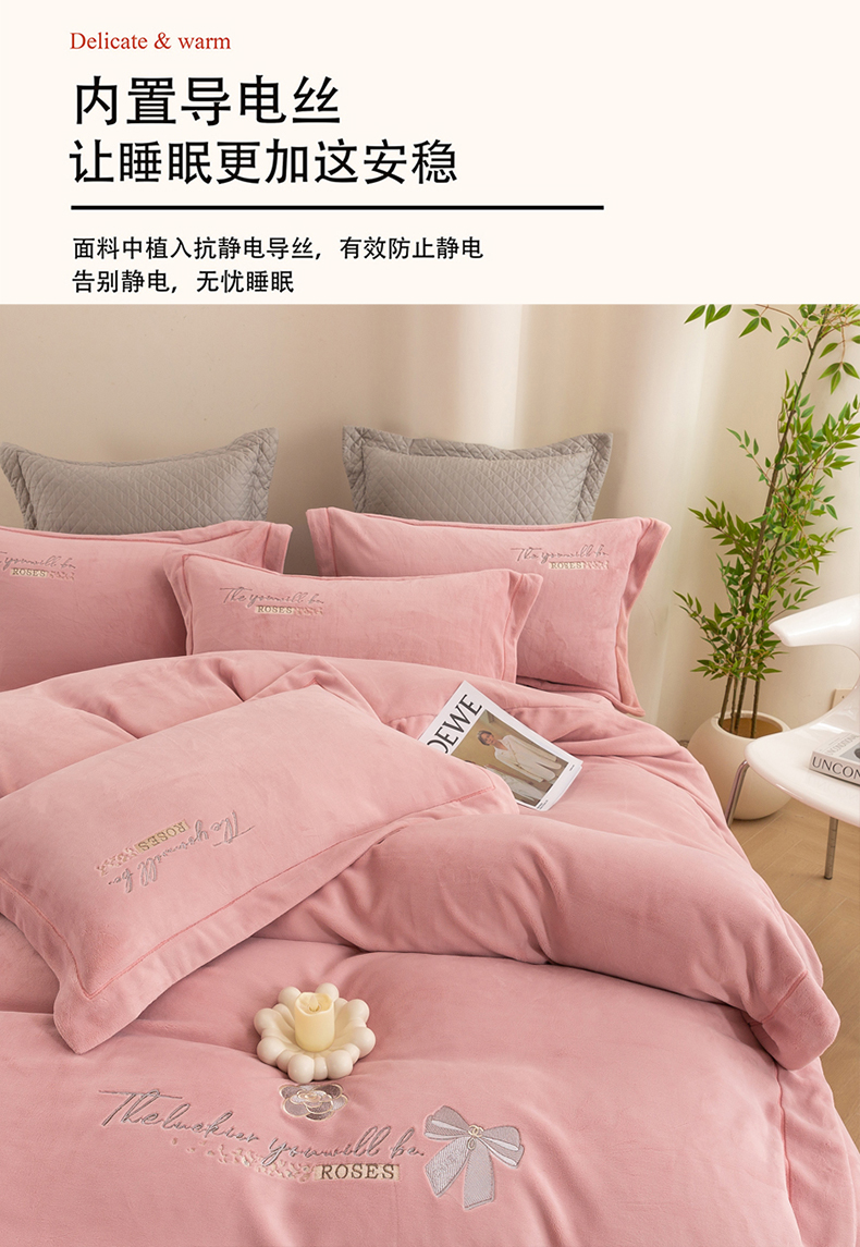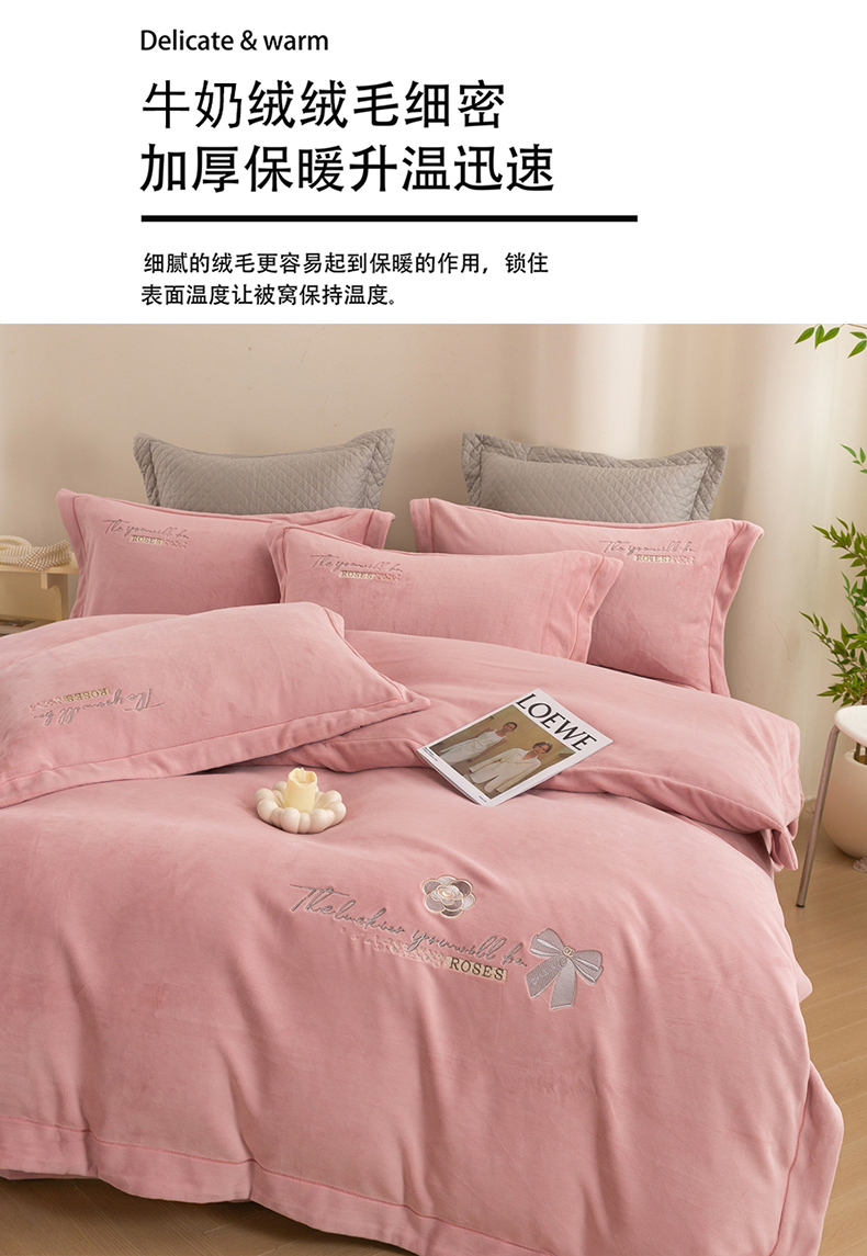 (总)绒博士 2025新款270克牛奶绒双拼角刺绣宽边款四件套--维也纳系列,维也纳-粉豆沙,维也纳-果绿,维也纳-浅咖,维也纳-浅蓝