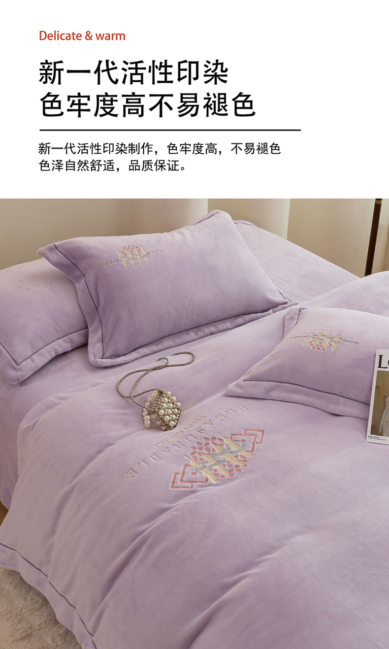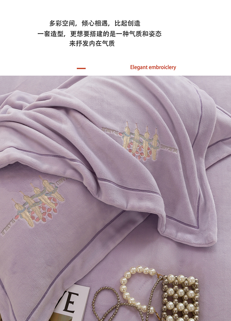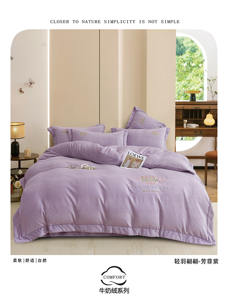 绒博士 2025新款220克牛奶绒刺绣宽边款四件套--轻羽翩翩系列 轻羽翩翩-芳菲紫