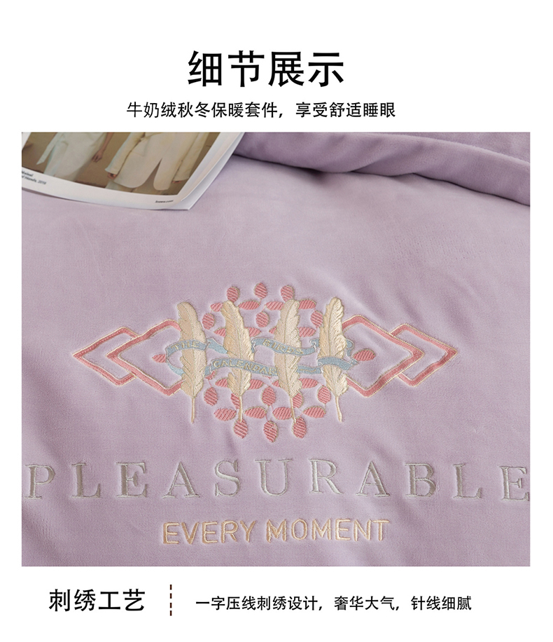 商品名称:绒博士 2025新款220克牛奶绒刺绣宽边款四件套--轻羽翩翩系列 轻羽翩翩-芳菲紫