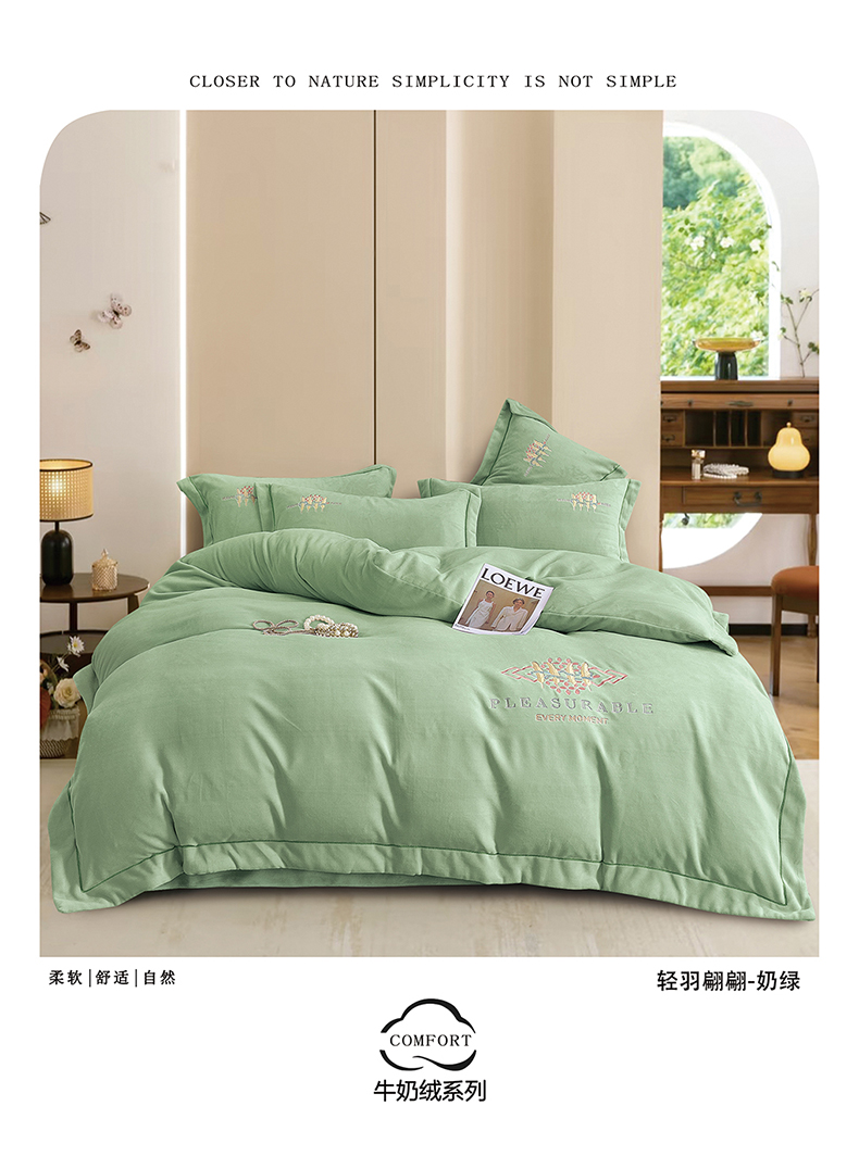 (总)绒博士 2025新款220克牛奶绒刺绣四件套--叶烨生辉系列,叶烨生辉-奶绿,叶烨生辉-宾利蓝,叶烨生辉-豆沙,叶烨生辉-芳菲紫,叶烨生辉-灰色,叶烨生辉-樱花粉