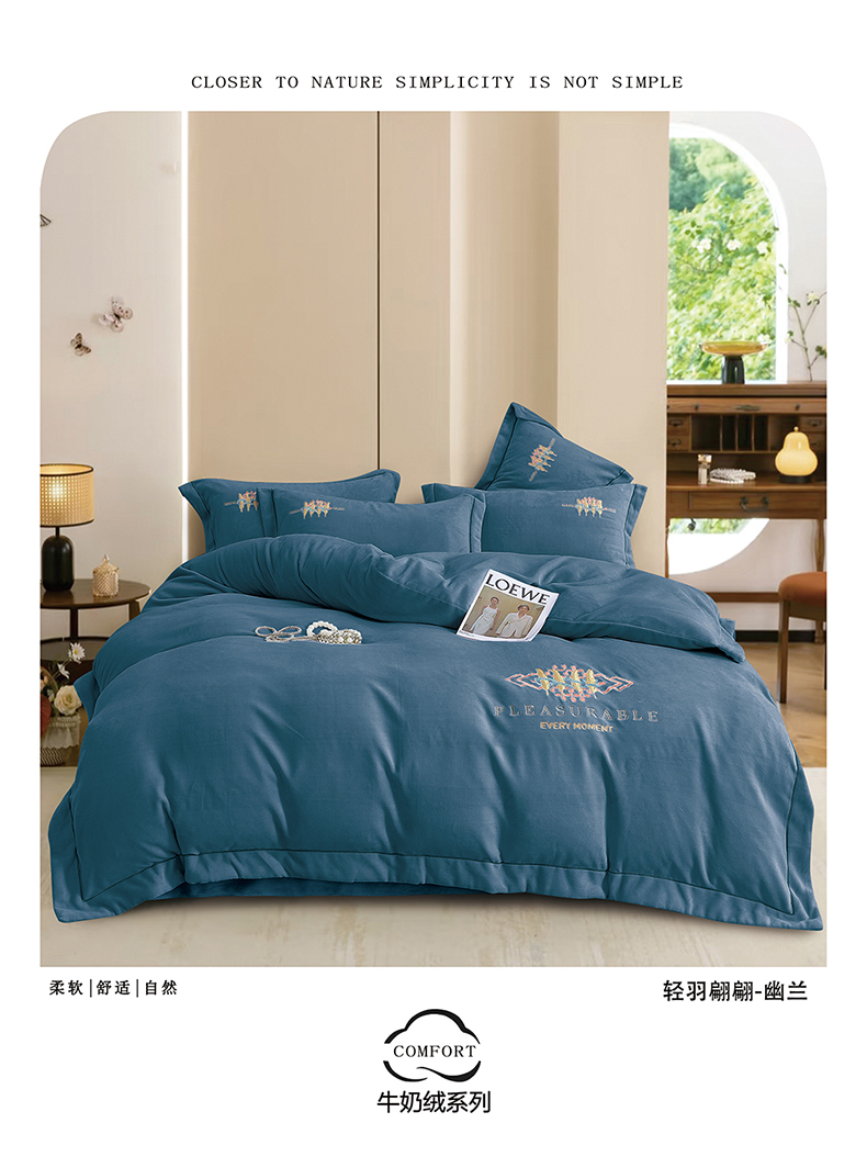 (总)绒博士 2025新款220克牛奶绒刺绣三件套--欧拉系列,欧拉-宾利蓝,欧拉-芳菲紫,欧拉-灰色,欧拉-奶绿,欧拉-樱花粉