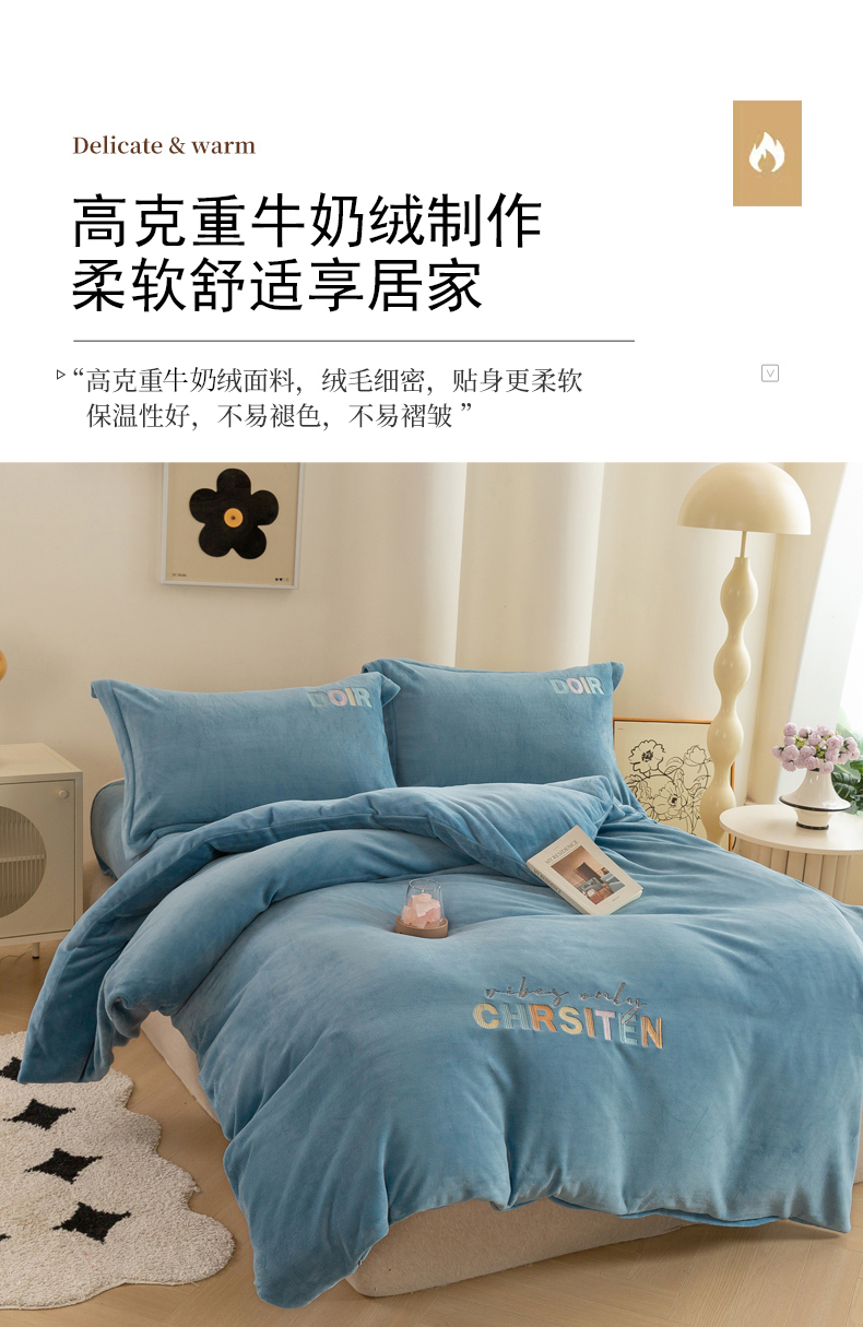 (总)绒博士 2025新款230克牛奶绒雕花刺绣宽边款四件套--清雅可可系列,清雅可可-粉色,清雅可可-卡其色,清雅可可-蓝色,清雅可可-绿色,清雅可可-紫色,清雅可可一天空蓝
