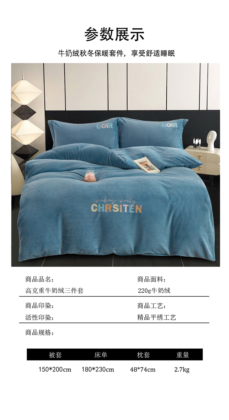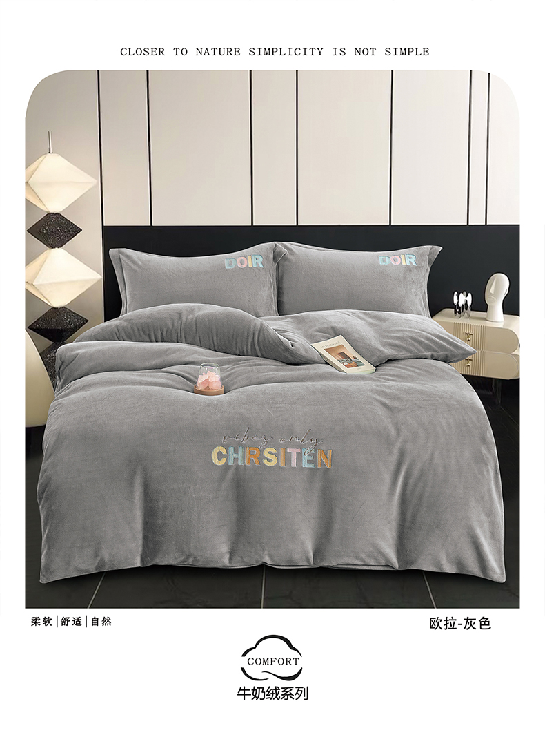 (总)绒博士 2025新款220克牛奶绒刺绣三件套--欧拉系列,欧拉-宾利蓝,欧拉-芳菲紫,欧拉-灰色,欧拉-奶绿,欧拉-樱花粉