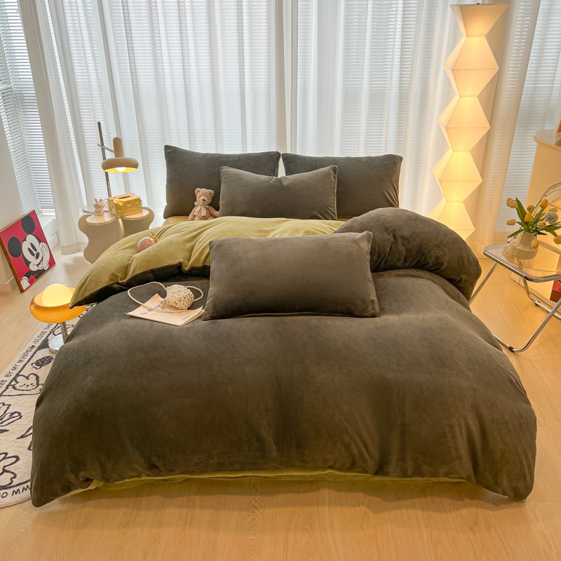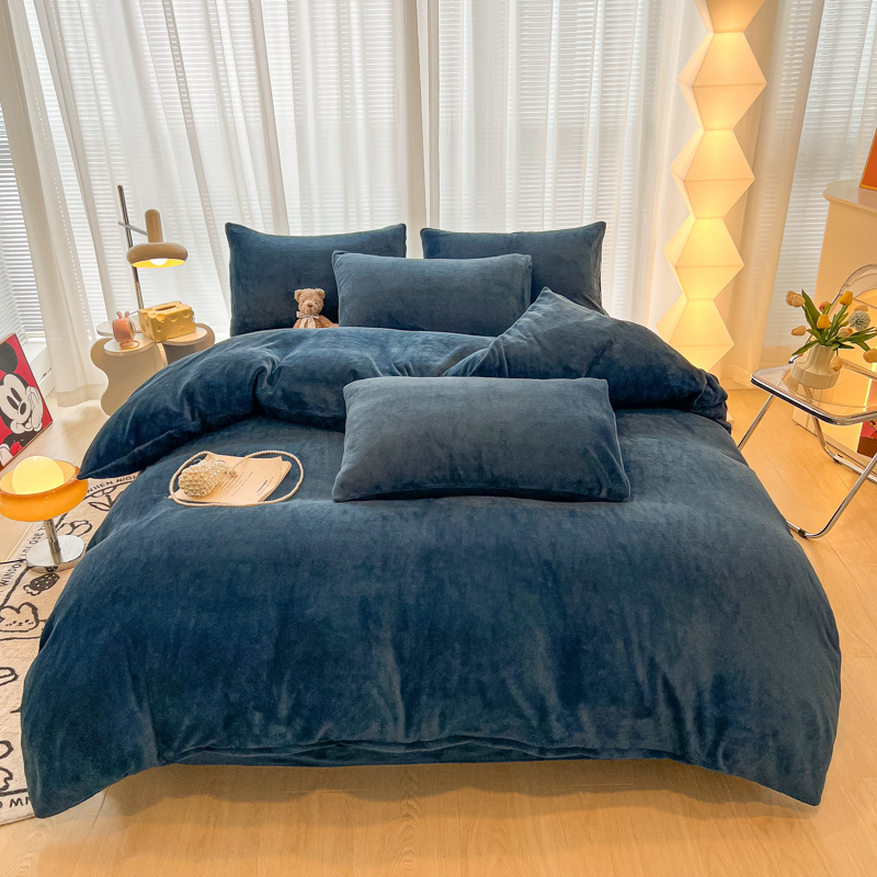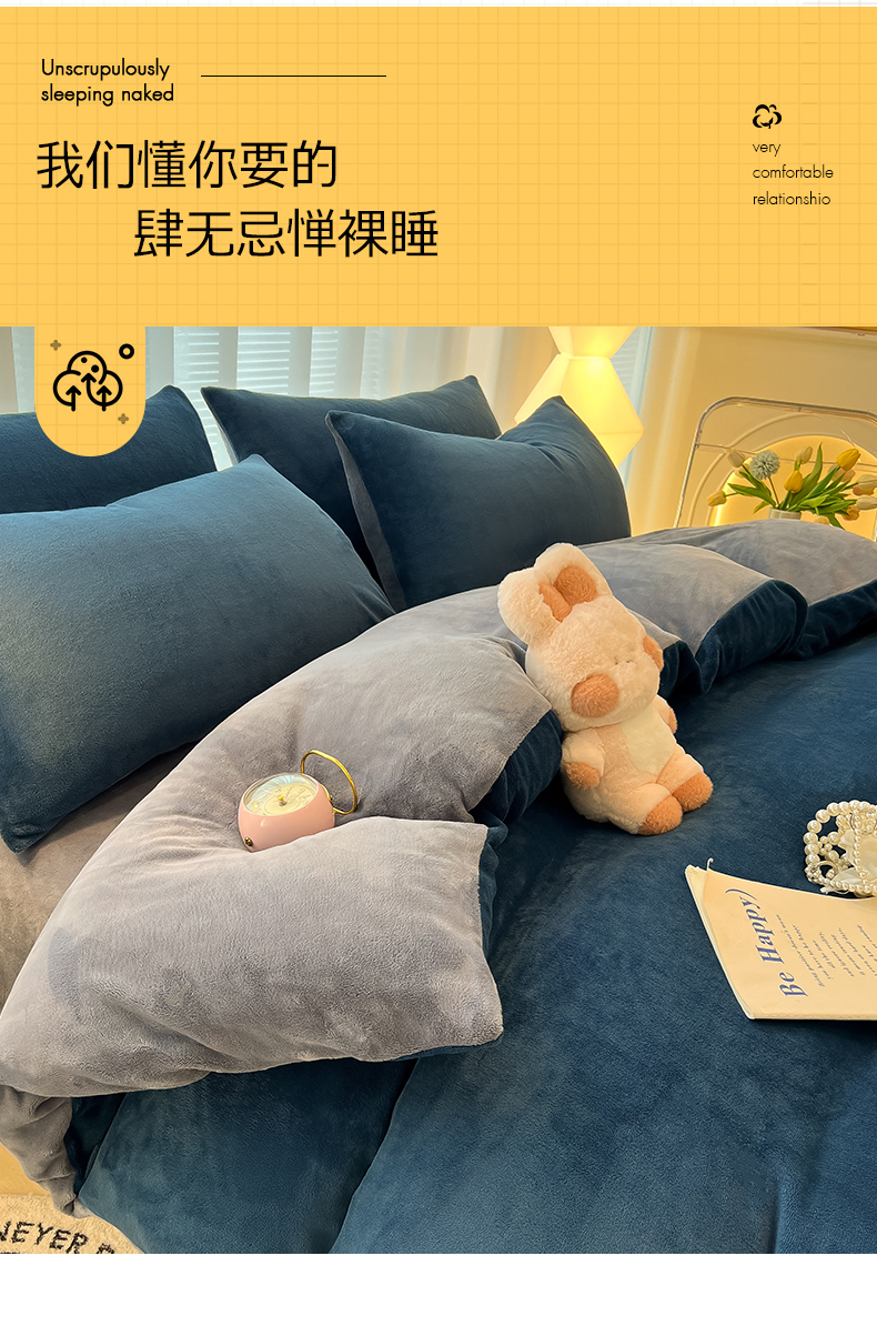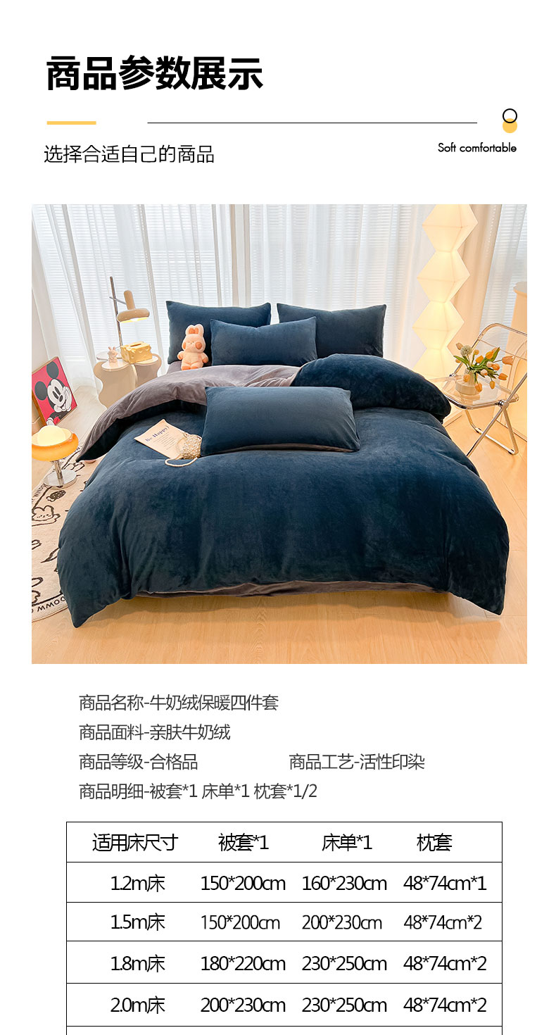商品名称:悦织湾家纺 2025新款简约纯色牛奶绒四件套条纹轻奢时尚冬季加厚保暖床上用品学生宿舍三四件套 牛奶绒-宝兰+浅灰
