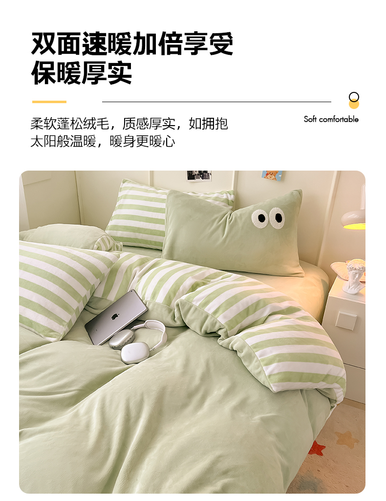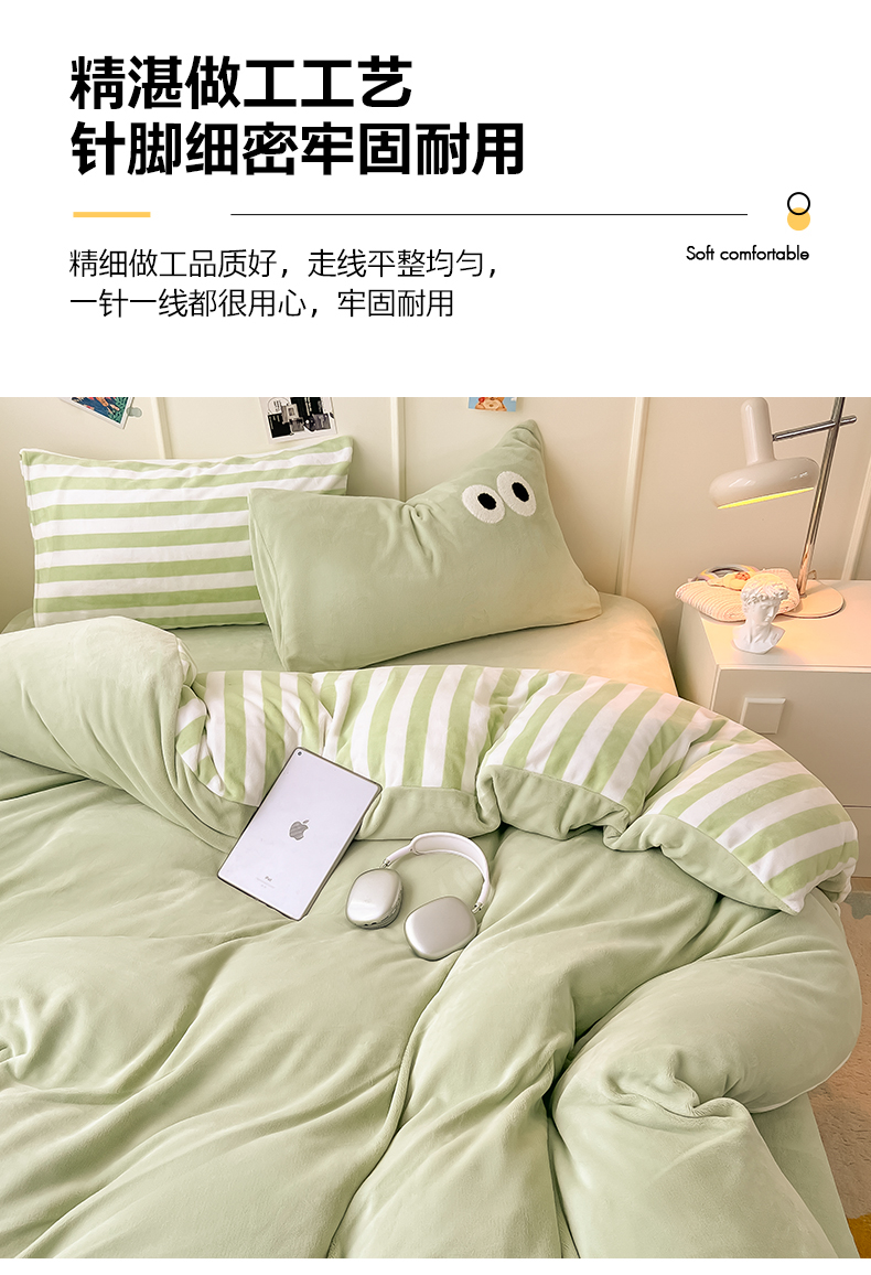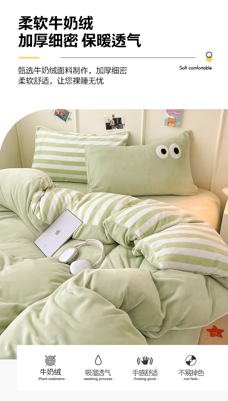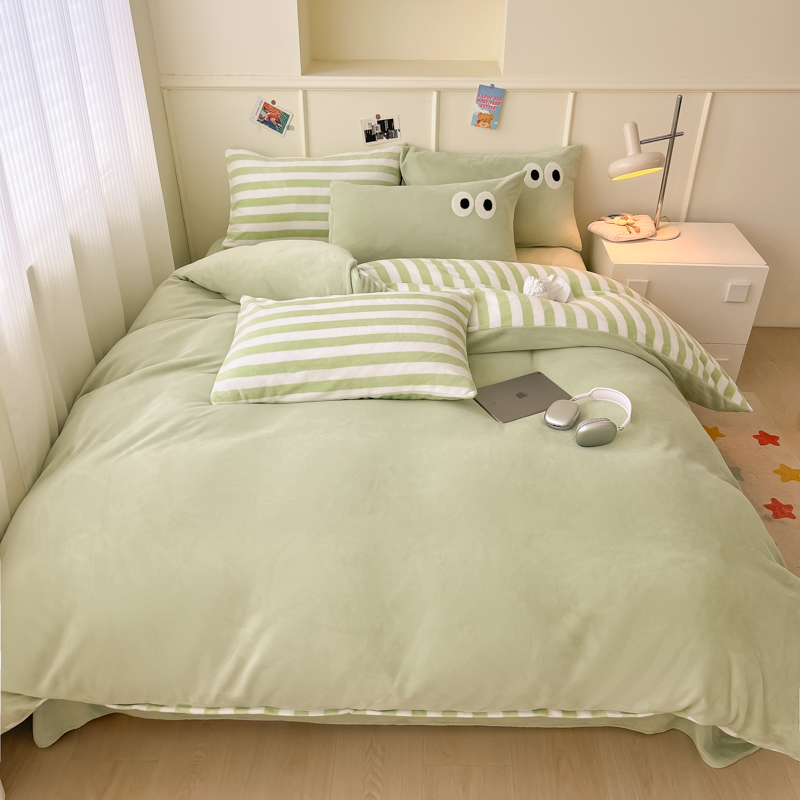 当前位置: 91家纺网 > 商品网购 > 床品套件 > 四件套 > 牛奶绒四件套 > 悦织湾家纺 2025新款简约牛奶绒眼睛系列纯色条纹轻奢时尚卡通冬季加厚保暖学生宿舍三四件套 简约牛奶绒果绿苏条