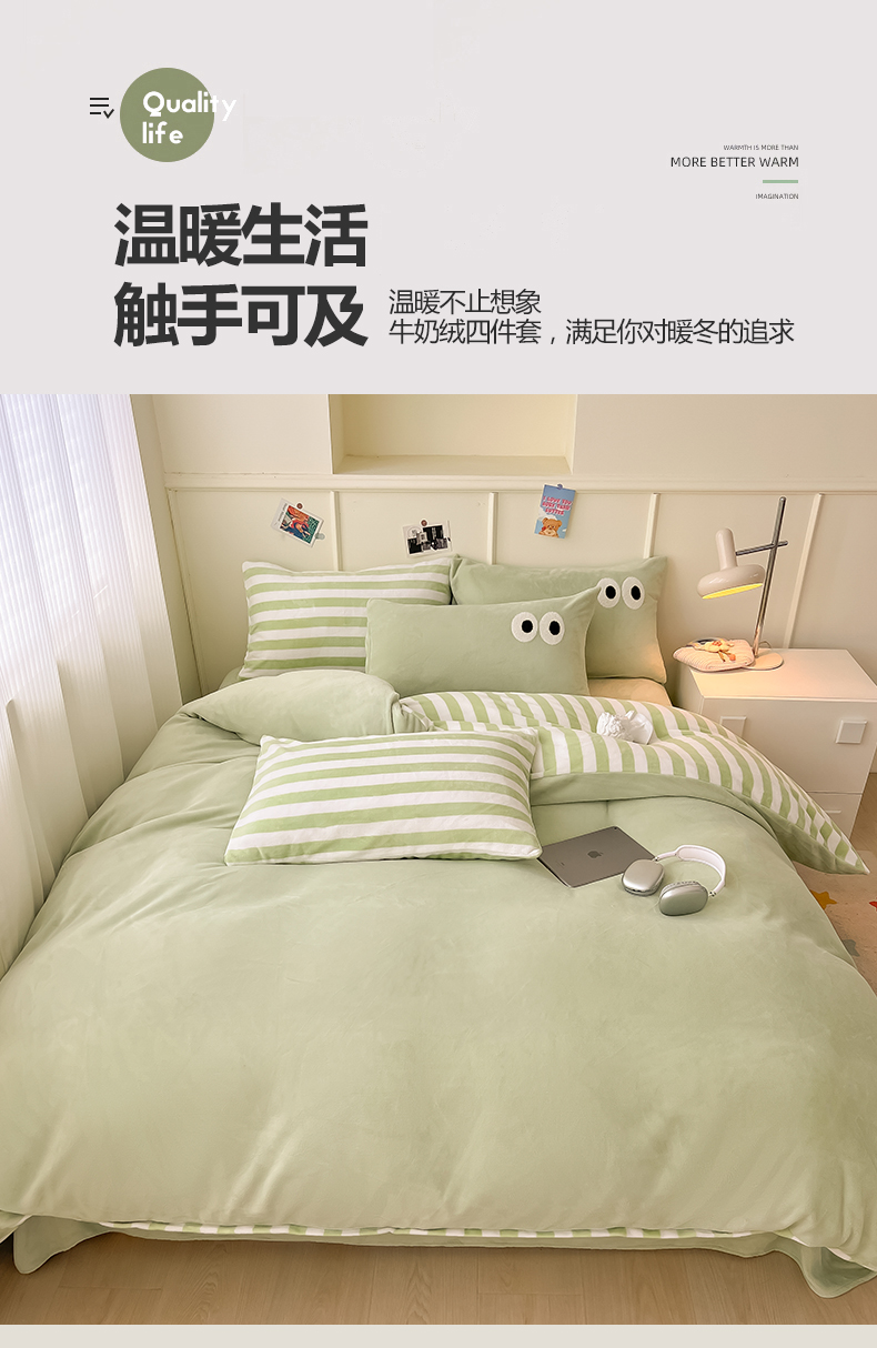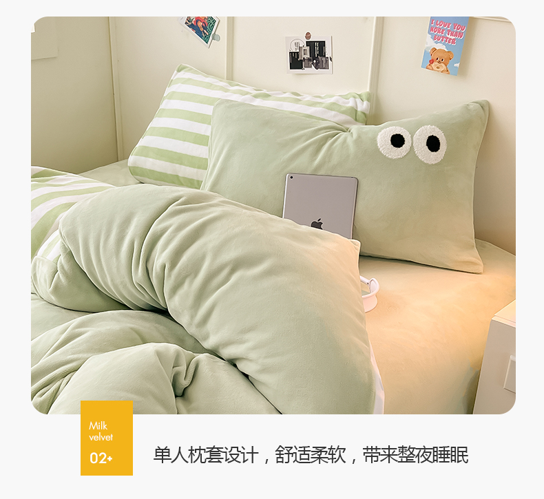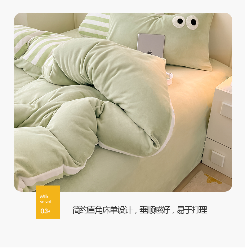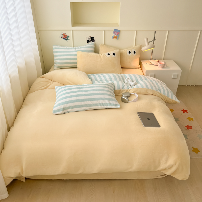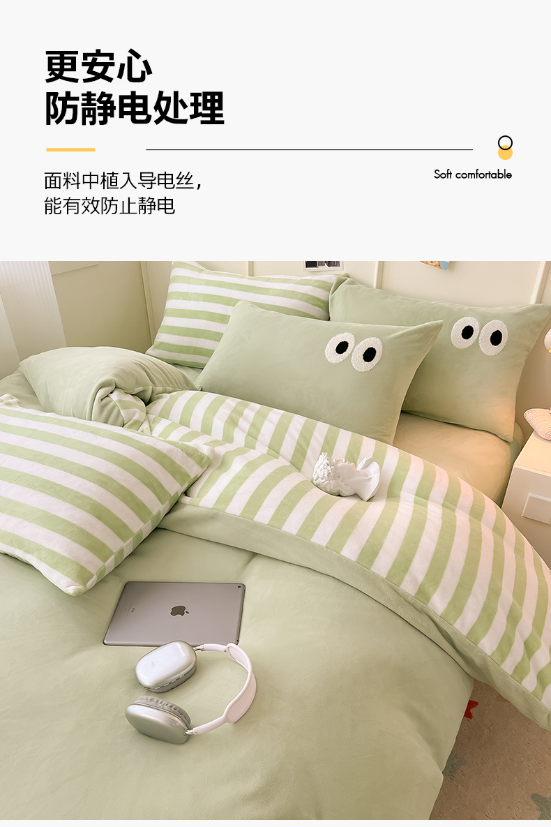 当前位置: 91家纺网 > 商品网购 > 床品套件 > 四件套 > 牛奶绒四件套 > 悦织湾家纺 2025新款简约牛奶绒眼睛系列纯色条纹轻奢时尚卡通冬季加厚保暖学生宿舍三四件套 简约牛奶绒果绿苏条