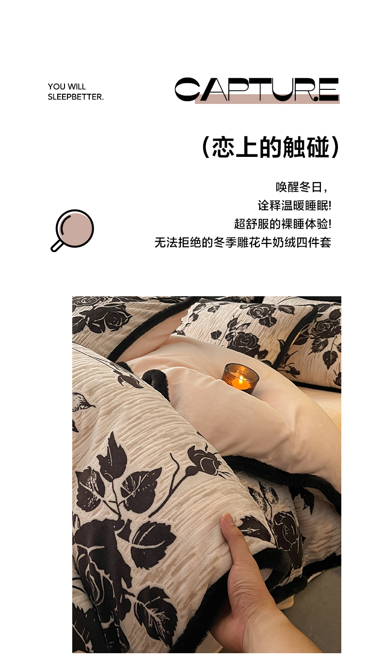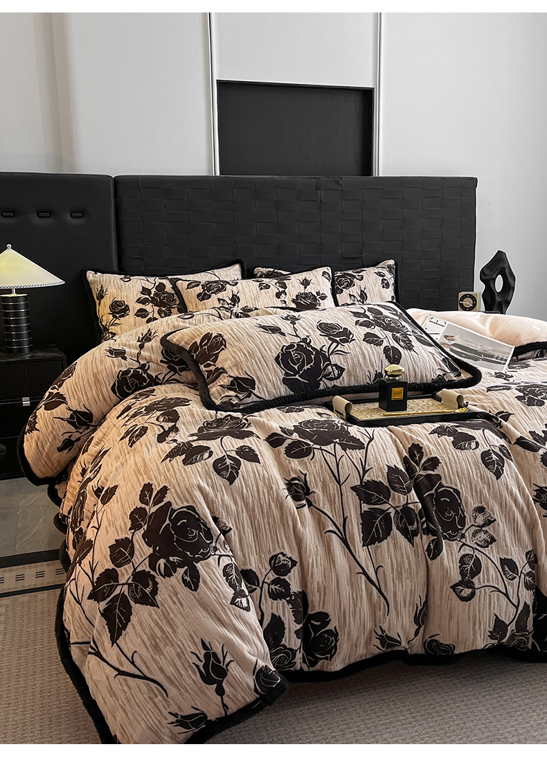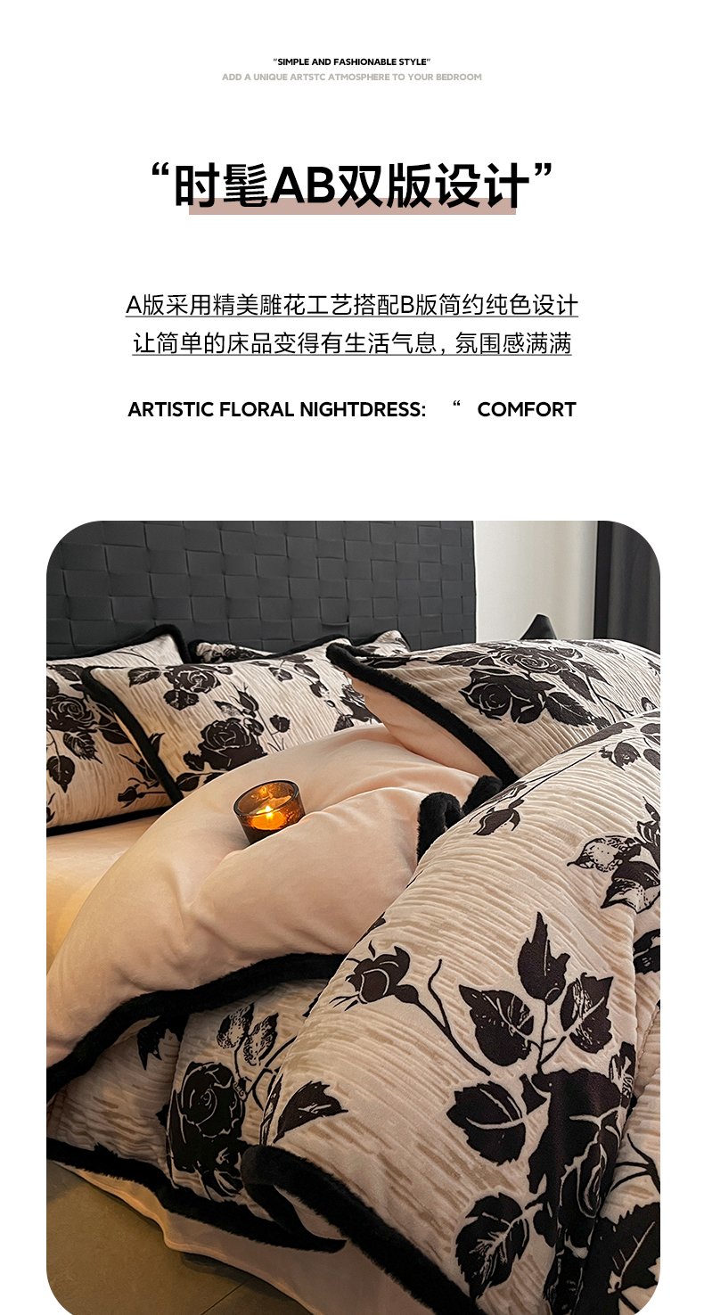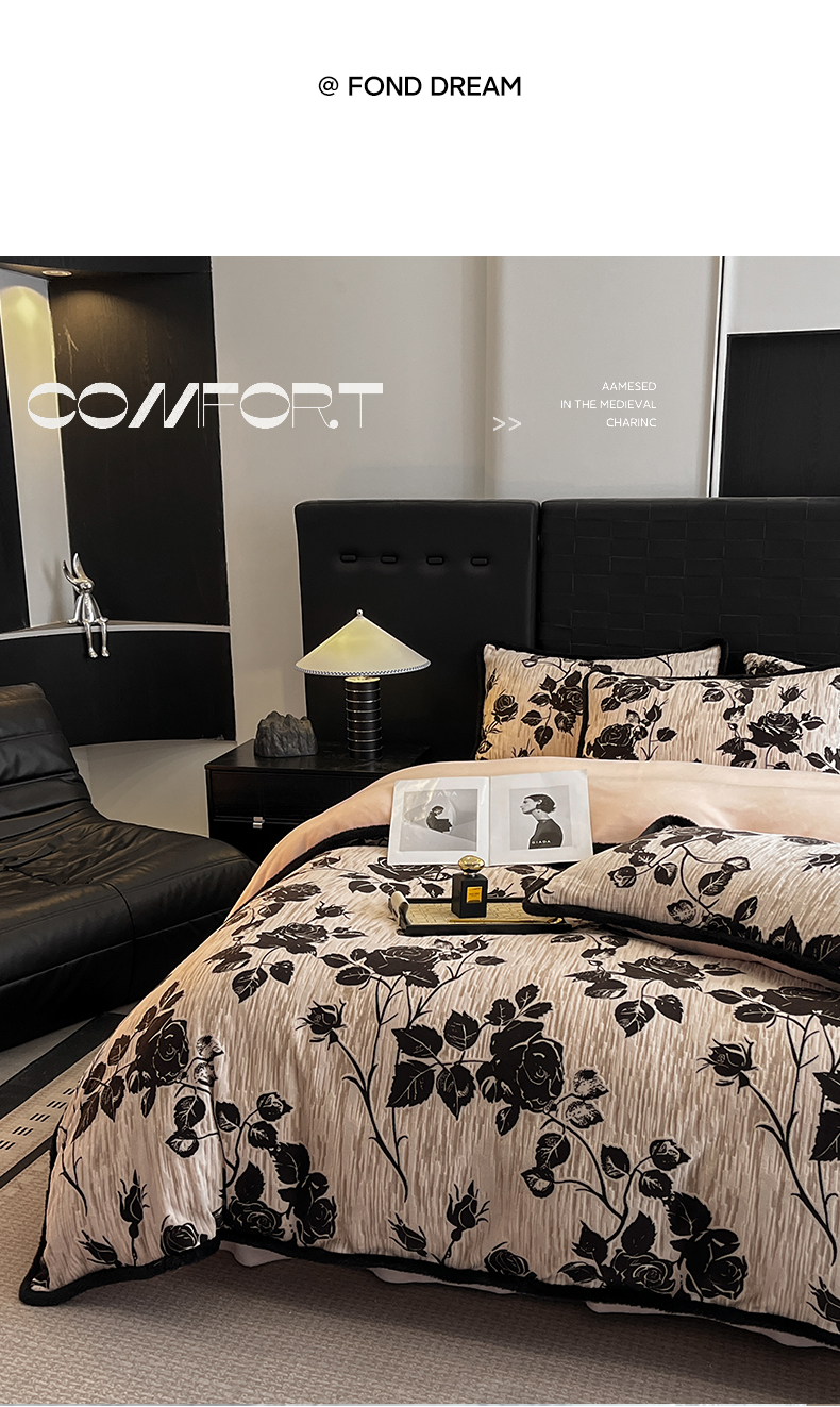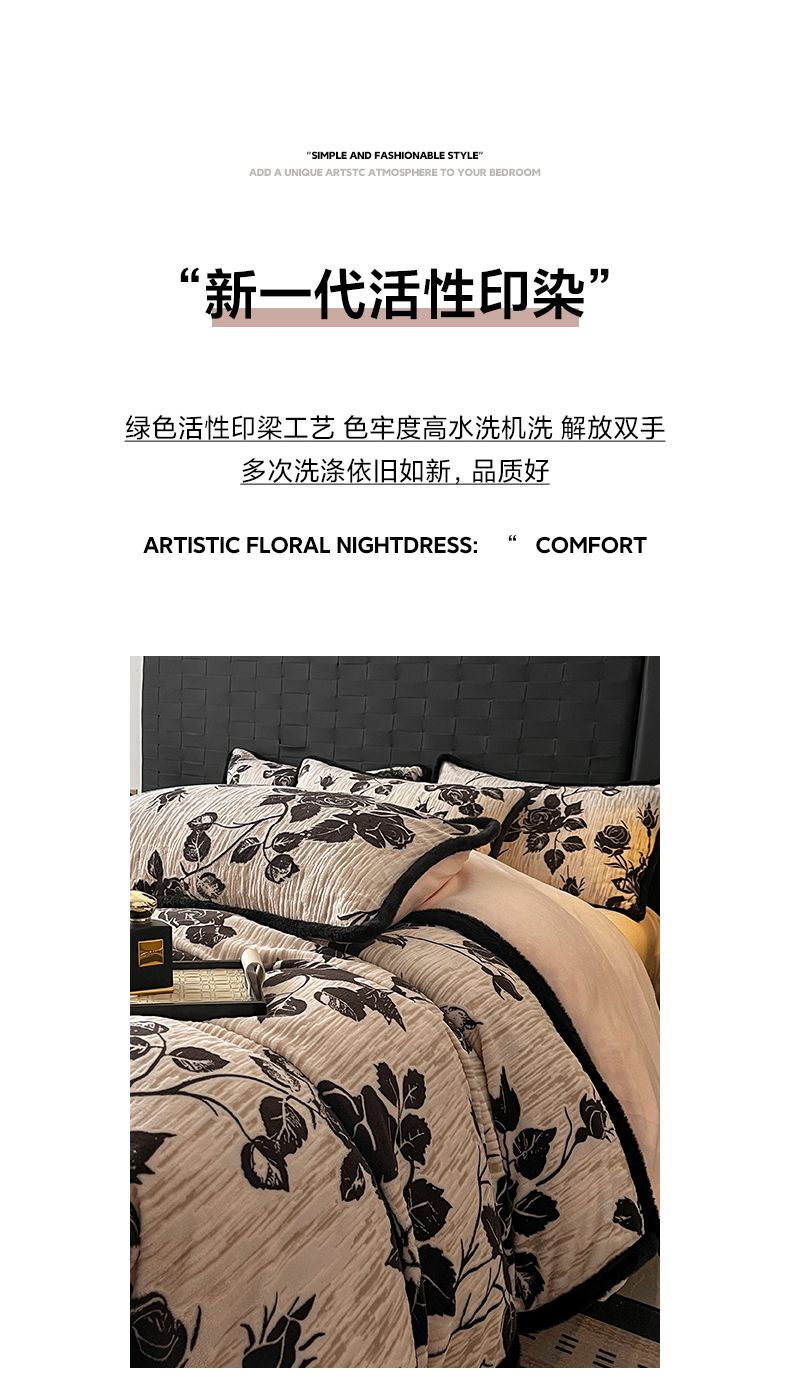 商品名称:狂想家 2025新款包边加厚雕花牛奶绒四件套 花样年华-玉粉