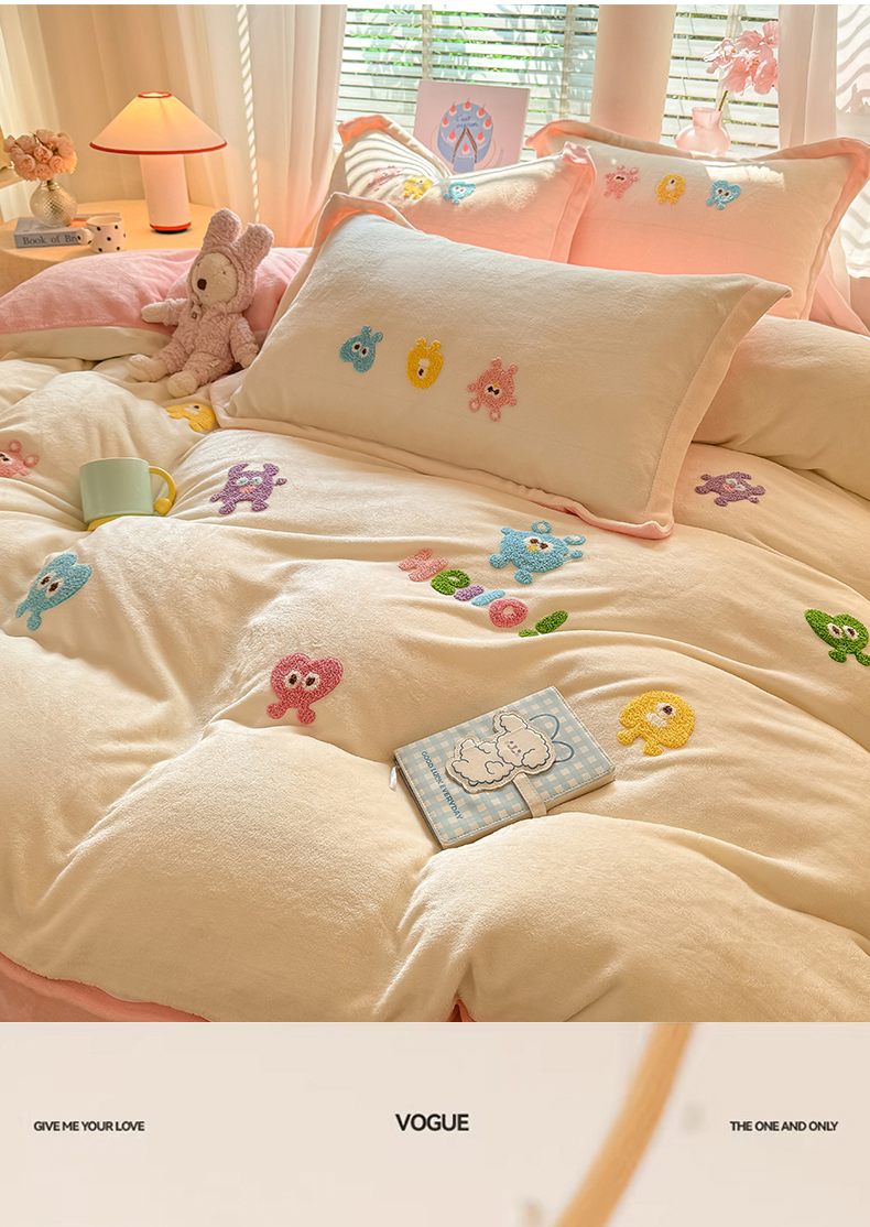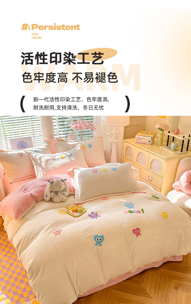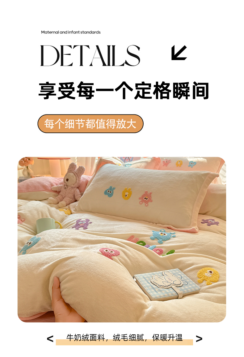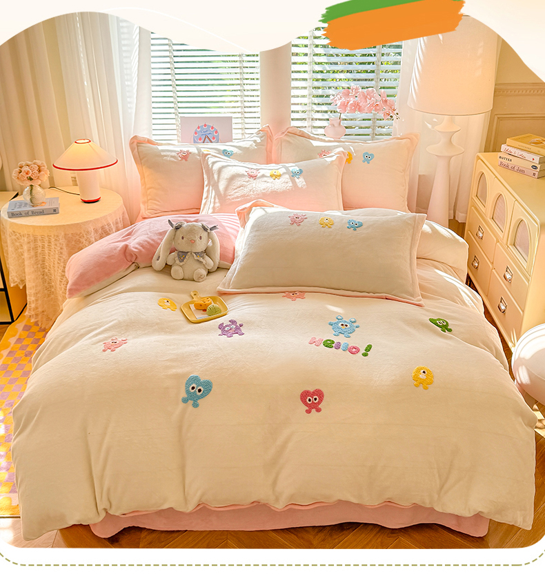 当前位置: 91家纺网 > 商品网购 > 床品套件 > 四件套 > 牛奶绒四件套 > 雨菲家纺 2025新款高克重加厚简约毛巾绣花牛奶绒四件套 牛奶绒小精灵奶黄粉