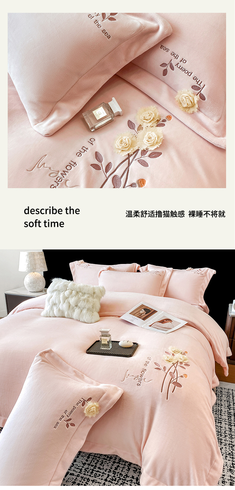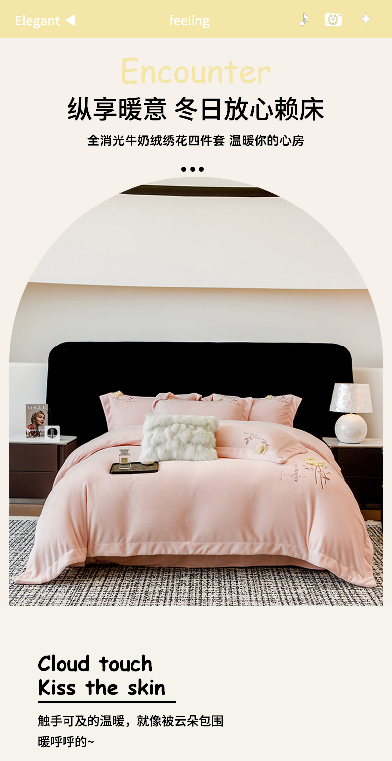 (总)席之家 2025新款刺绣牛奶绒四件套,花语-卡其玉,花语-奶咖,花语-青柠绿,花语-少女粉