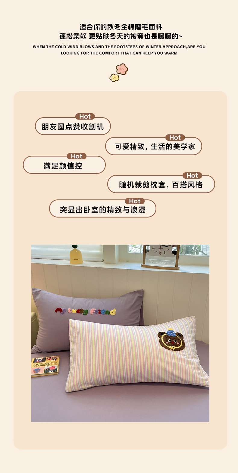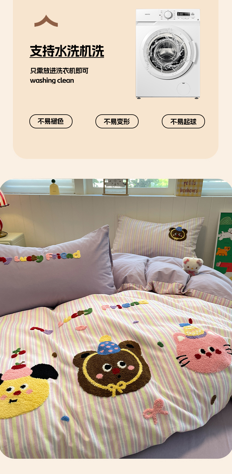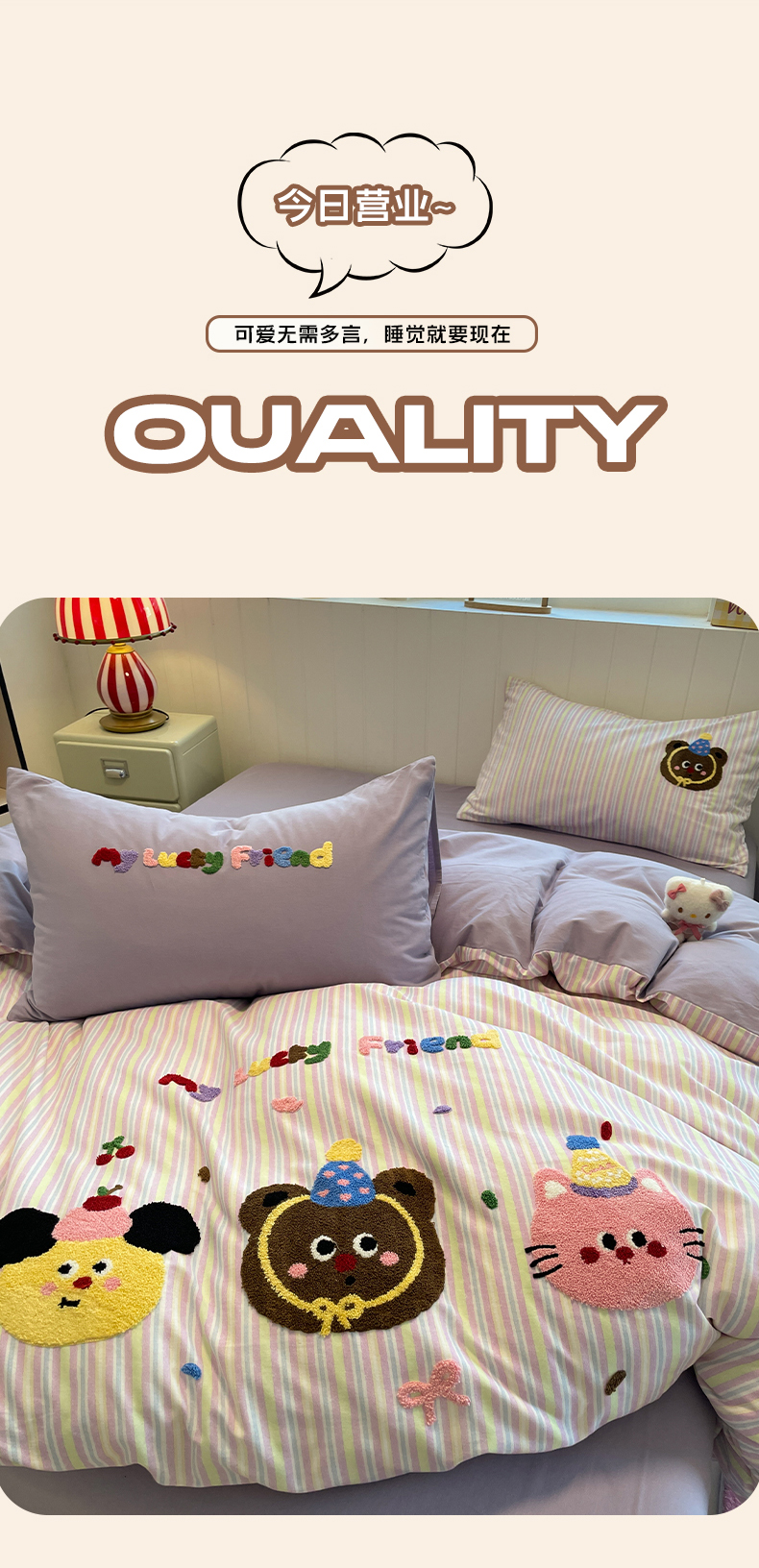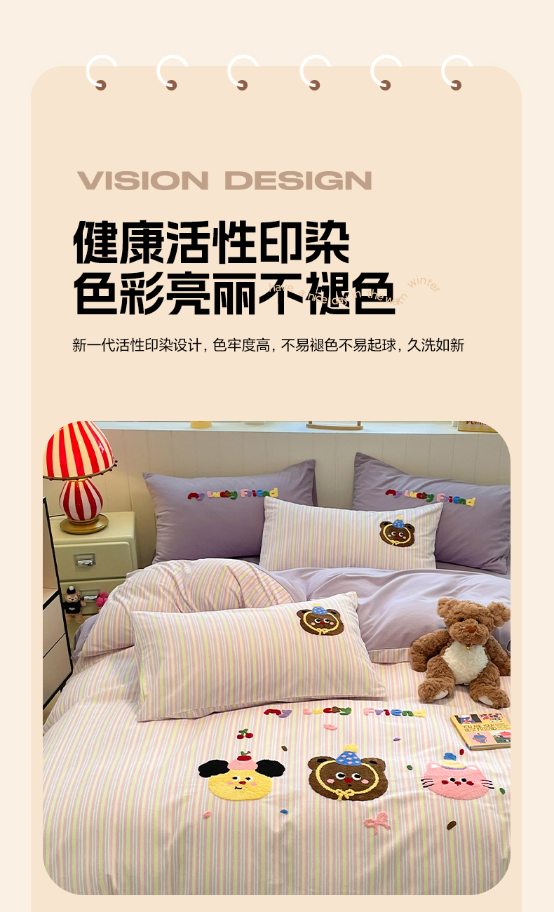 当前位置: 91家纺网 > 商品网购 > 床品套件 > 四件套 > 普通磨毛四件套 > 蓝邻家纺 2025新款全棉磨毛卡通刺绣款四件套--毛巾绣系列 樱桃好朋友