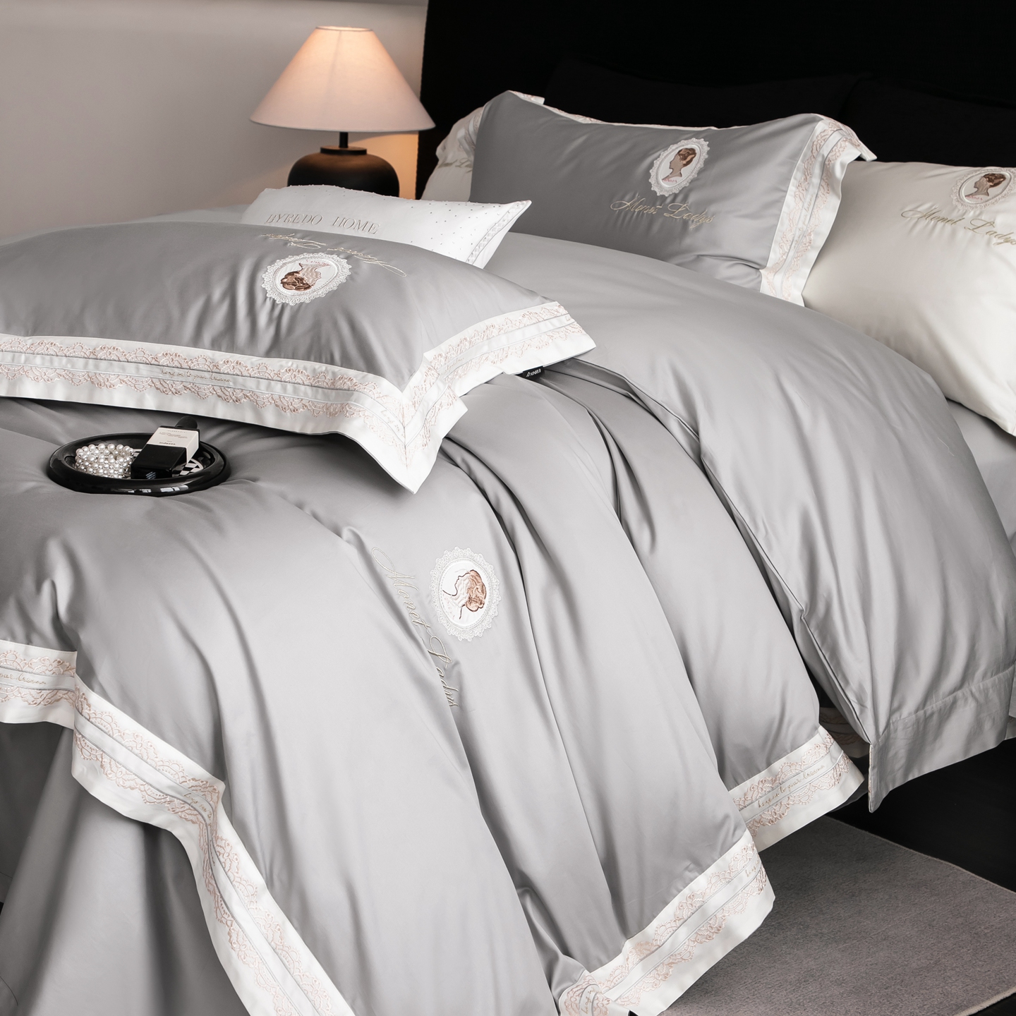 馨蕊家居 2025新款100s全棉刺绣四件套-慕恋 (会员-20) 控价398/418 劵后控价:不低于368/388(礼盒包装) 慕恋-高级灰