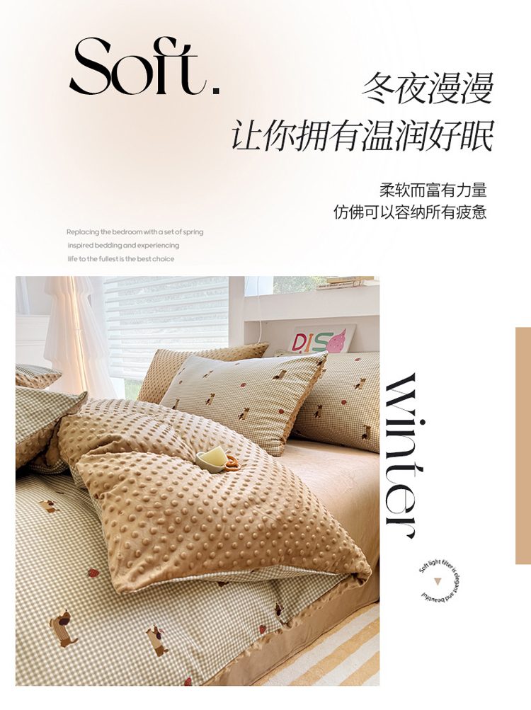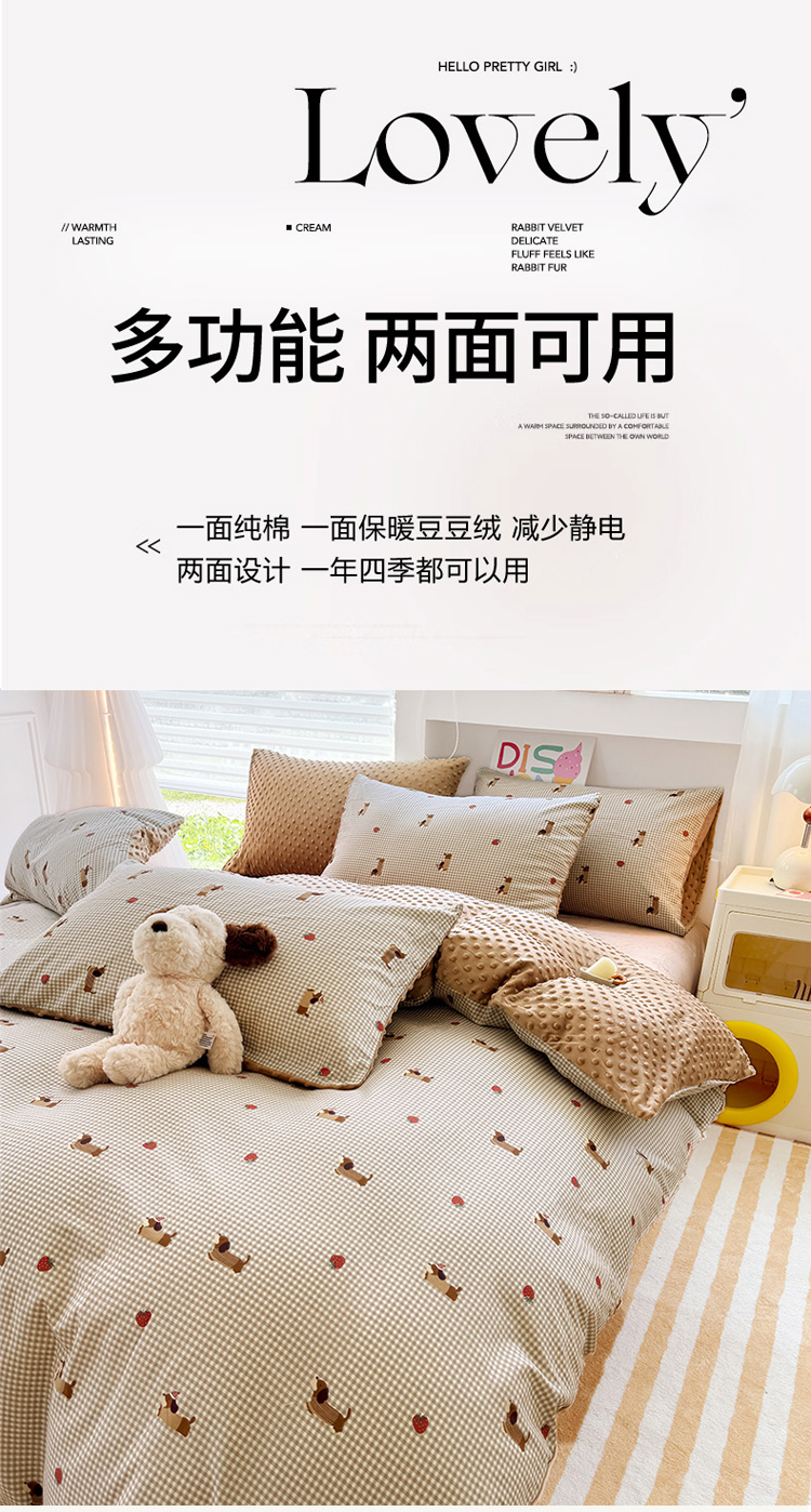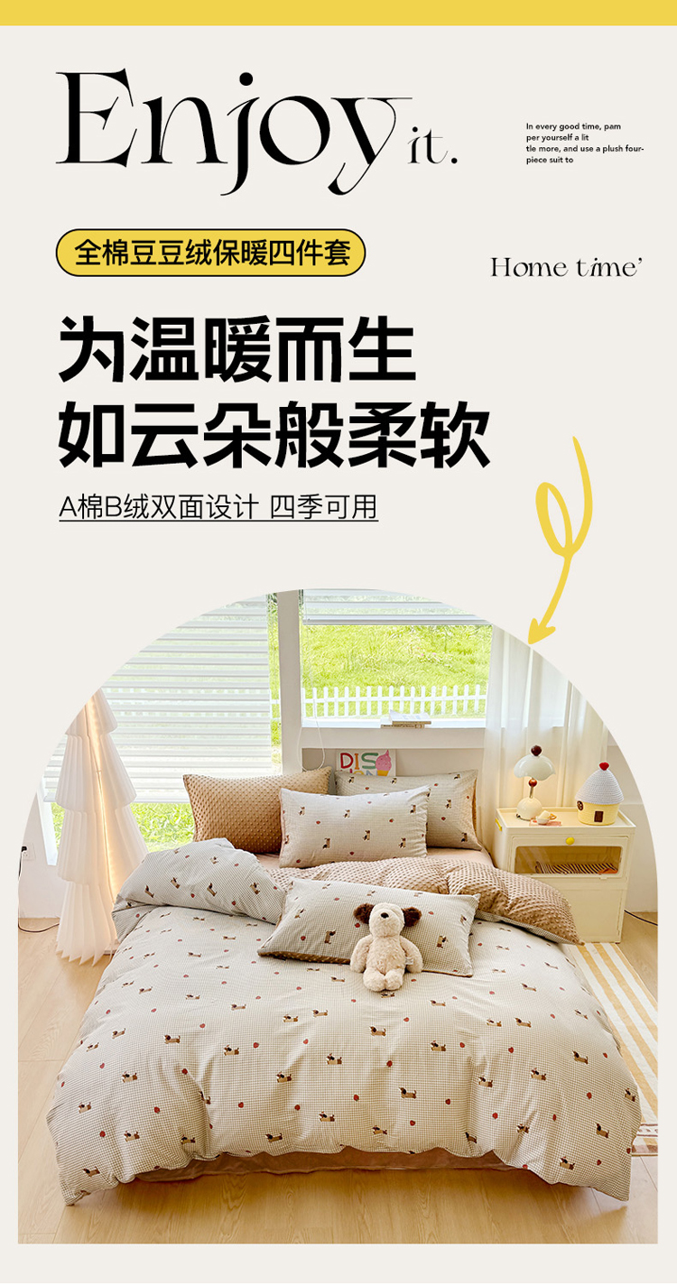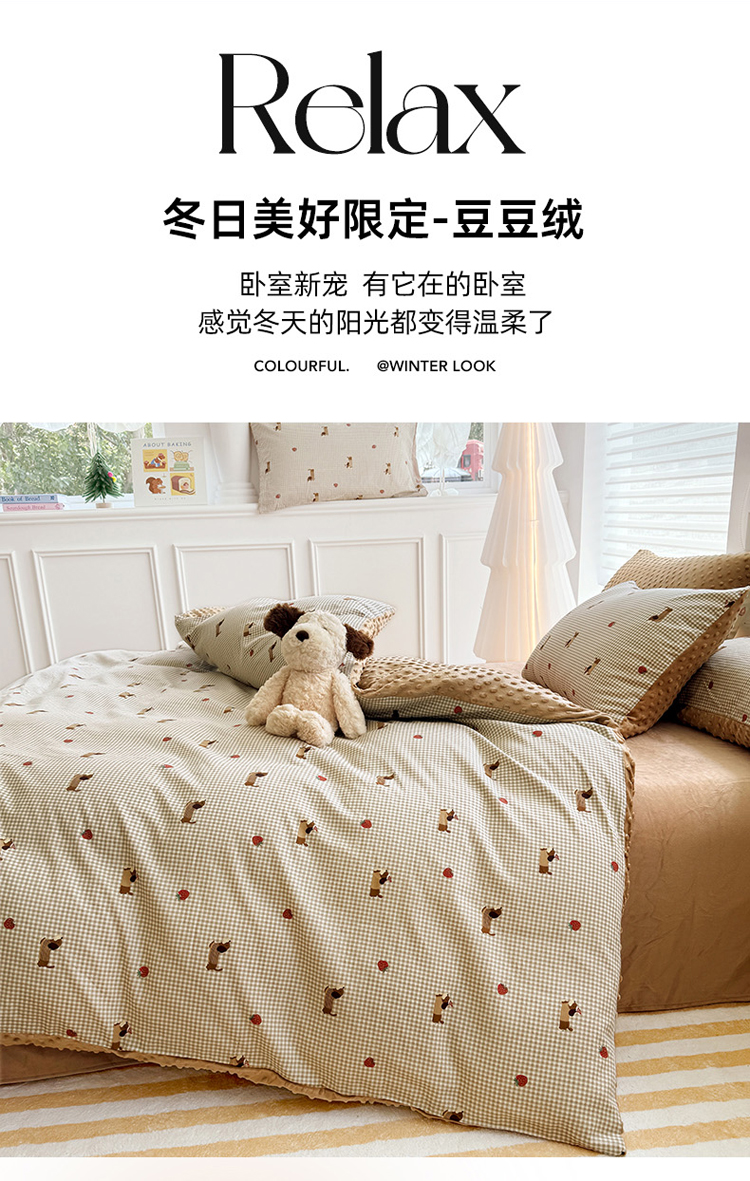 当前位置: 91家纺网 > 商品网购 > 床品套件 > 四件套 > 全棉普通四件套 > 丫丫家纺 2025学生季全棉高克重豆豆绒三四件套加厚保暖婴儿绒牛奶绒单被套单人双人被套加大号棉加绒三四件套 追梦腊肠