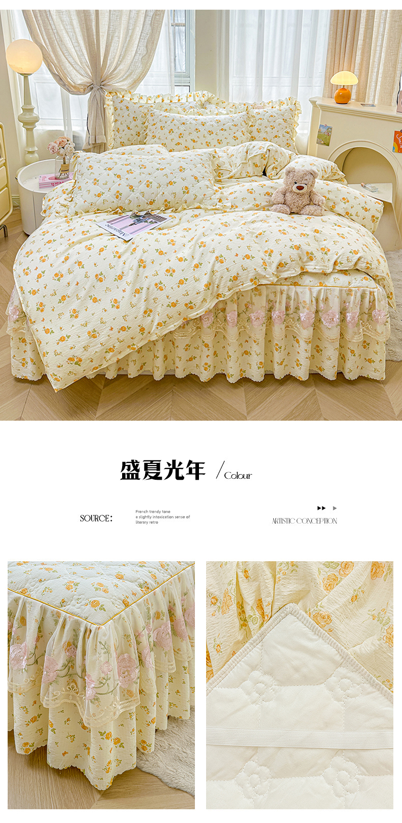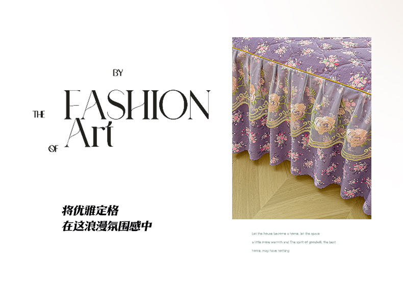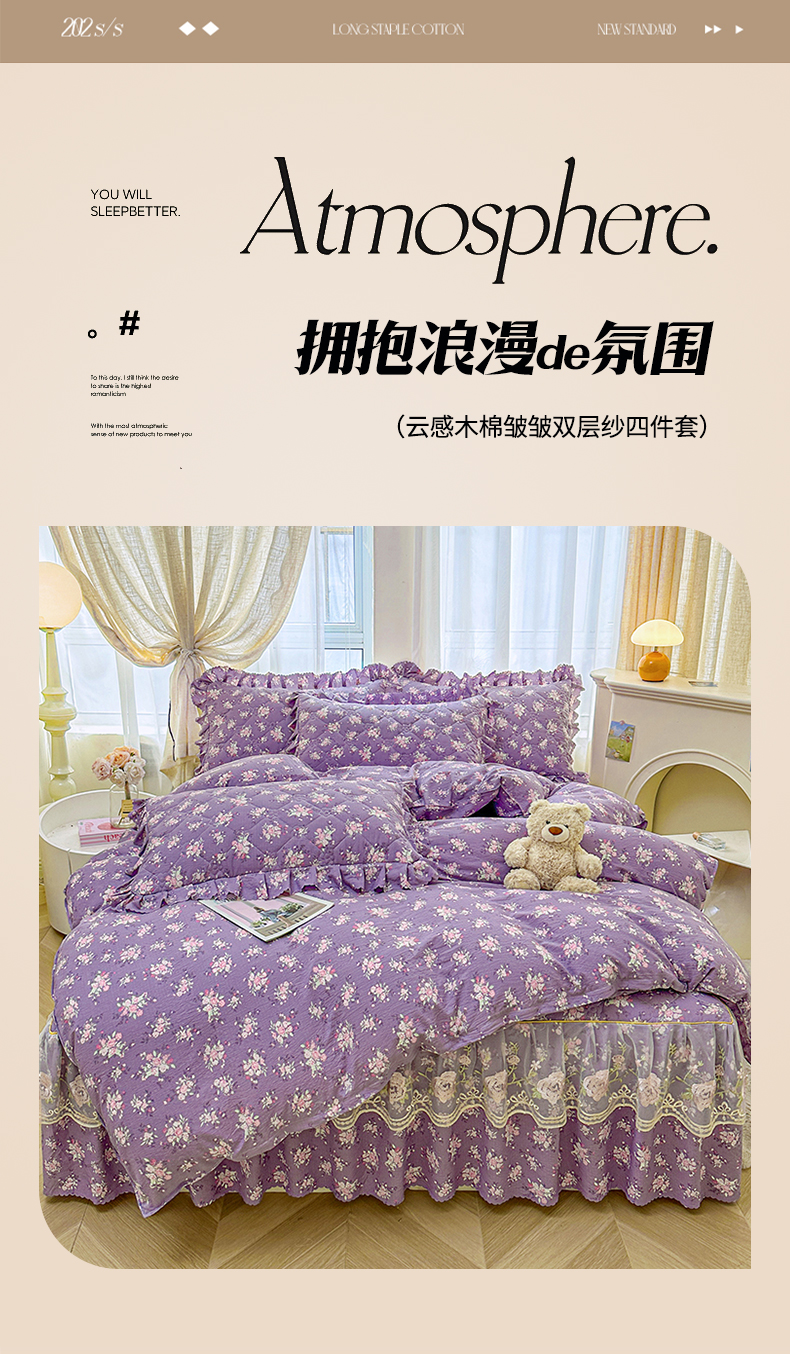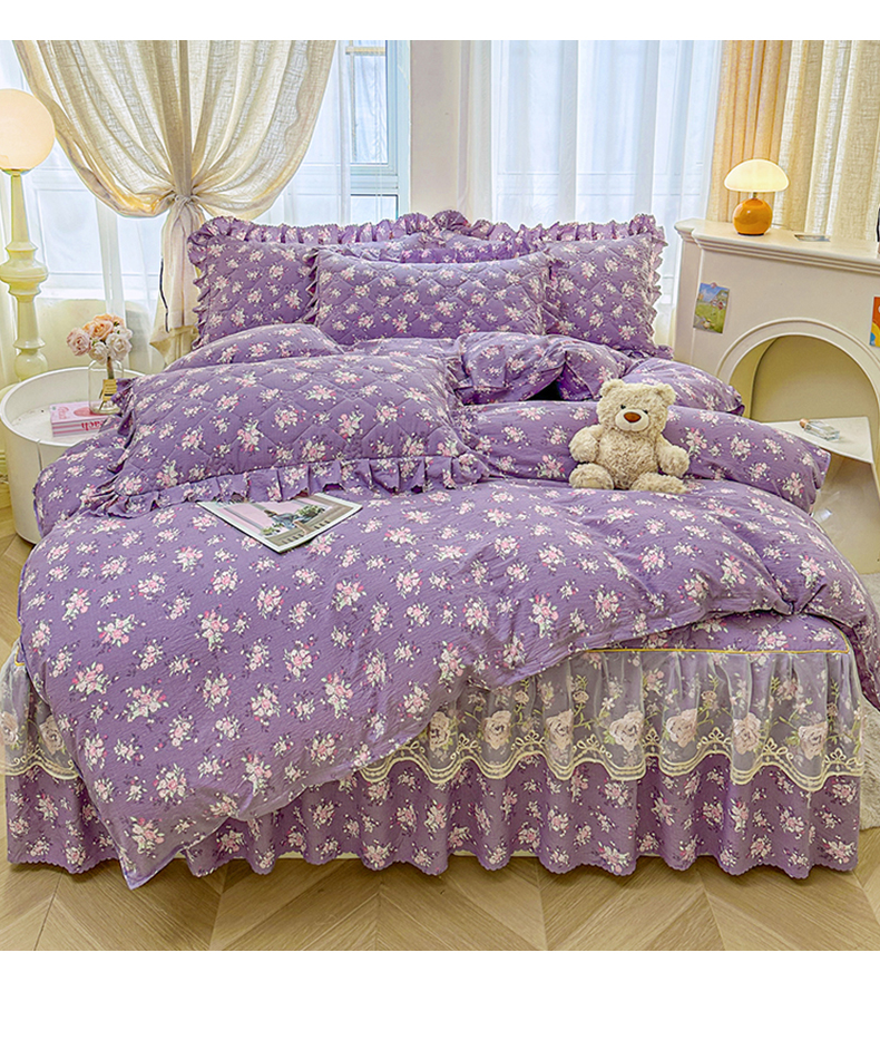 当前位置: 91家纺网 > 商品网购 > 床品套件 > 四件套 > 其它四件套 > 艾裙海 2025秋冬新款木棉皱皱双层纱夹棉床裙系列四件套 紫藤花语