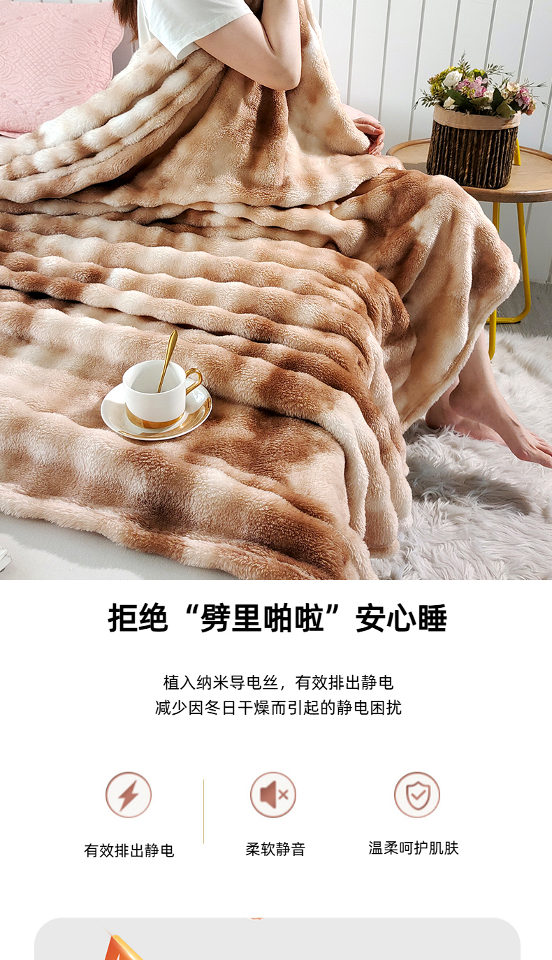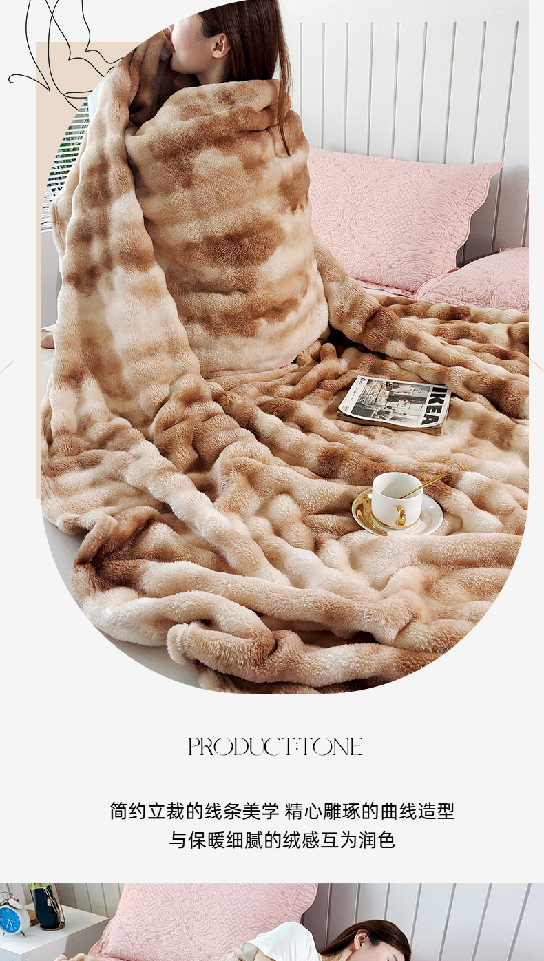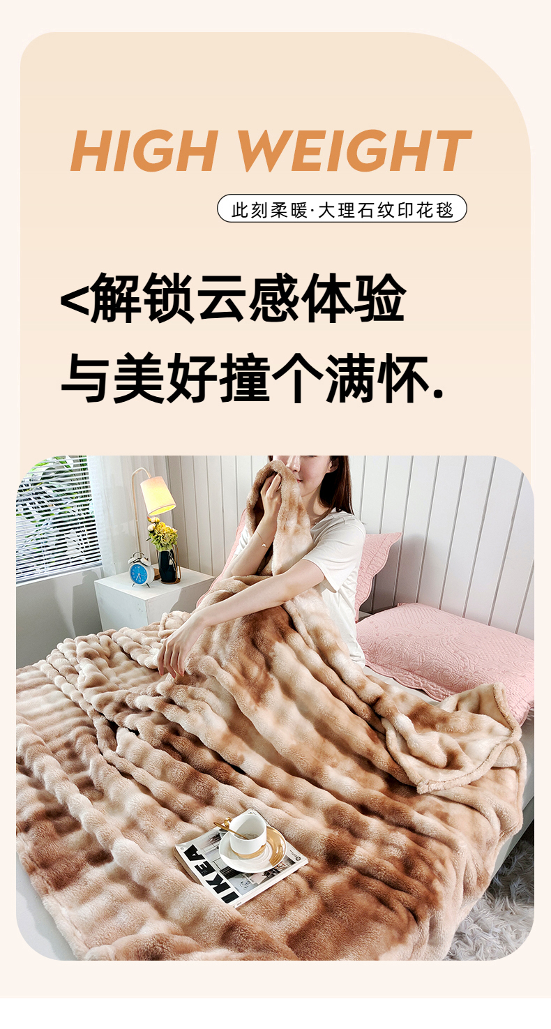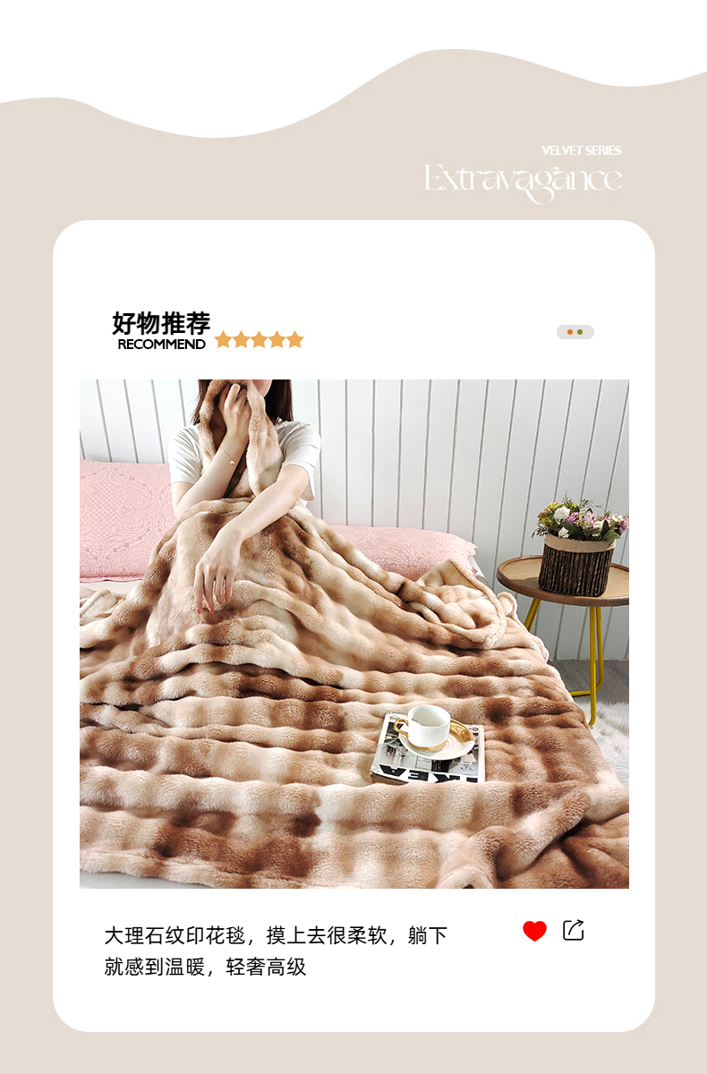 安琪家纺 2025新款300G炫彩水墨画仿兔毛绒大泡泡绒印花法兰绒毛毯大理石纹休闲毯沙发盖毯跨境外贸出口专供 水墨画-驼