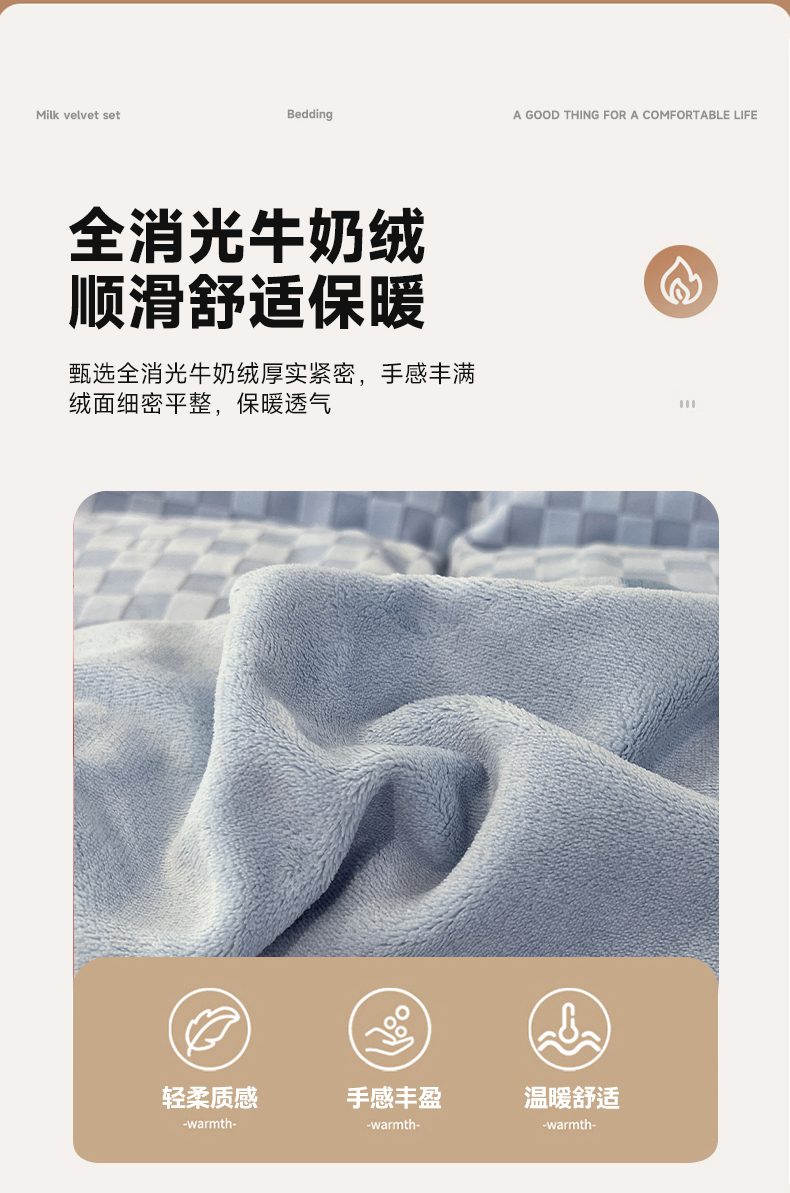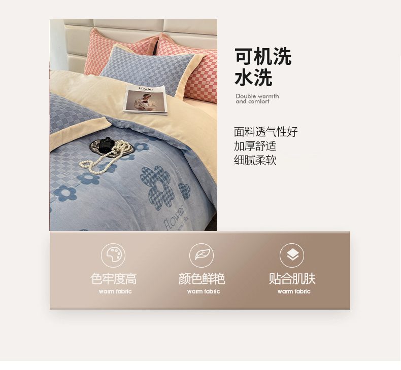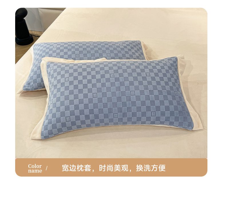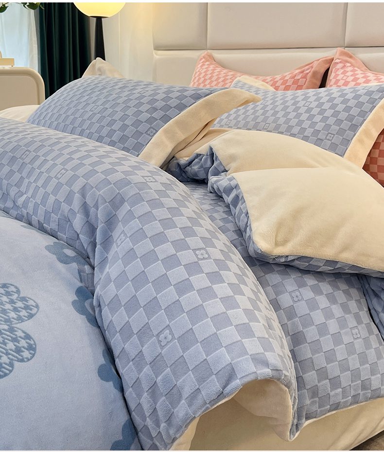 商品名称:花香四季家纺 2025新款全消光工艺320克牛奶绒四件套 棋盘格-蓝