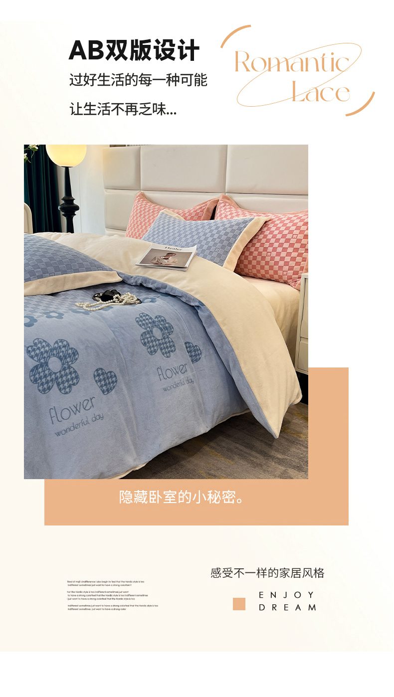(总)花香四季家纺 2025新款雕花绒牛奶绒夹棉床盖款四件套系列-浪漫情缘,浪漫情缘-粉色,浪漫情缘-米白