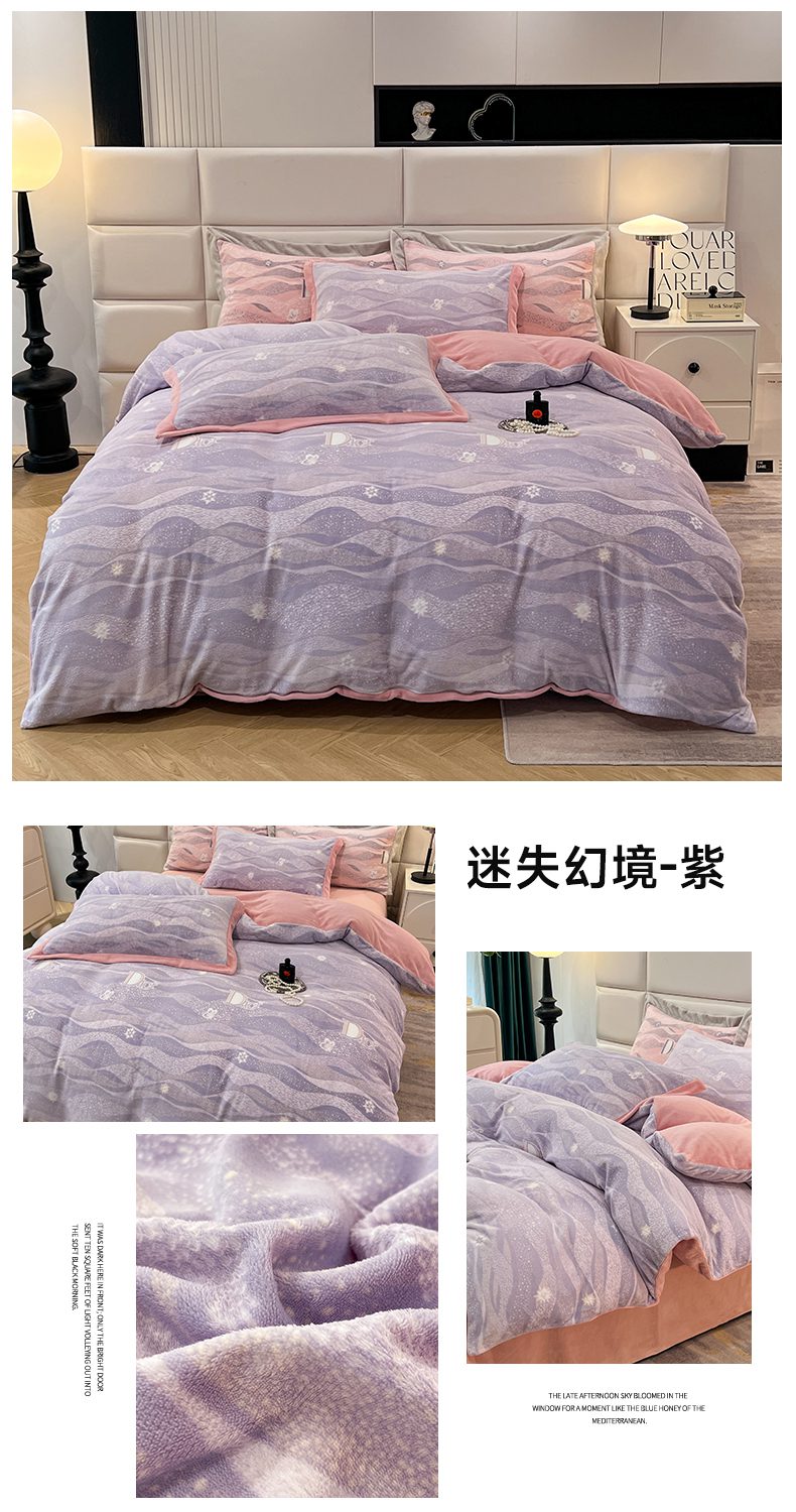 (总)花香四季家纺 2025新款A类雕花绒夹棉床盖款四件套-浪漫花语,浪漫花语-奶油白,浪漫花语-复古绿,浪漫花语-樱花粉,浪漫花语-优雅紫