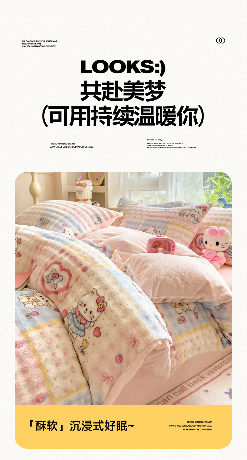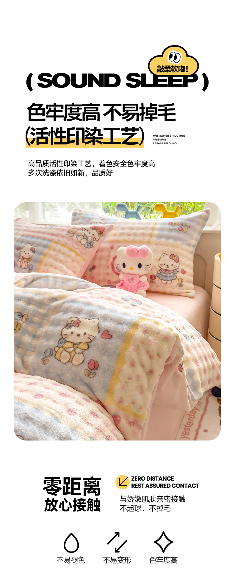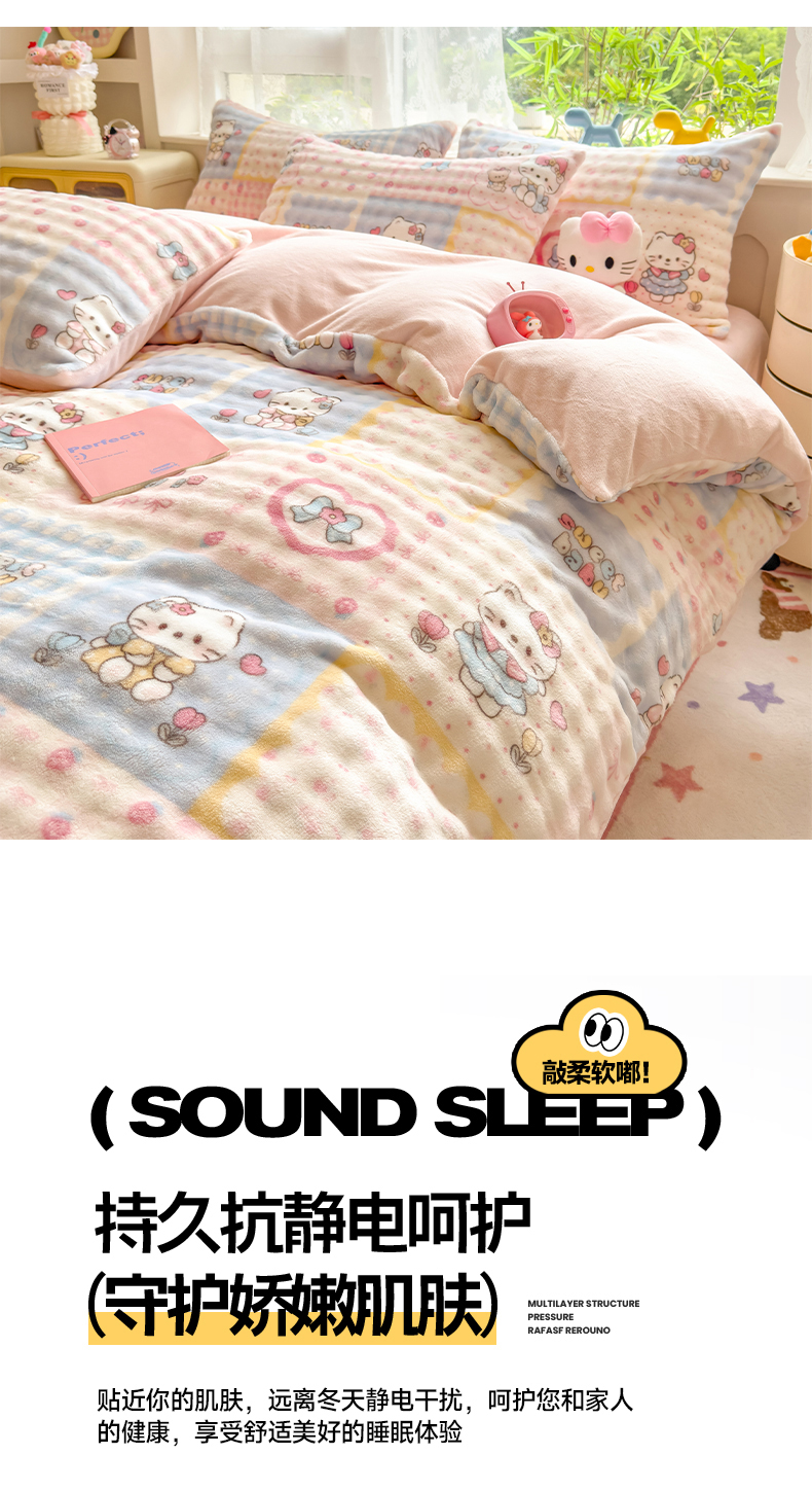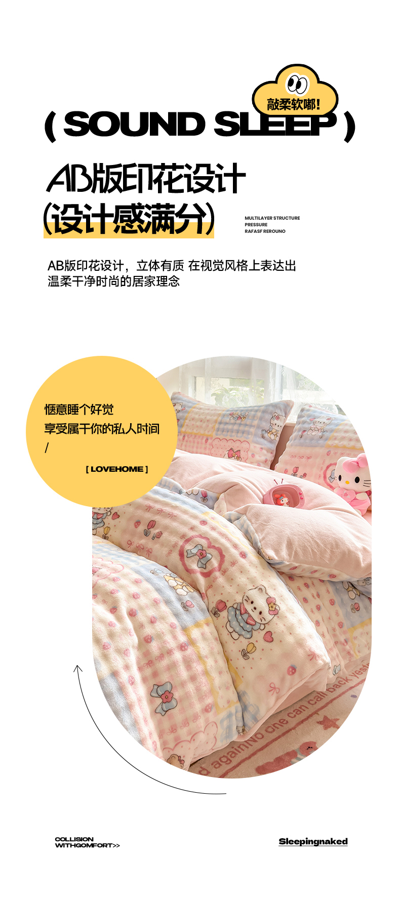 当前位置: 91家纺网 > 商品网购 > 床品套件 > 四件套 > 牛奶绒四件套 > 摩妮卡 2025新款小清新加厚260克牛奶绒泡泡绒四件套 凯蒂小熊