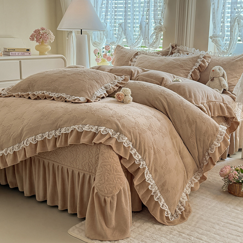 当前位置: 91家纺网 > 商品网购 > 床品套件 > 四件套 > 牛奶绒四件套 > 绒棉世家 2025秋冬新款法式韩版花边款加厚牛奶绒双面宝宝绒四件套 秘密花园-兰