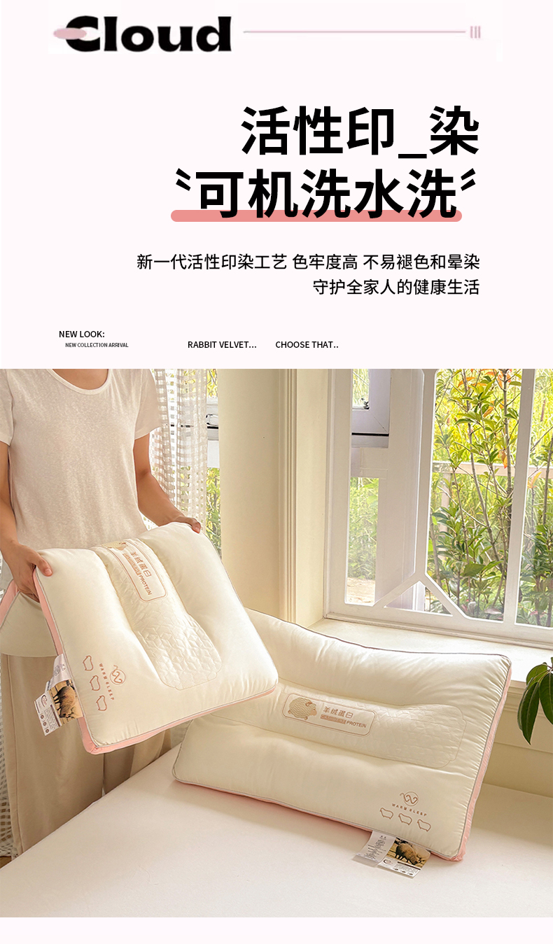 商品名称:青泽家纺 2025新款羊绒蛋白枕头枕芯 羊绒蛋白枕芯 高枕一对装