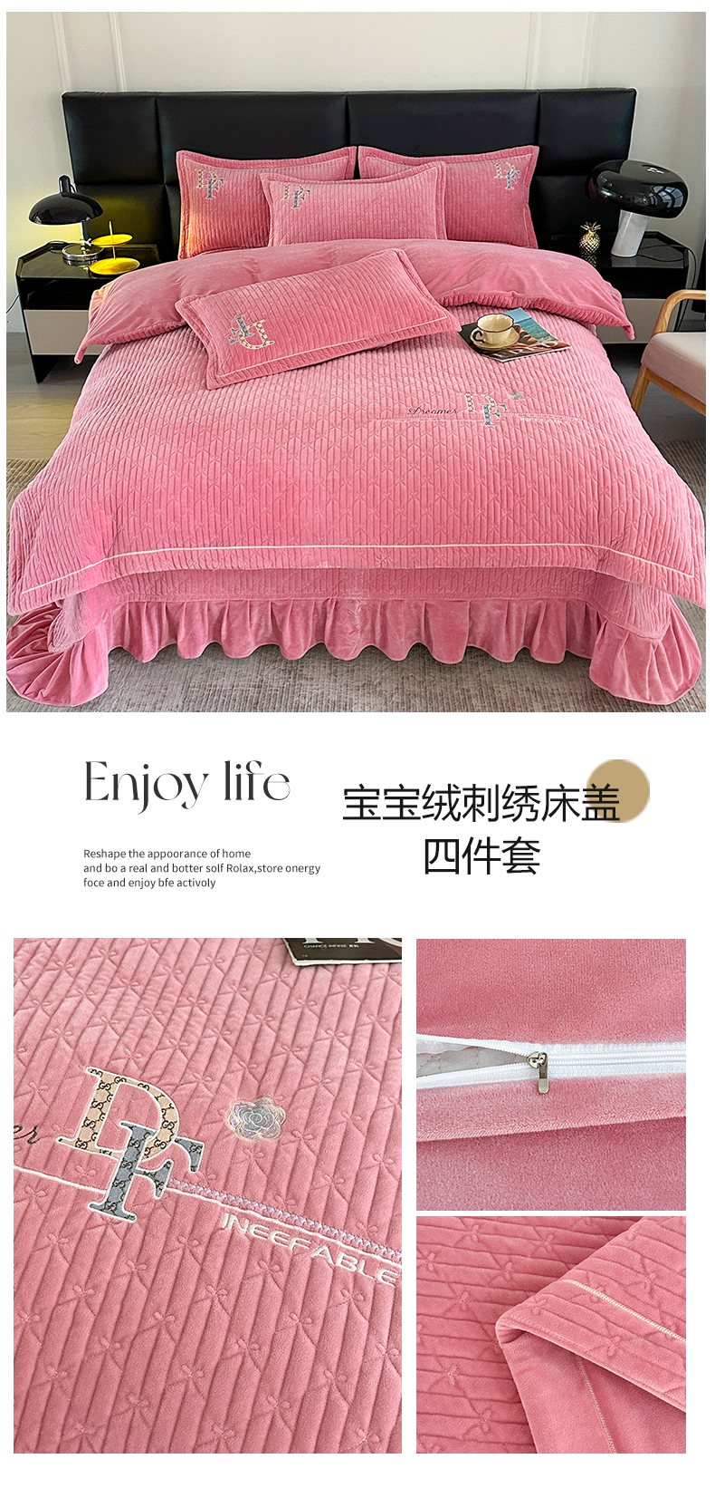 (总)代芙家纺 2025新款宝宝绒夹棉床盖款四件套,甜心-粉豆沙,甜心-海蓝,甜心-火山红,甜心-魔力紫,甜心-优雅灰