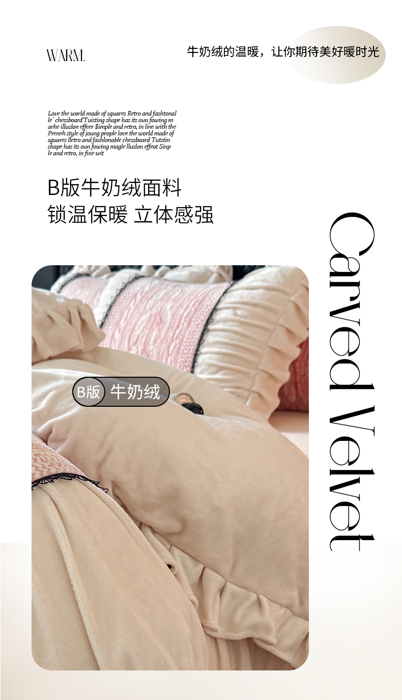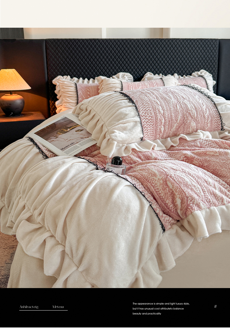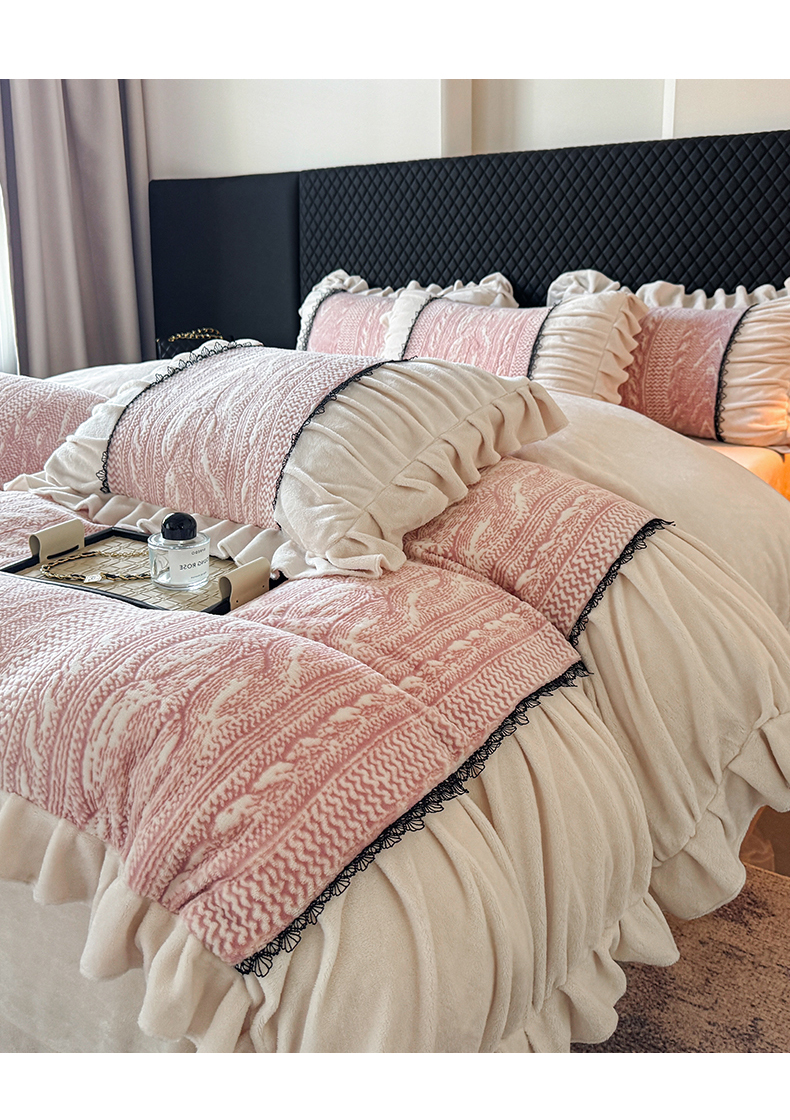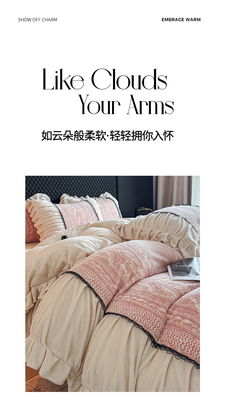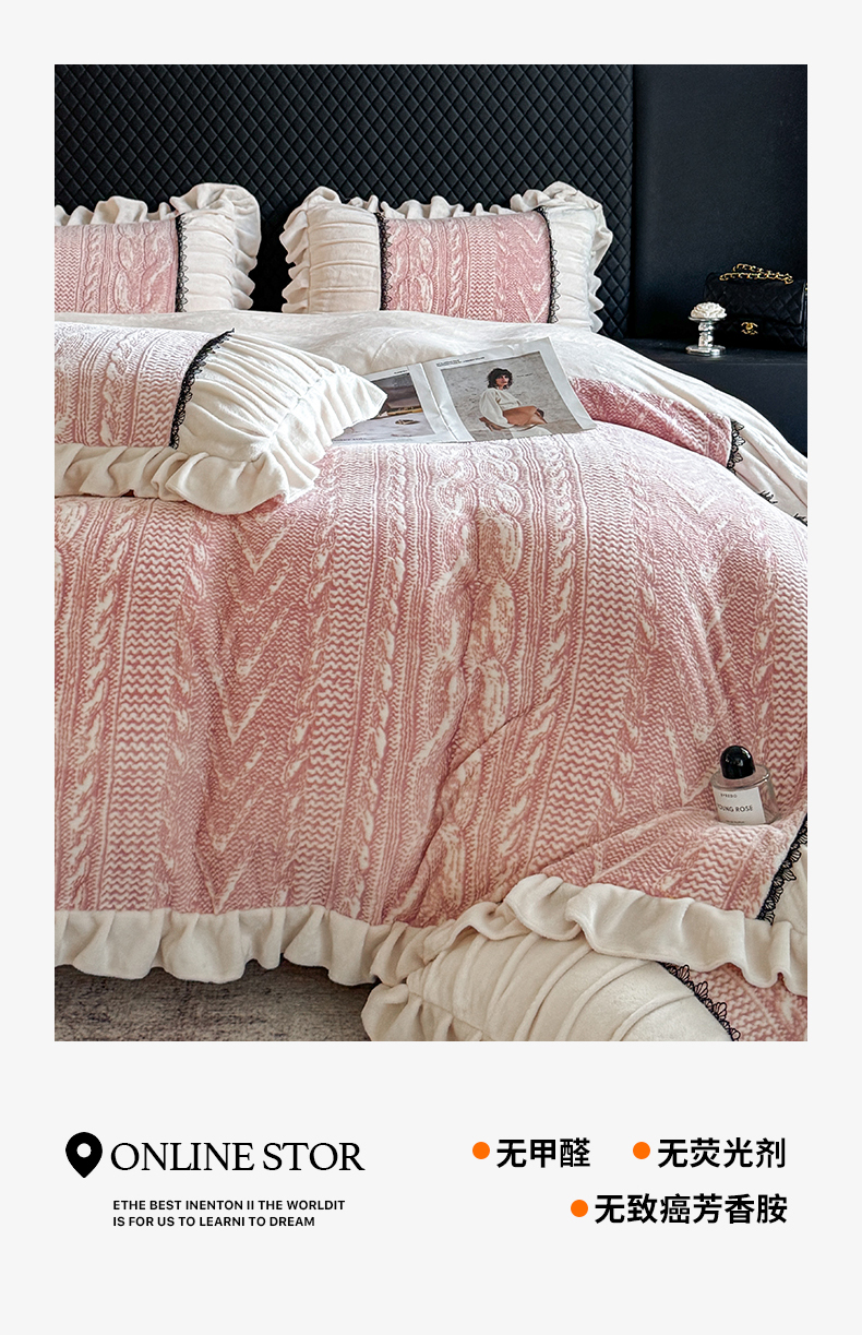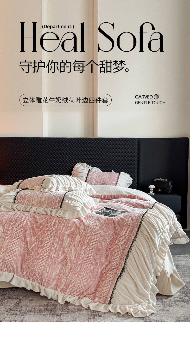 当前位置: 91家纺网 > 商品网购 > 床品套件 > 四件套 > 牛奶绒四件套 > 极简 2025新款立体雕花牛奶绒荷叶边四件套 巴黎-粉
