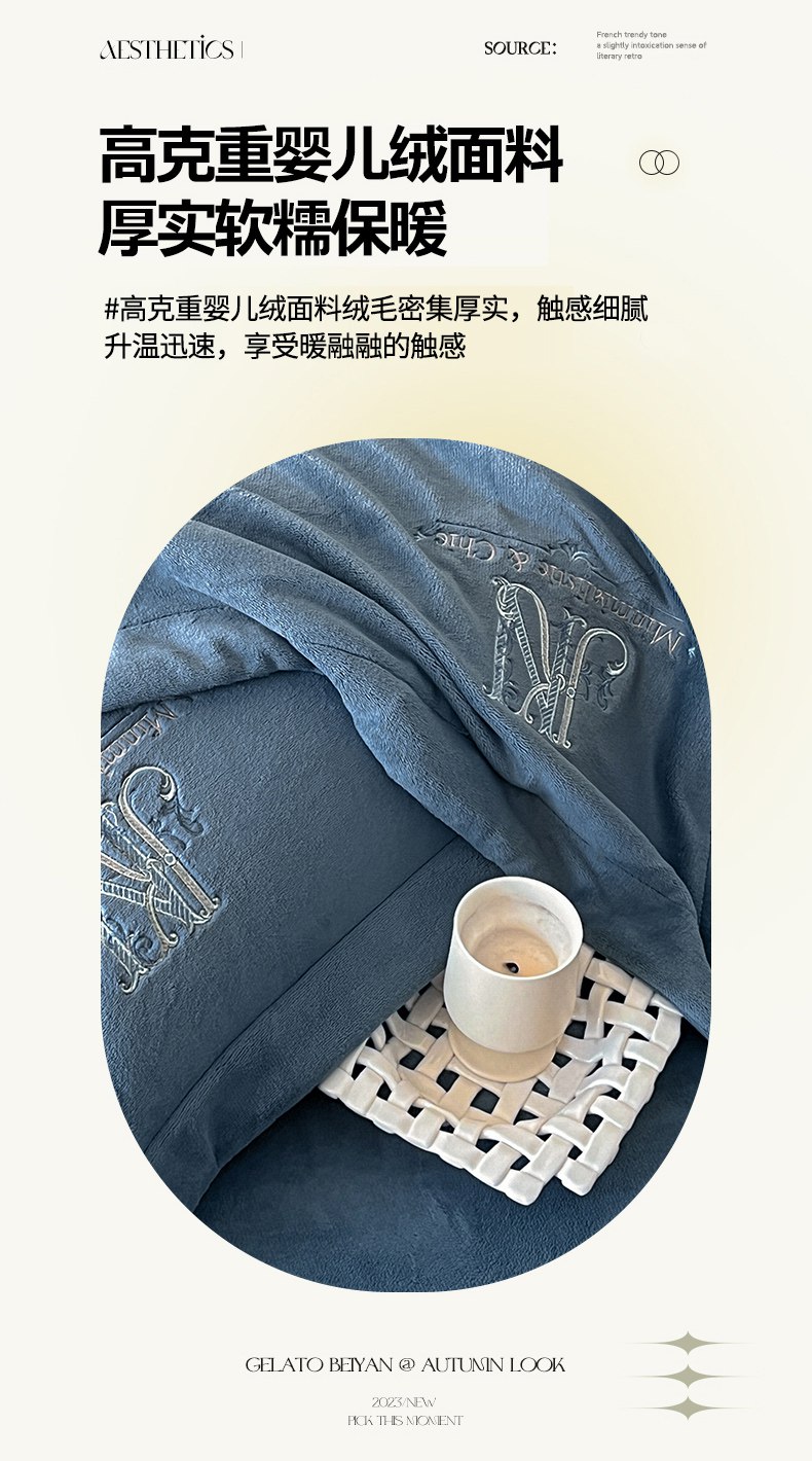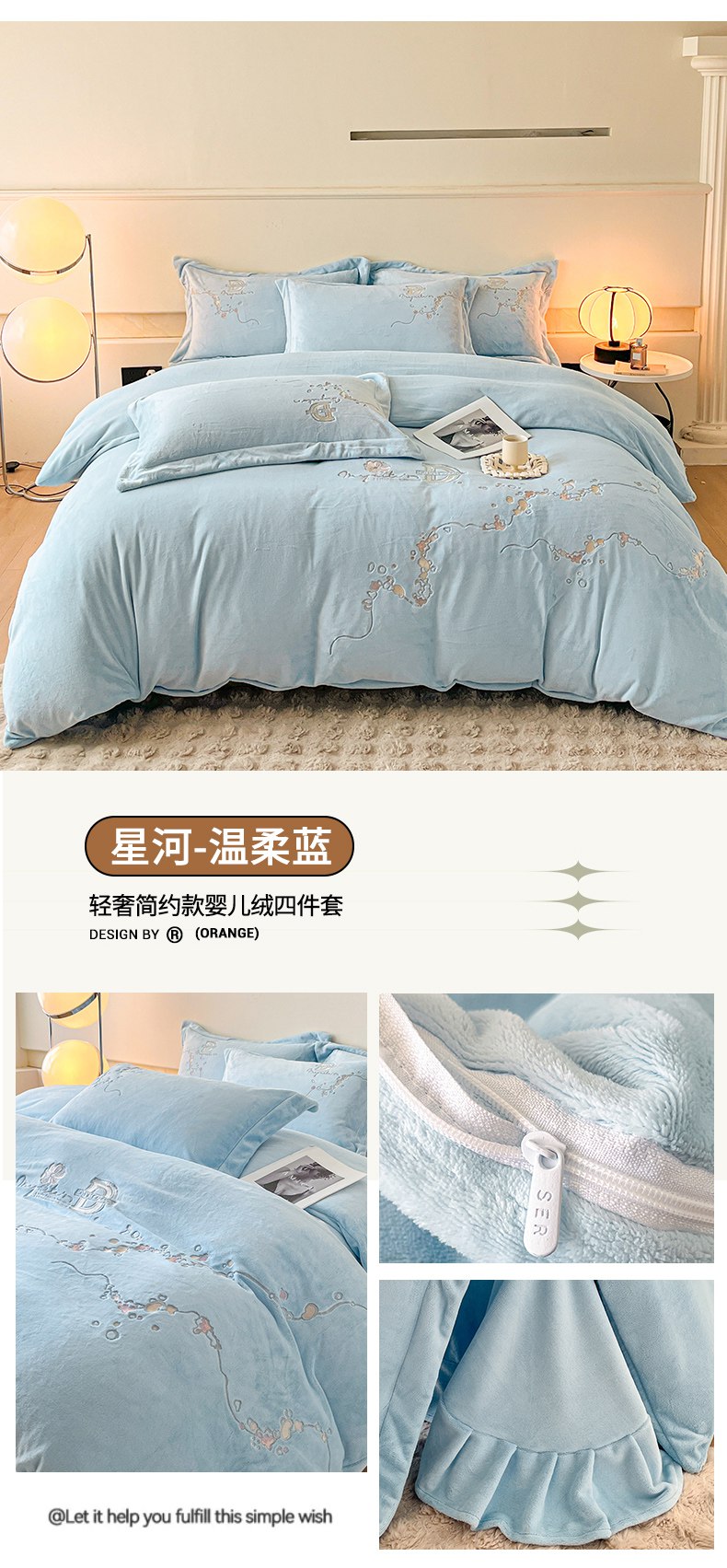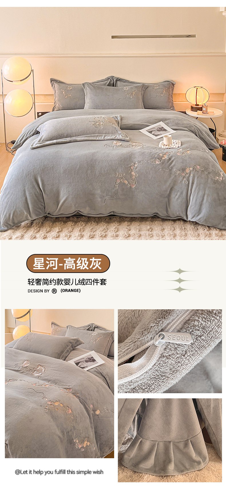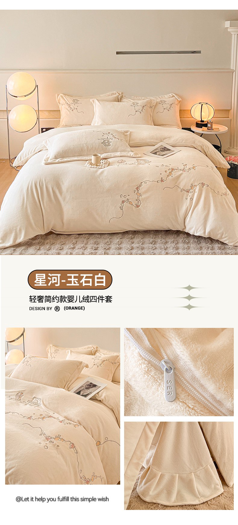 商品名称:(总)首尔家纺 2025新款婴儿绒牛奶绒刺绣款四件套-星河系列和贝琳达系列