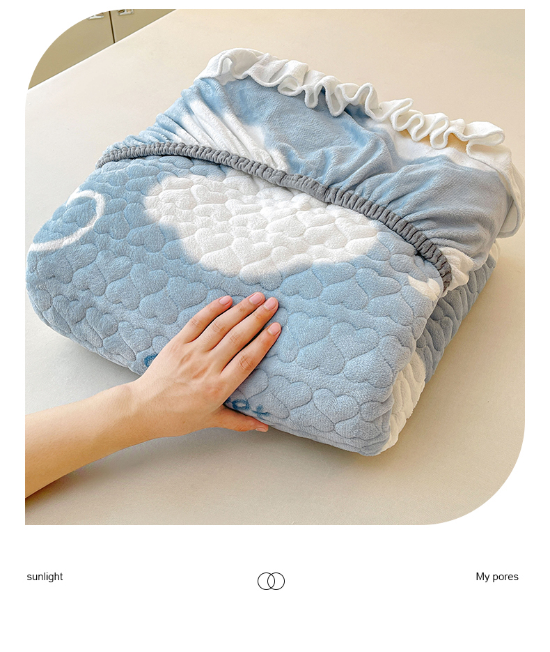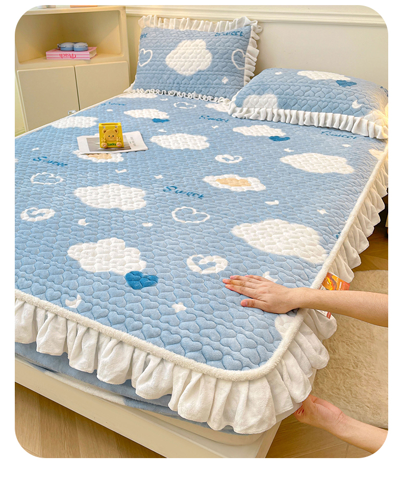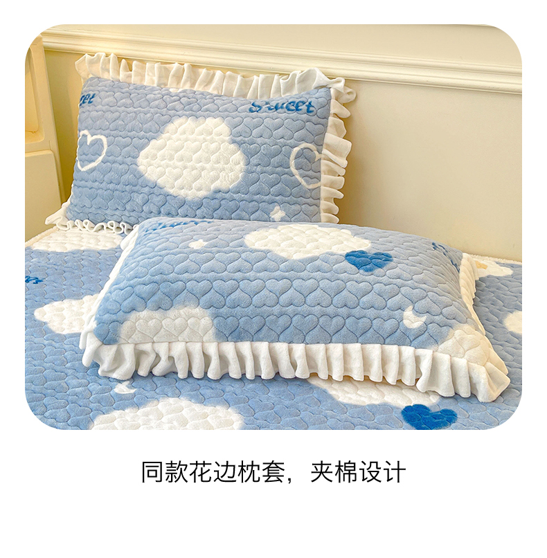 雯豆家纺 2025新款牛奶绒花边床笠单床笠单品床笠单件床笠 牛奶绒花边床笠-甜心布布