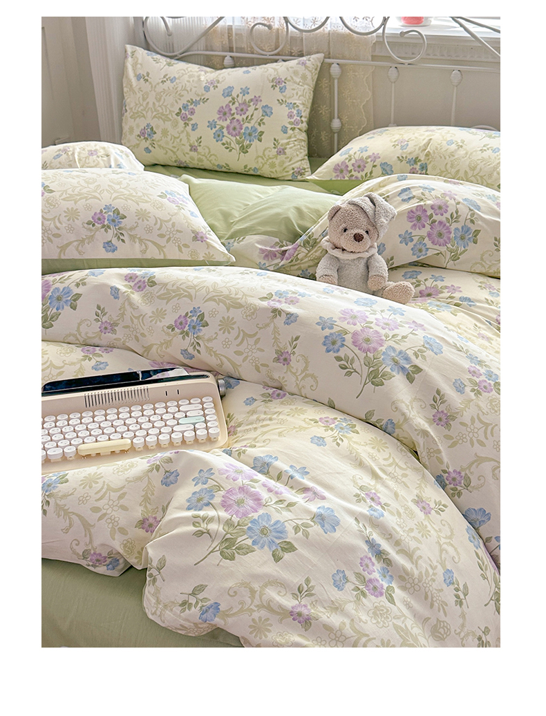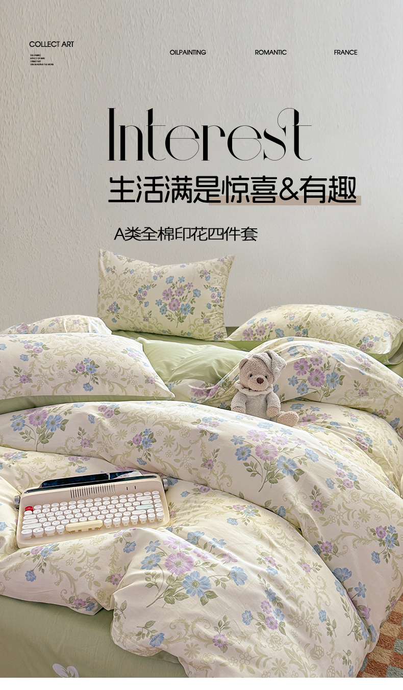 恒爱家纺 2025新款全棉花卉四件套 长春花