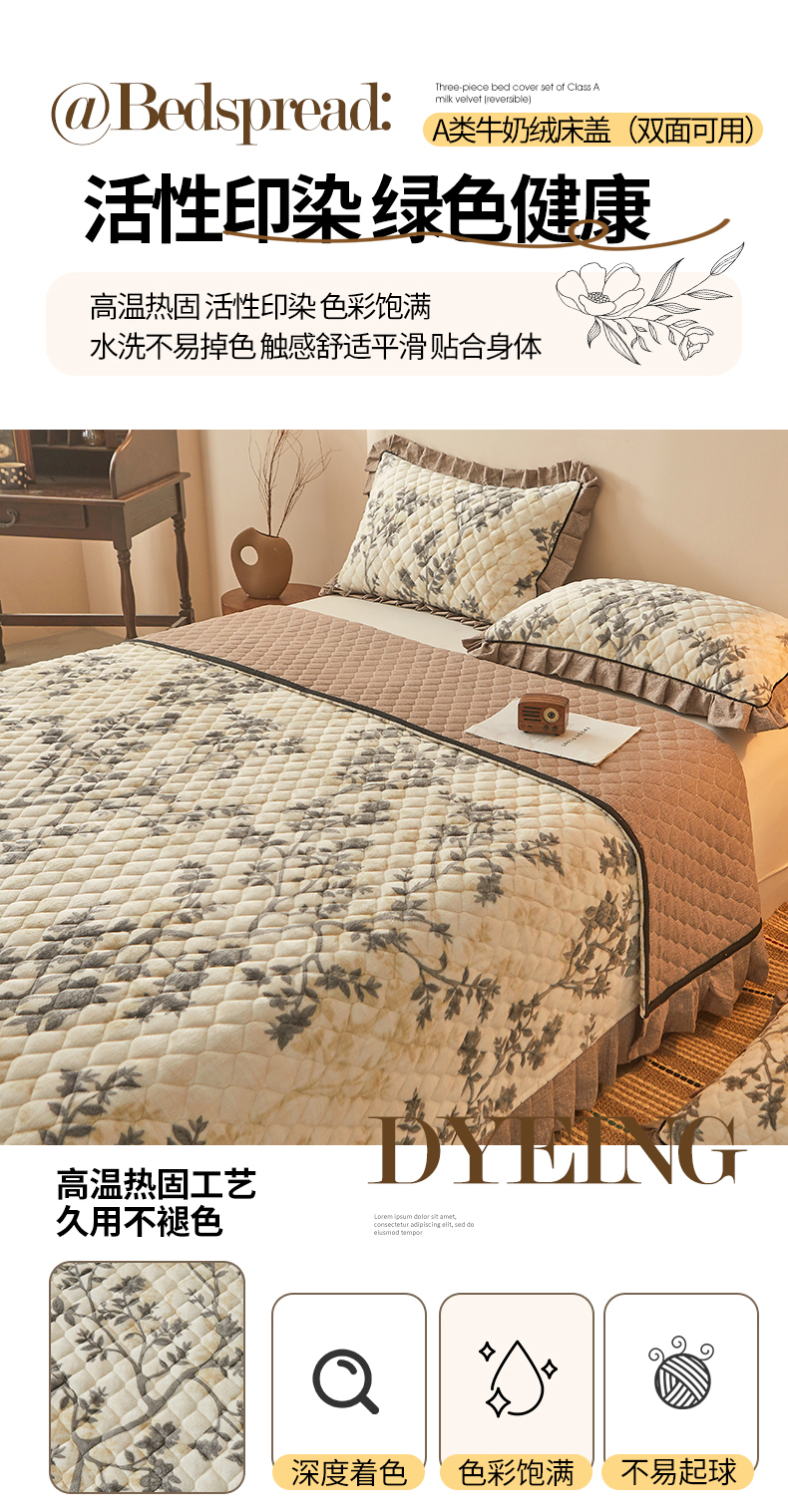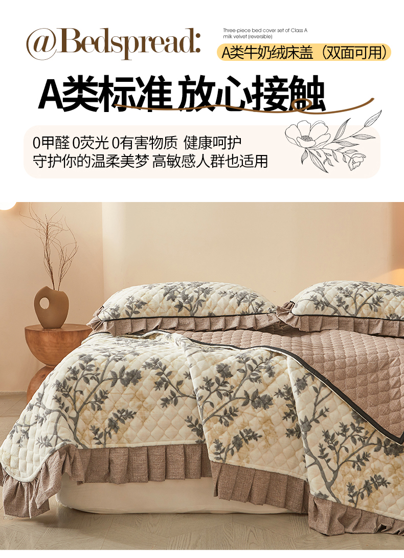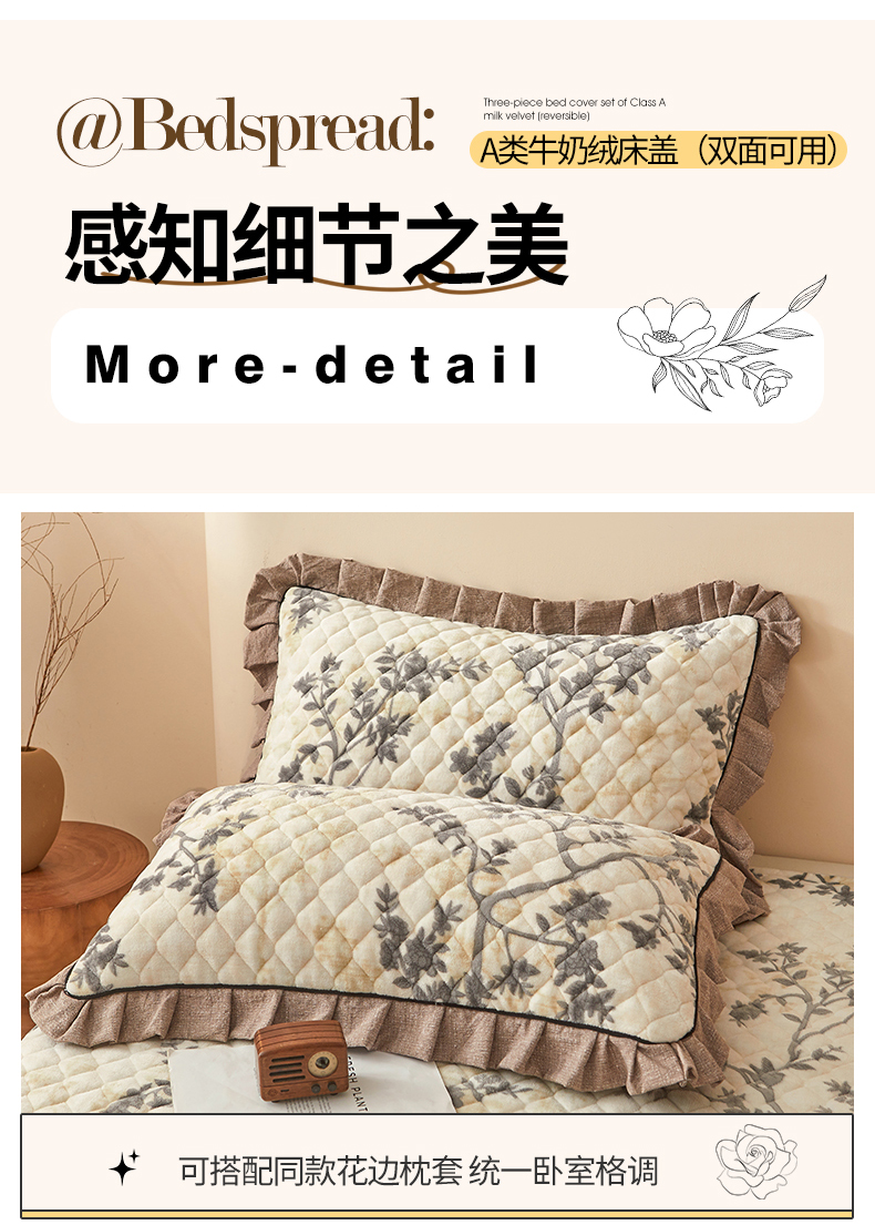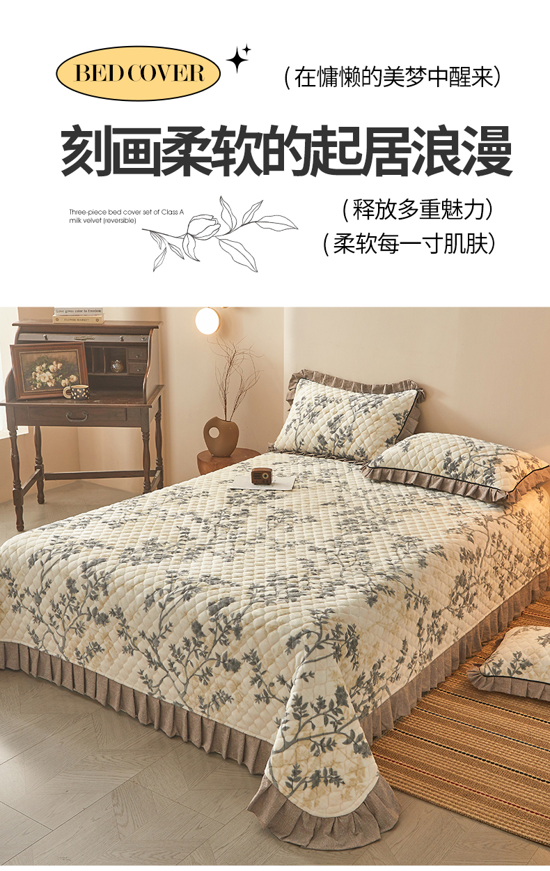 当前位置: 91家纺网 > 商品网购 > 床品套件 > 三件套 > 宜凡家纺 2025新款牛奶绒床盖三件套(双面可用) 曼妙花园