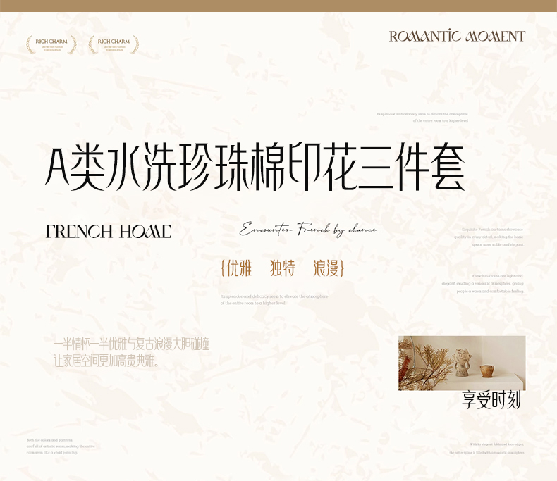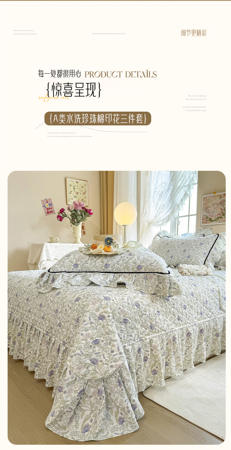 当前位置: 91家纺网 > 商品网购 > 床品套件 > 三件套 > 宜凡家纺 2025新款A类水洗珍珠棉床盖三件套 芙汐
