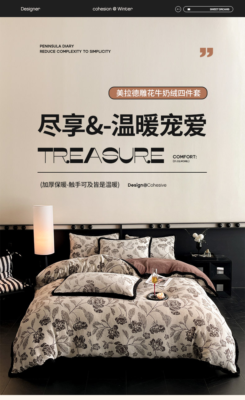 商品名称:(总)吾诺家居 2025新款美拉德雕花绒黑金系列四件套
