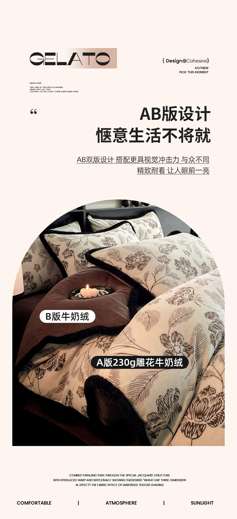 (总)吾诺 兔毛边230克雕花牛奶绒四件套 - 秋意系列,朝花,紫叶,花海,轻羽,飞花,秋意,冬梅,华美,春野