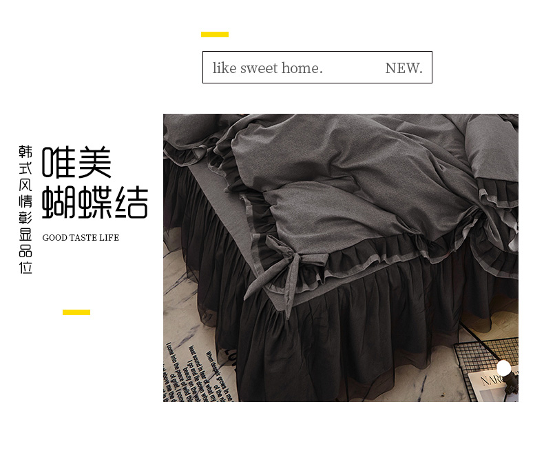 商品名称:后庭寝室 2025新款纯色磨毛黑蕾丝四件套-秘密花园 秘密花园-耀沙卡其