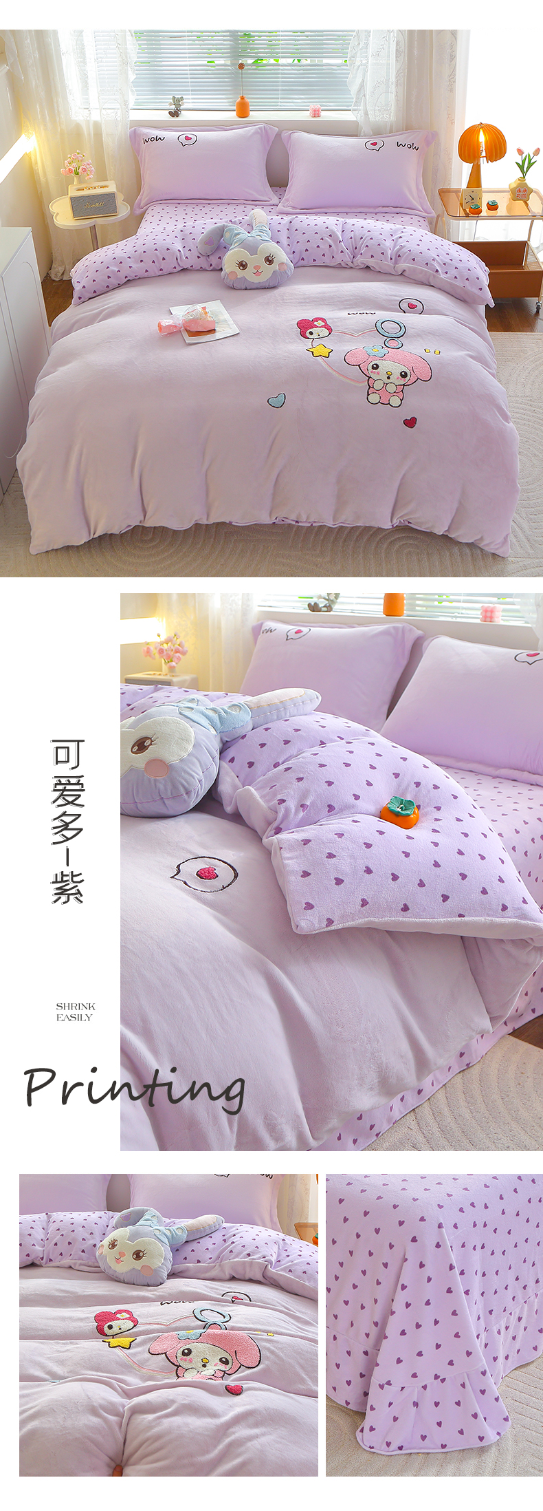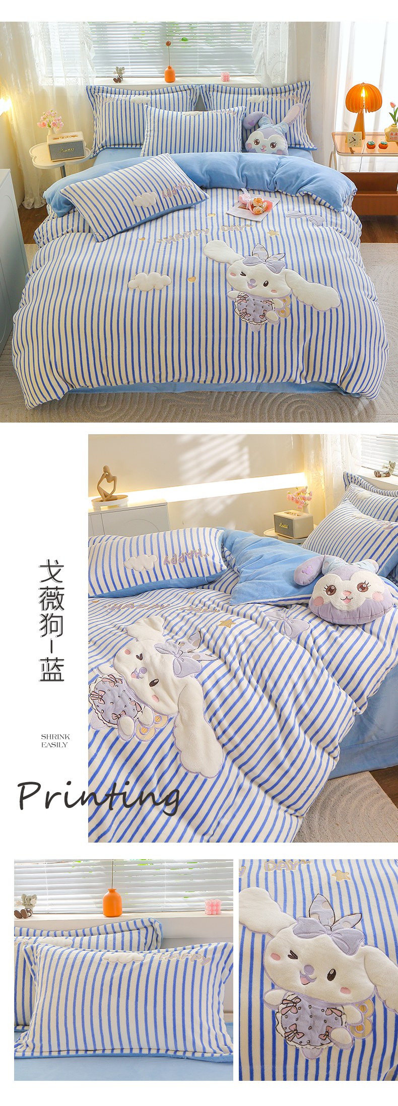 (总)美洲琳 2025新款卡通牛奶绒高克重四件套,戈薇狗-蓝,戈薇狗-浅紫,可爱多-粉,可爱多-紫,奶茶-湖兰,奶茶-水绿,奇奇的礼物-米杏,小困熊-粉,小困熊-驼,小小窝-豆沙,星月小兔-浅粉,熊暖暖-米黄,熊暖暖-浅灰
