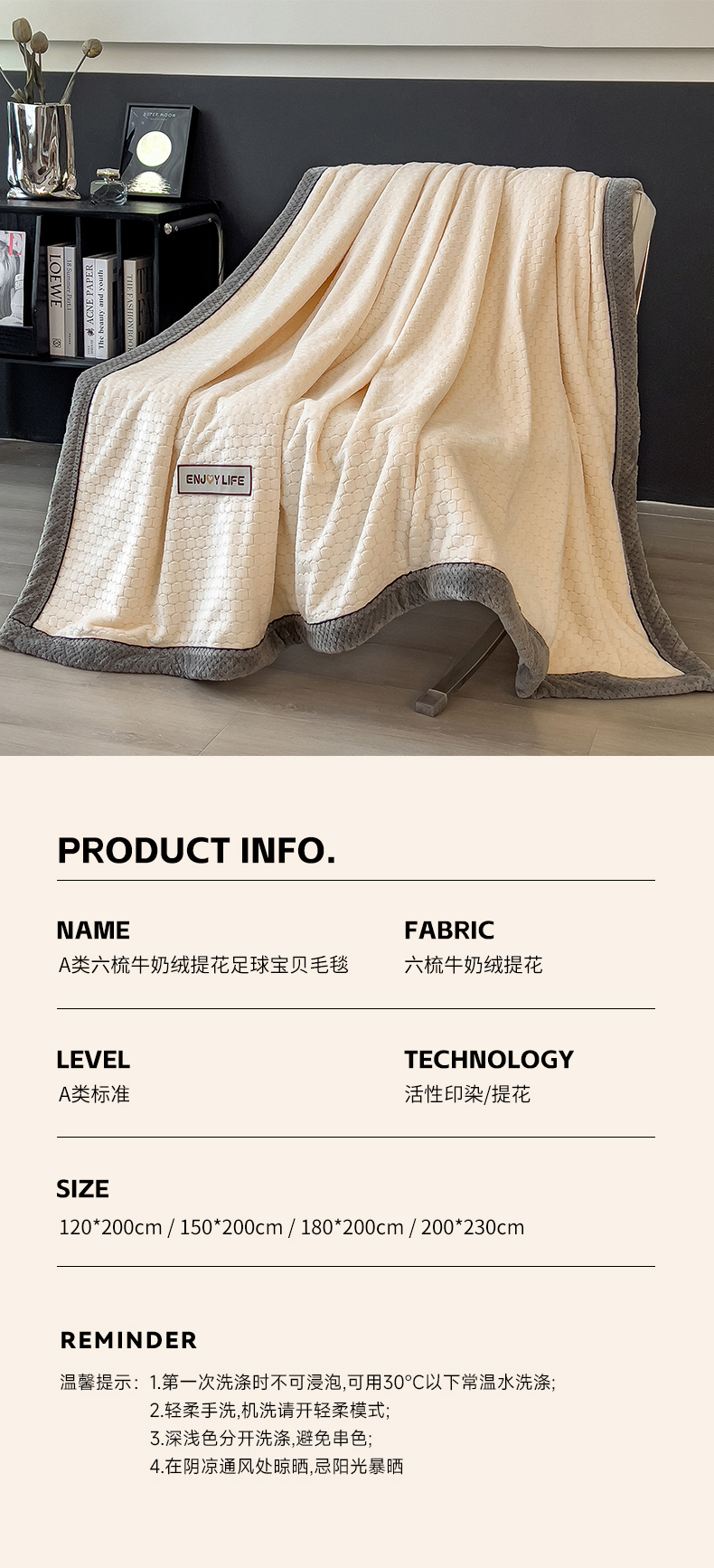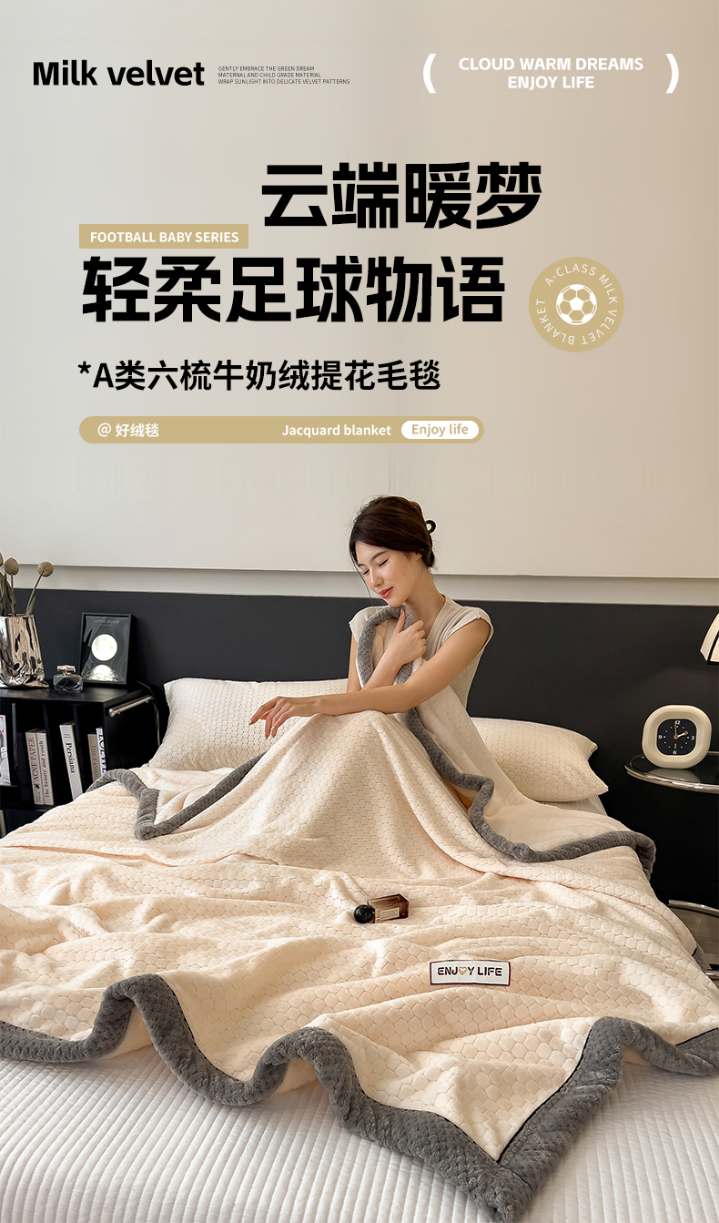 (总)世纪绒品 2025新款A类六梳牛奶绒提花足球宝贝毛毯,足球宝贝-气质灰,足球宝贝-蓝灰,足球宝贝-豆沙粉,足球宝贝-咖色,足球宝贝-米白,足球宝贝-云杉绿